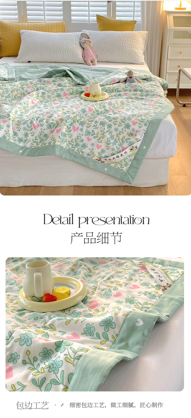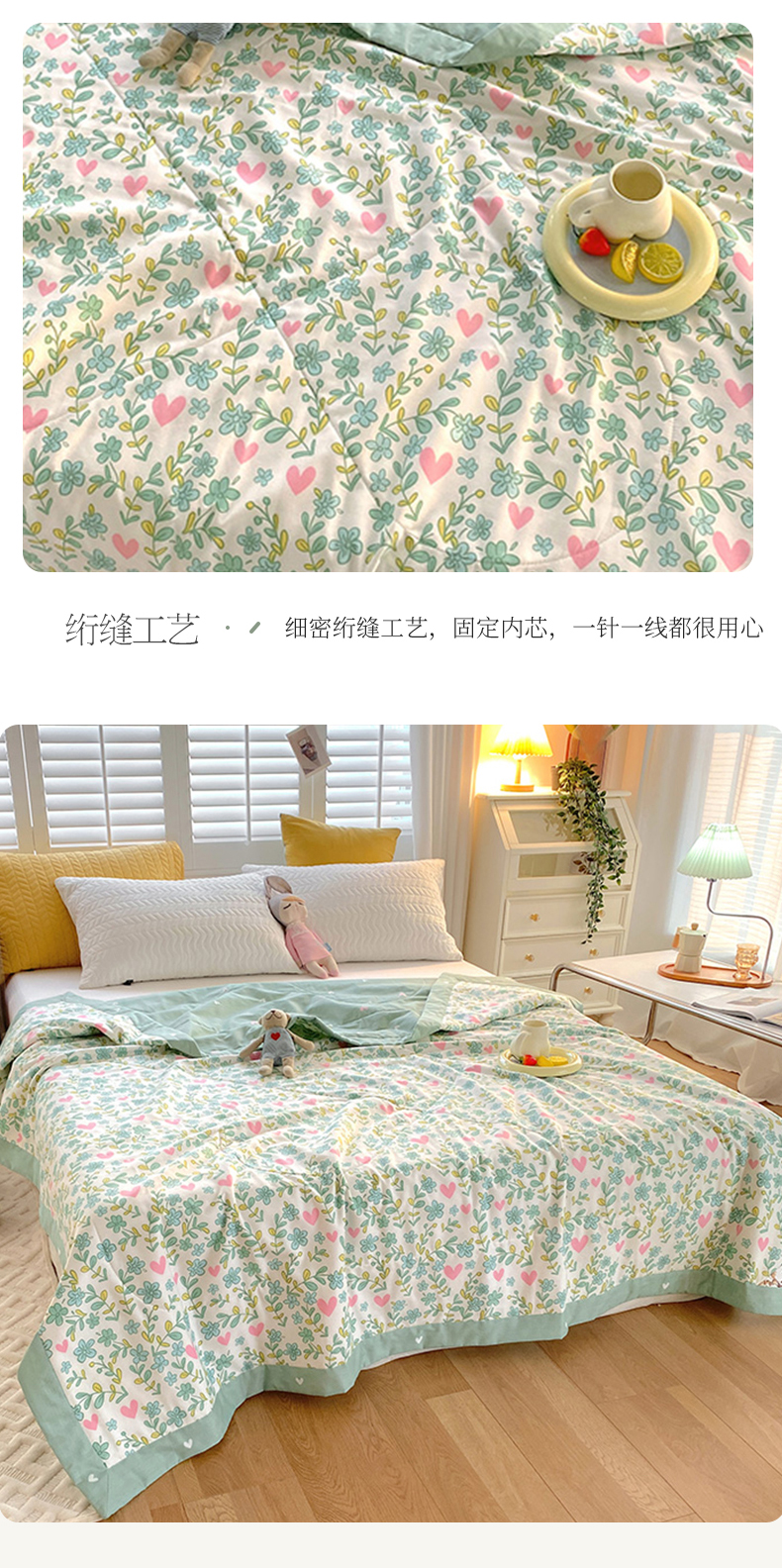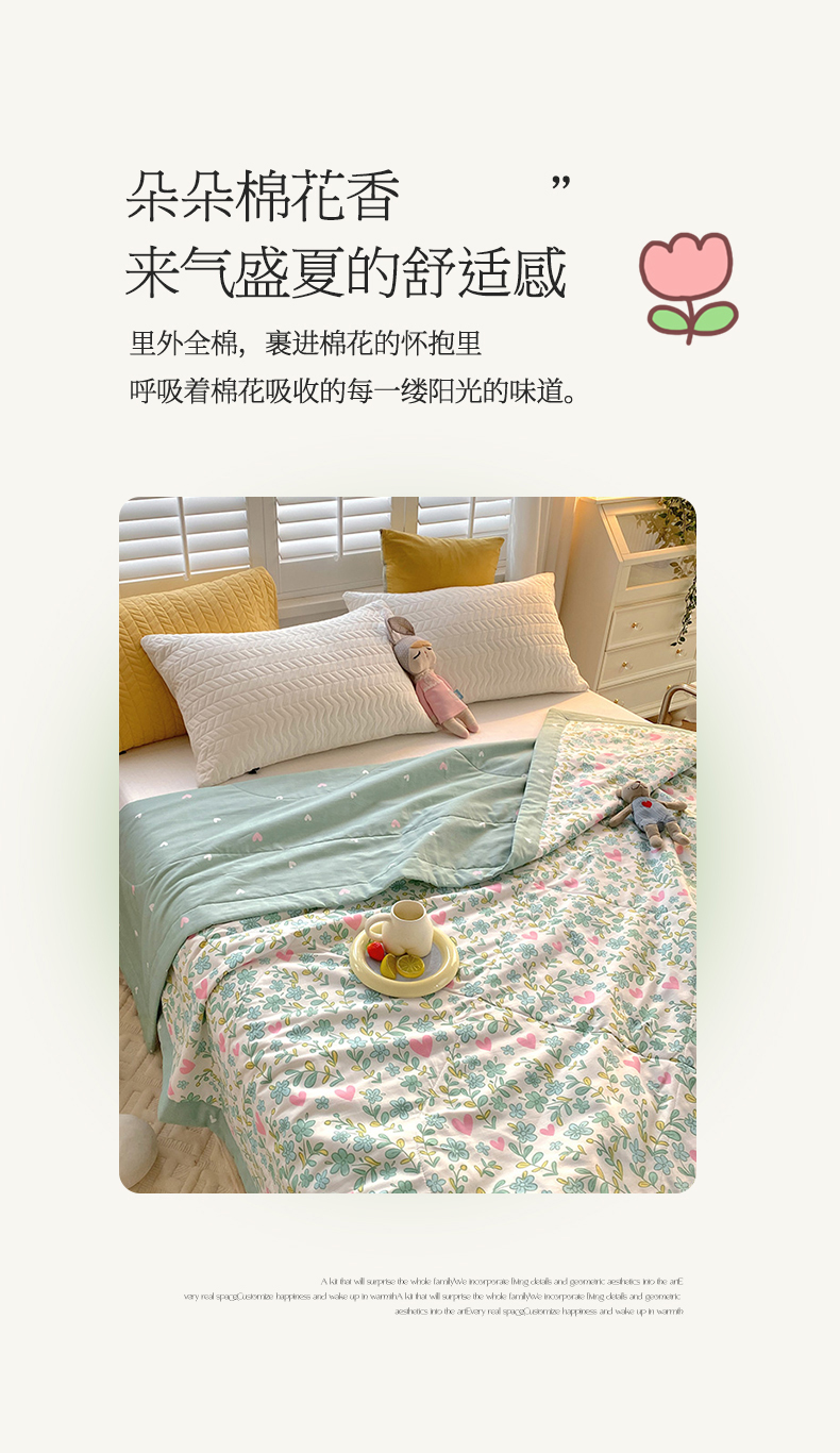 被子 > 夏被 > (自己工厂 有网销大热款 网销帮推可合作优惠)2025新款全棉夏被空调被夏凉被纯棉夏季儿童棉花薄被子 心动甜心-绿