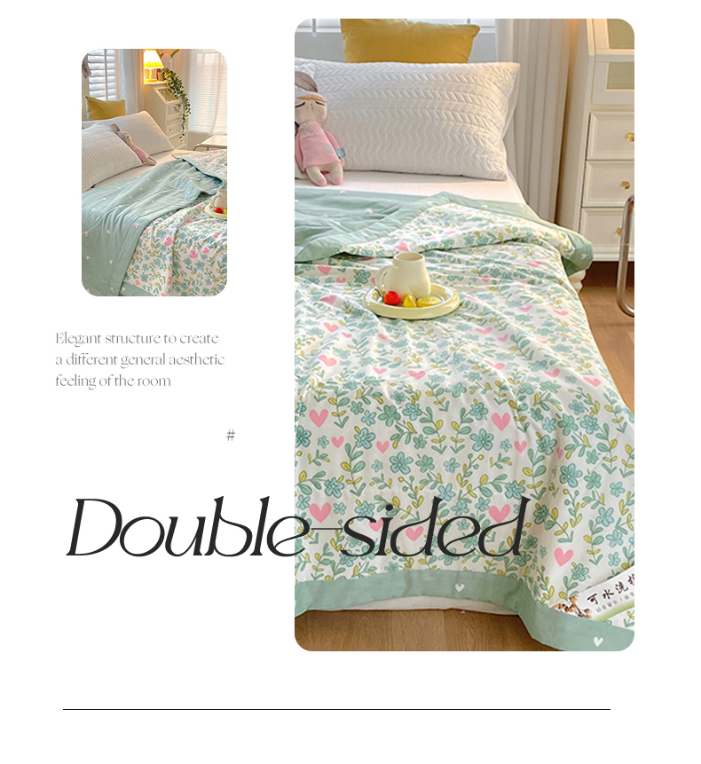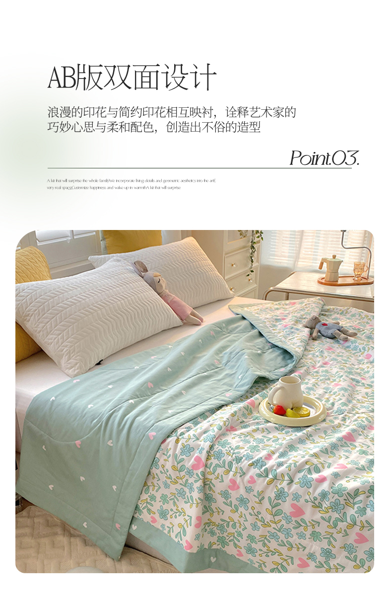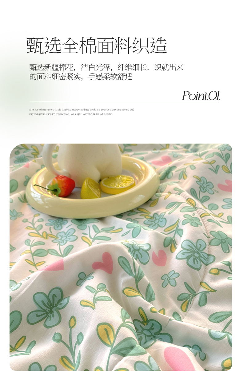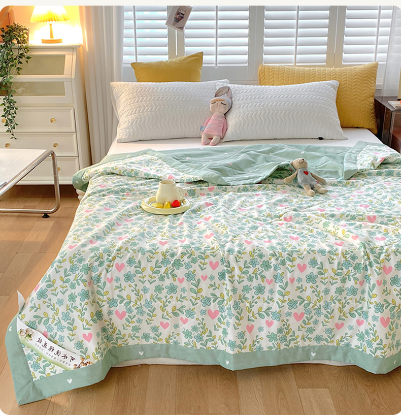 被子 > 夏被 > (自己工厂 有网销大热款 网销帮推可合作优惠)2025新款全棉夏被空调被夏凉被纯棉夏季儿童棉花薄被子 心动甜心-绿