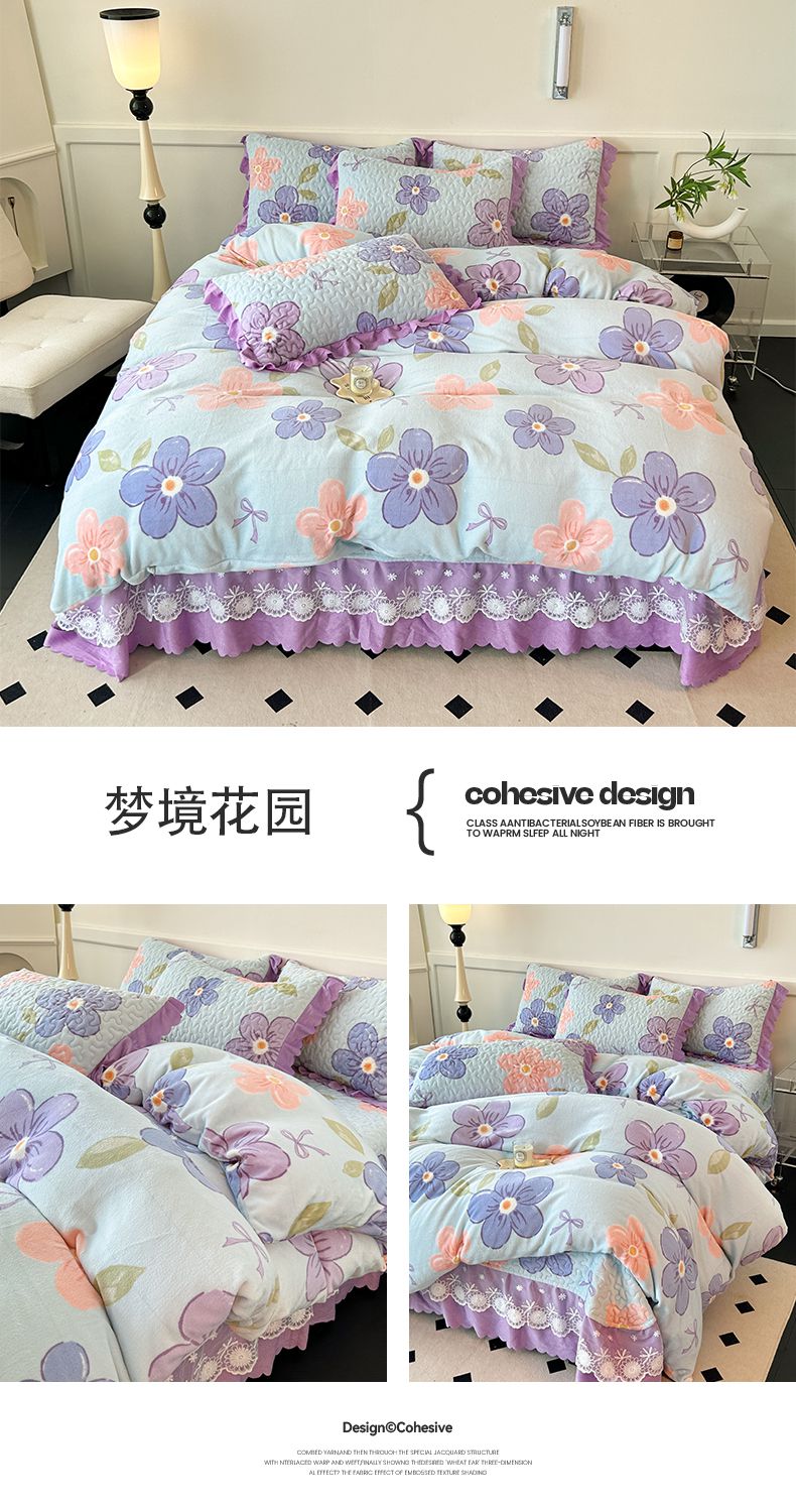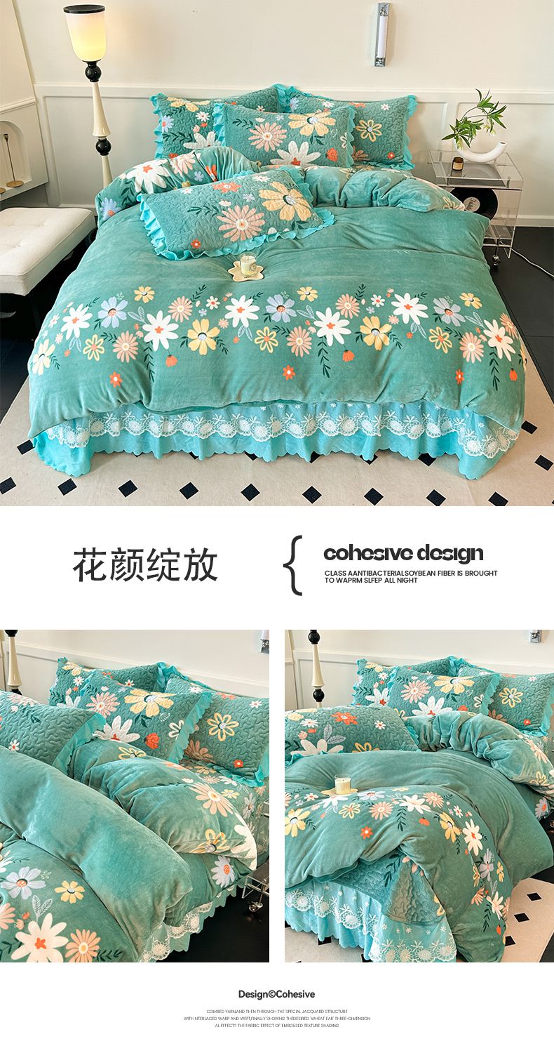 当前位置: 91家纺网 > 商品网购 > 床品套件 > 四件套 > 牛奶绒四件套 > 珍爱家纺 2025新款冬季加厚夹棉保暖牛奶绒蕾丝花边床盖床裙单件三件套双人四件套 太阳花