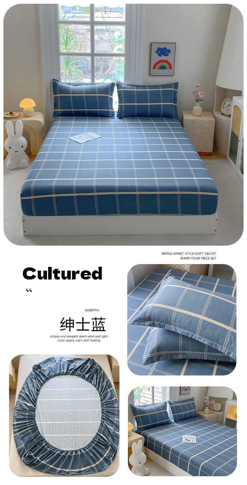 • 91家纺网 家纺一手货源 找家纺 凌云2025新款13372A类全棉床笠    绅士蓝