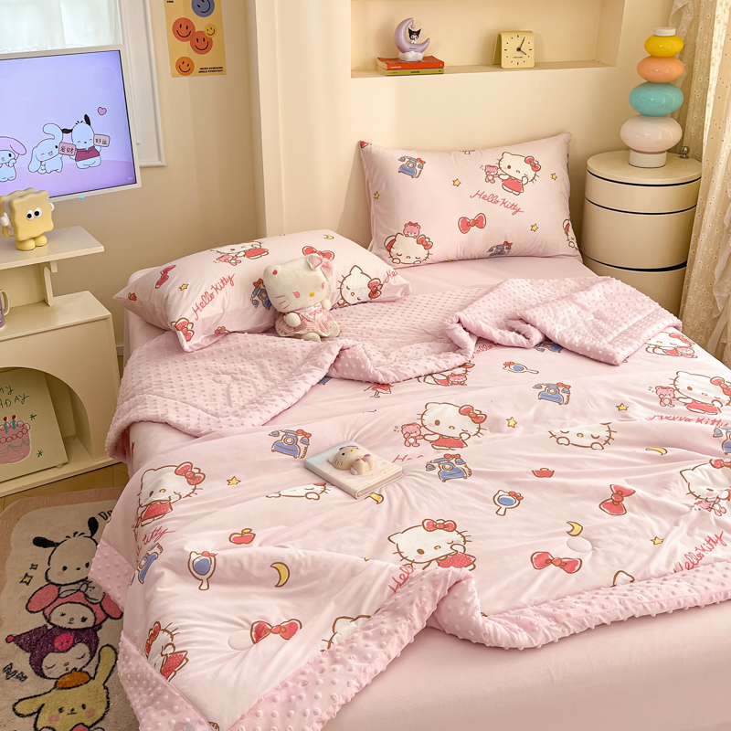 (总)花满路 2024新款有氨凉感丝卡通印花豆豆被儿童被夏被被子,玉桂狗,库洛米,KT猫,卡帕狗,米乐蒂