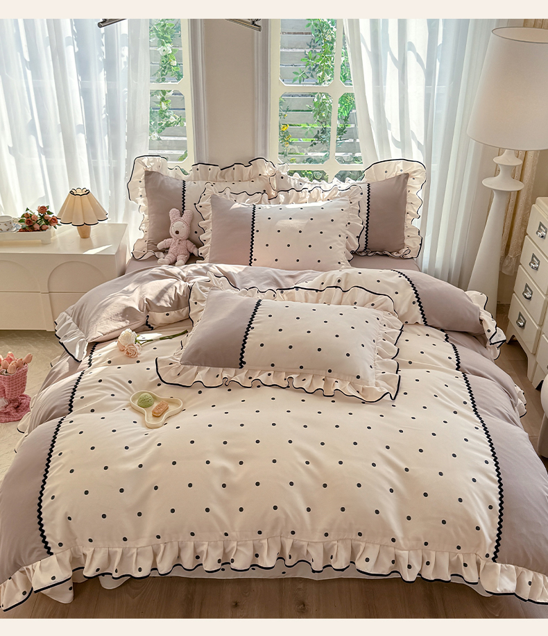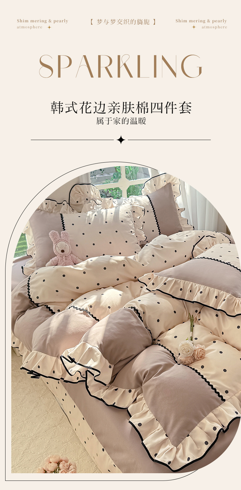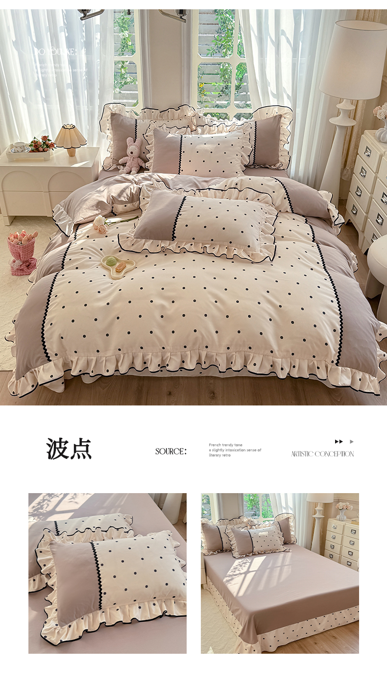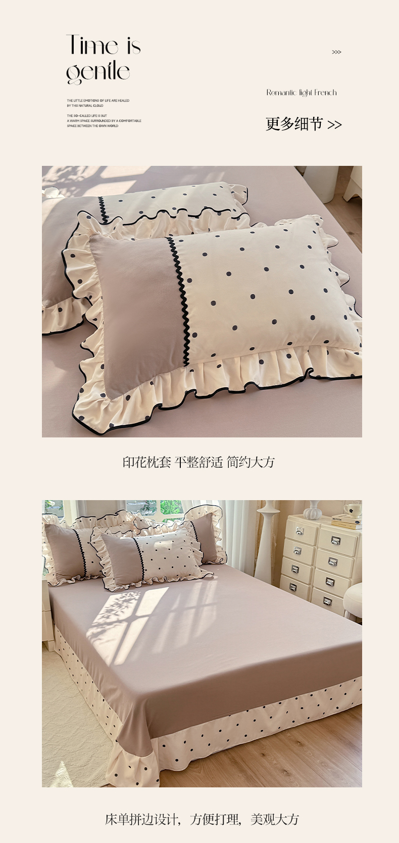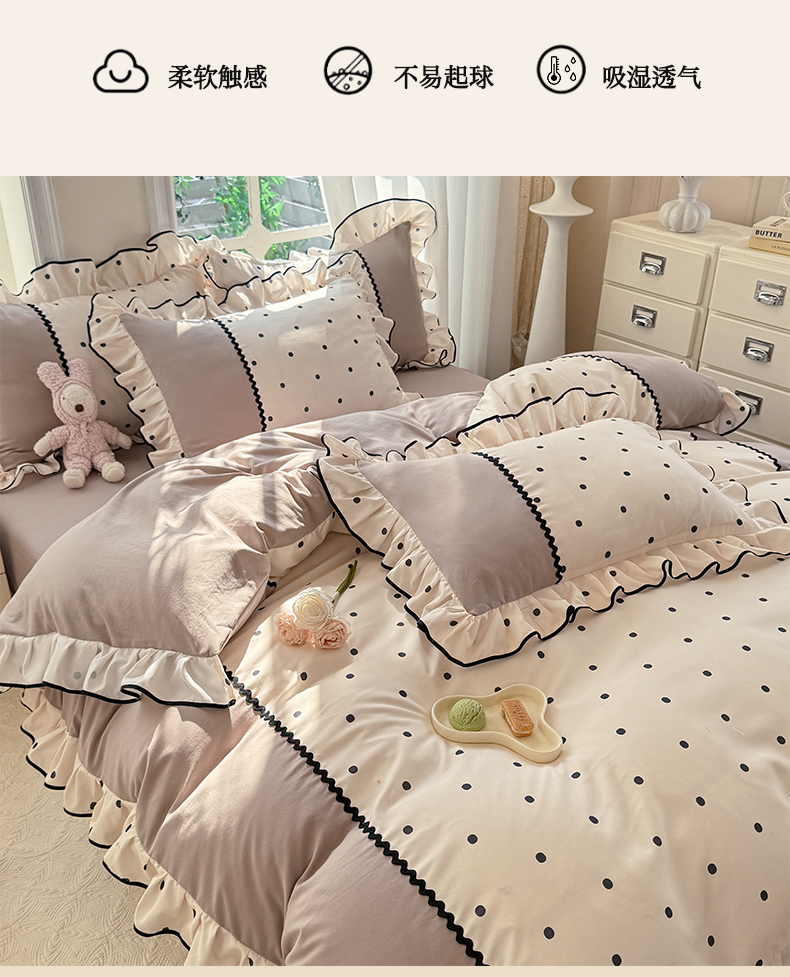 大麦家纺 2025新款韩式花边亲肤棉四件套 波点