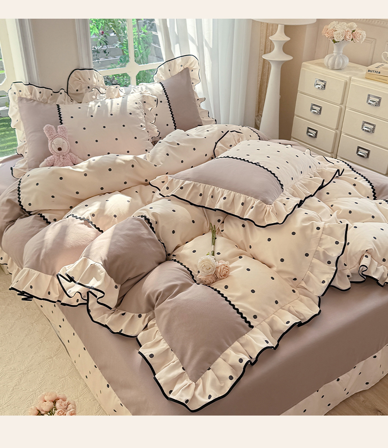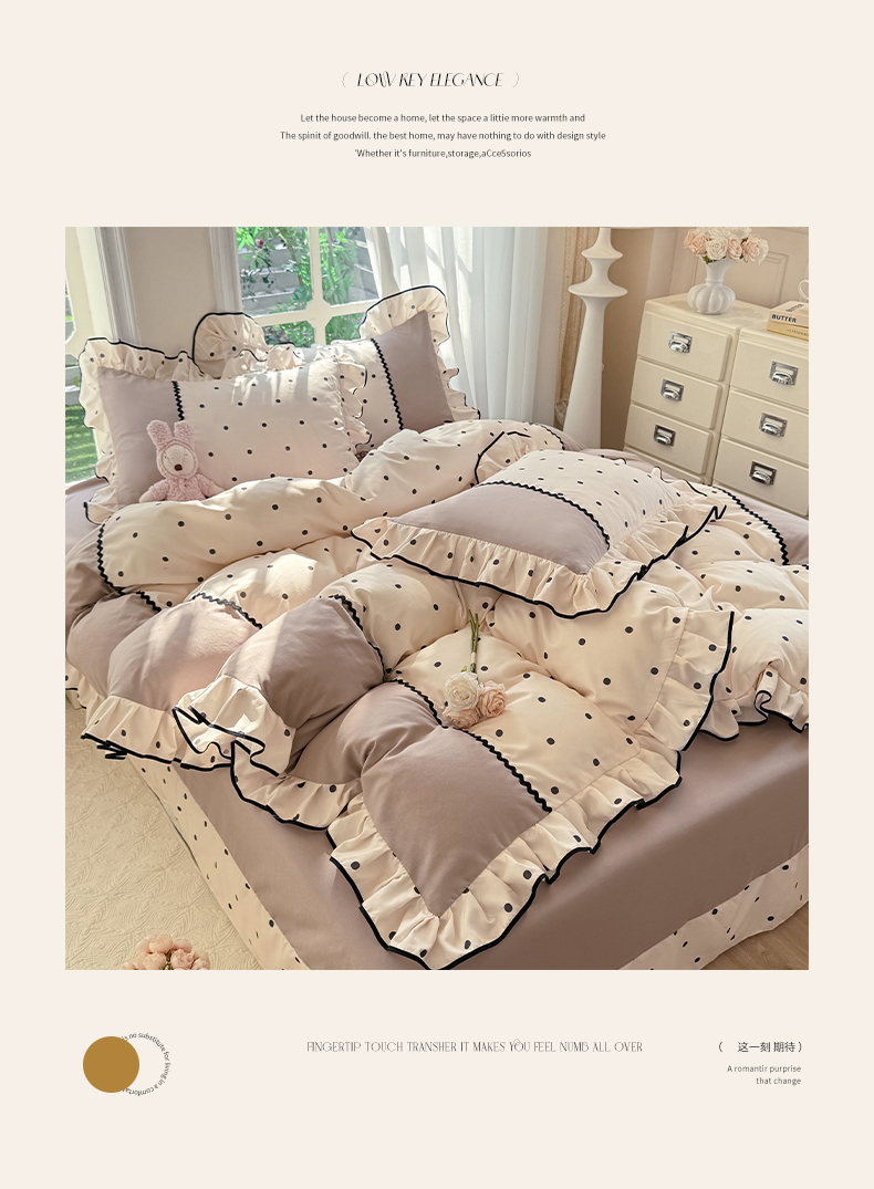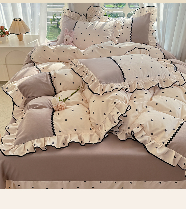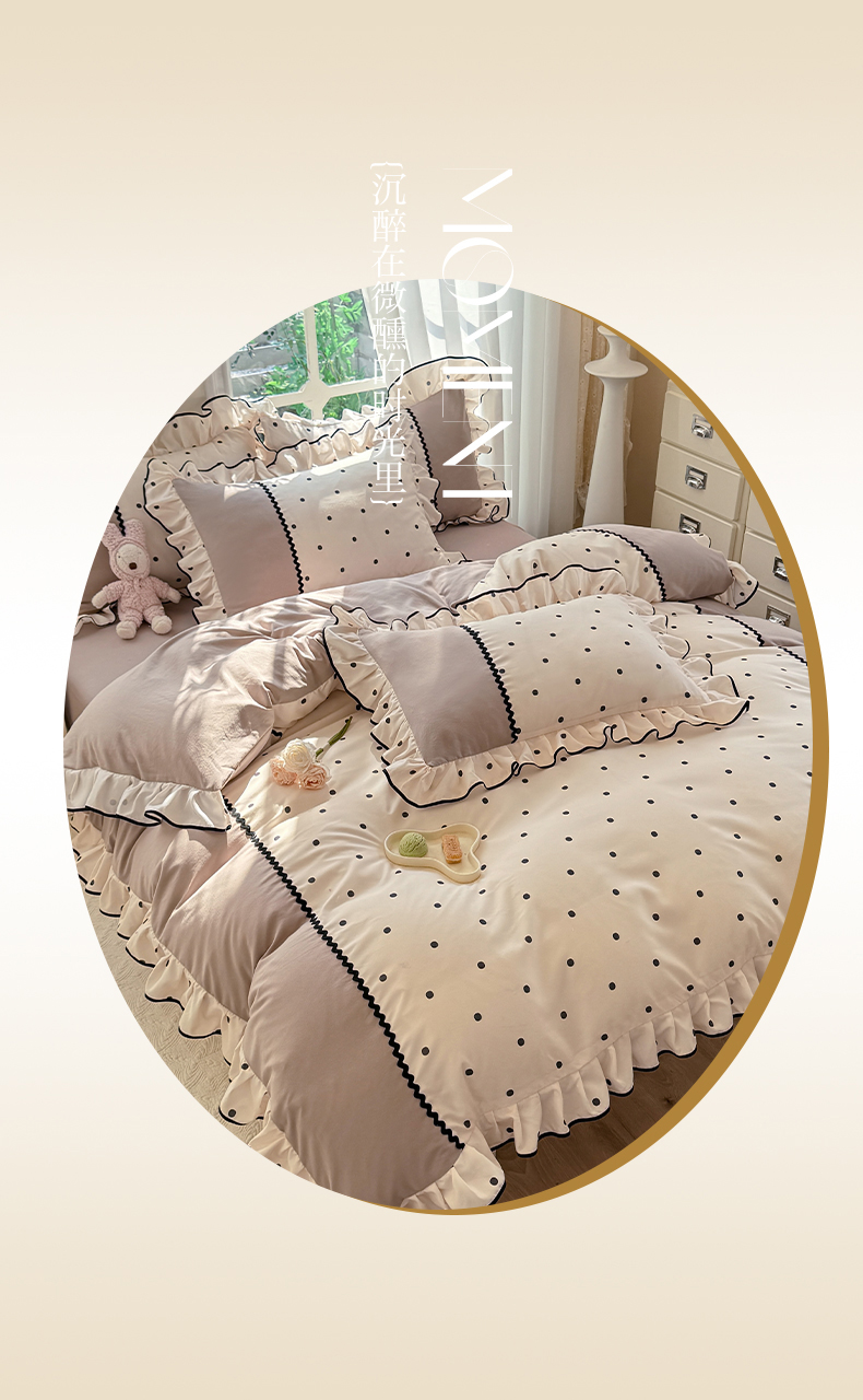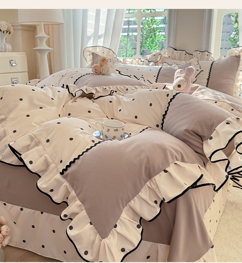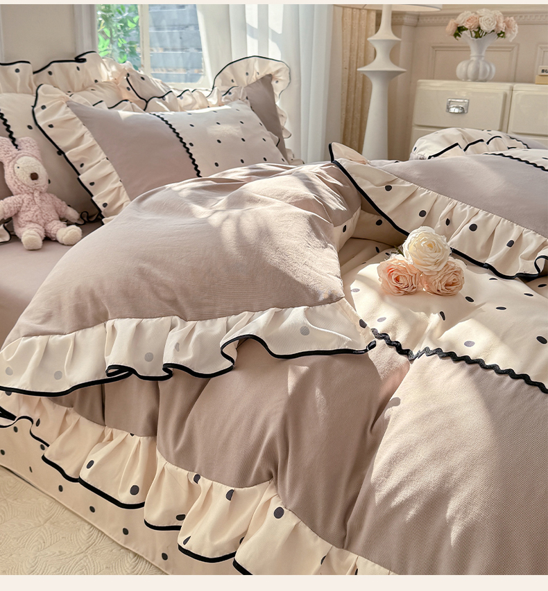 大麦家纺 2025新款韩式花边亲肤棉四件套 波点
