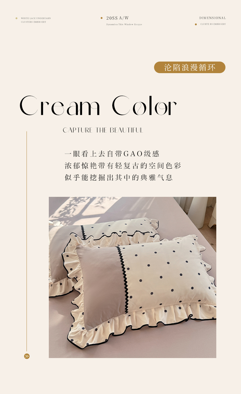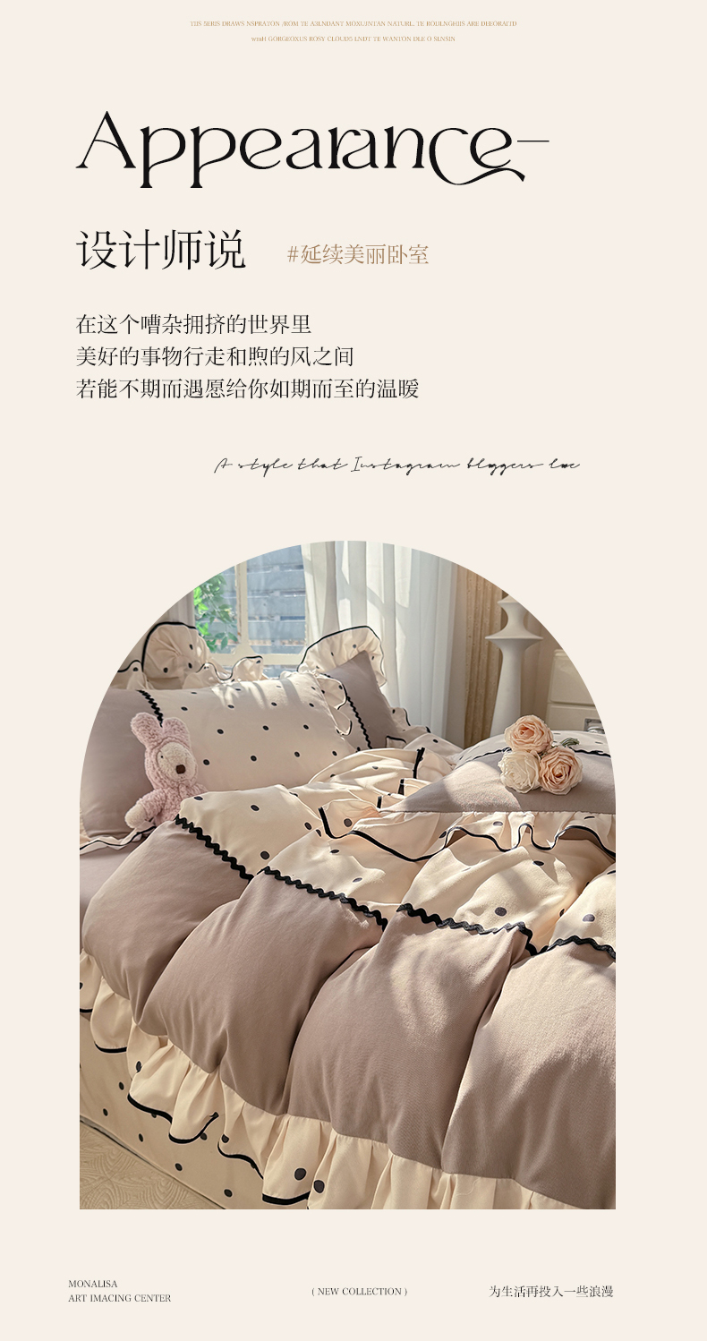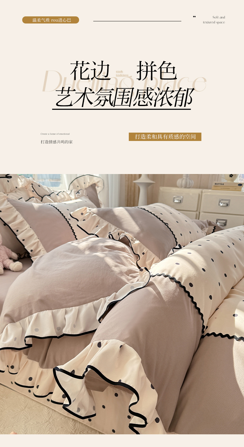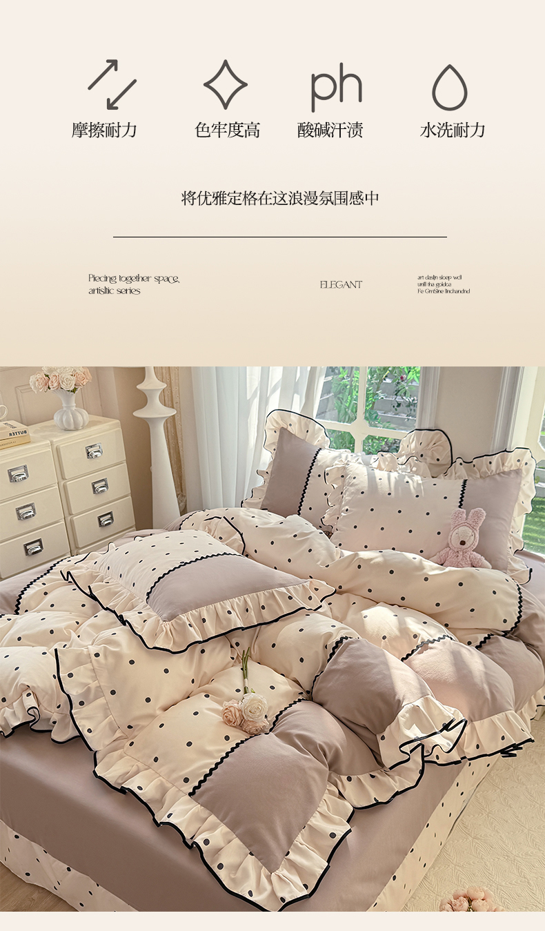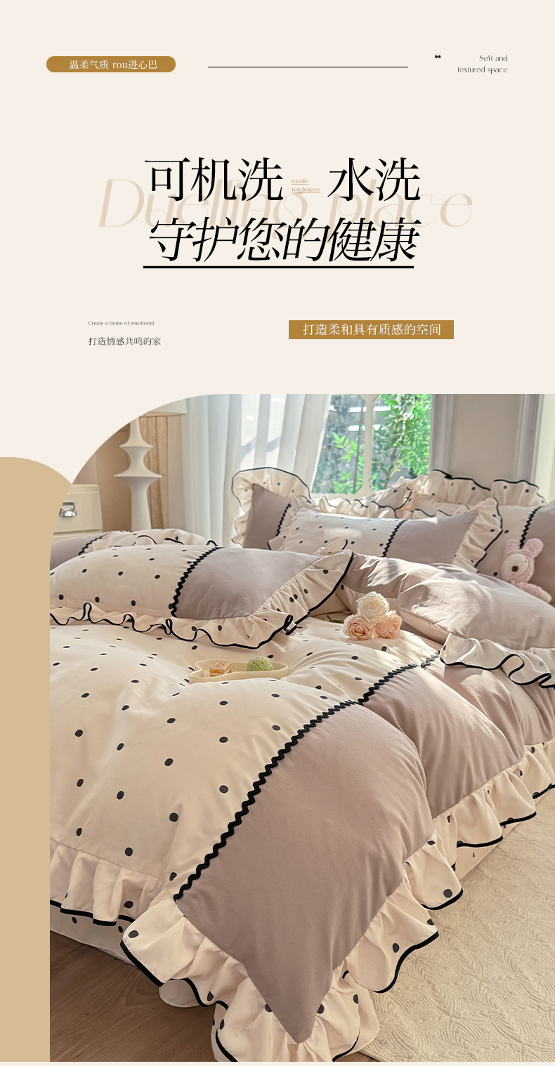 大麦家纺 2025新款韩式花边亲肤棉四件套 波点
