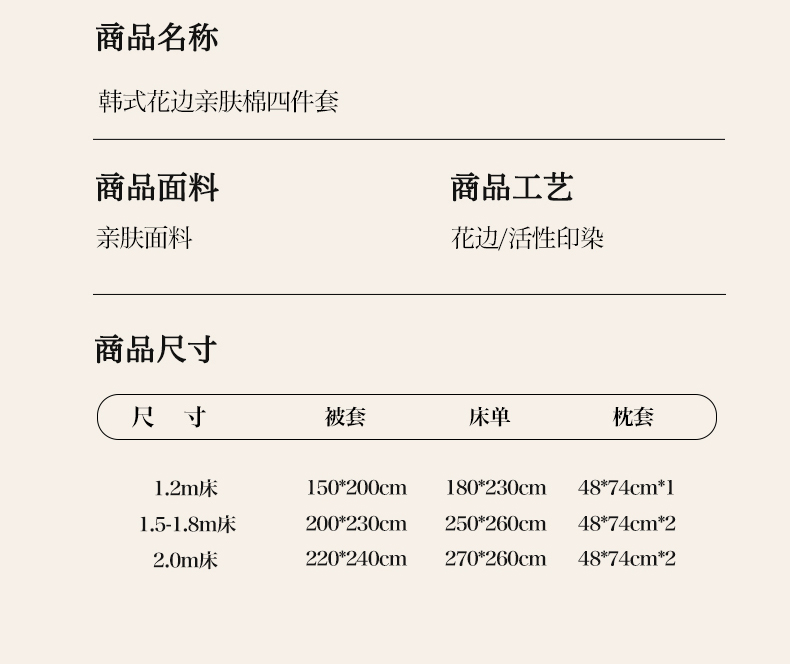 商品名称:大麦家纺 2025新款韩式花边亲肤棉四件套 波点