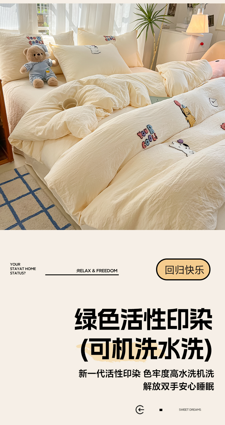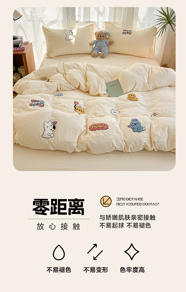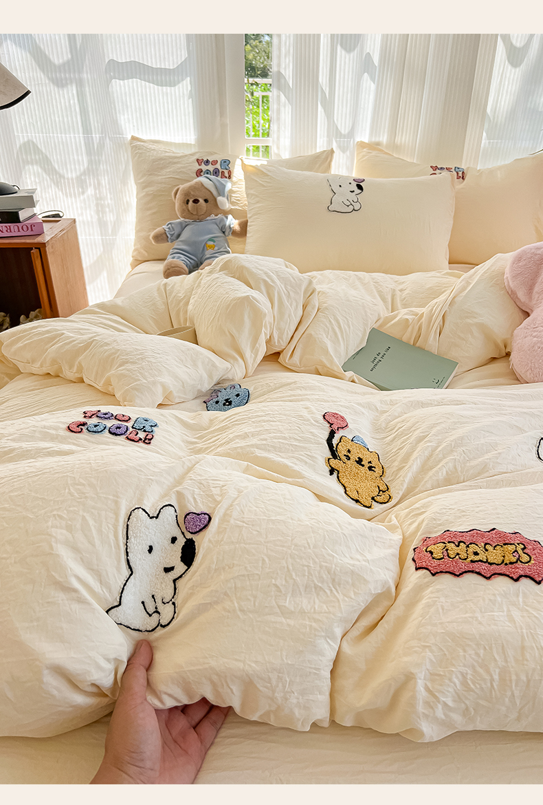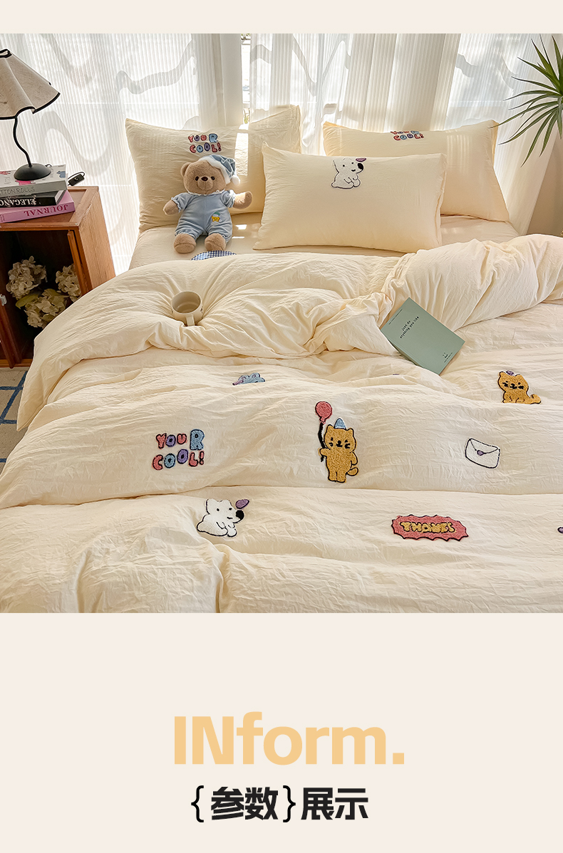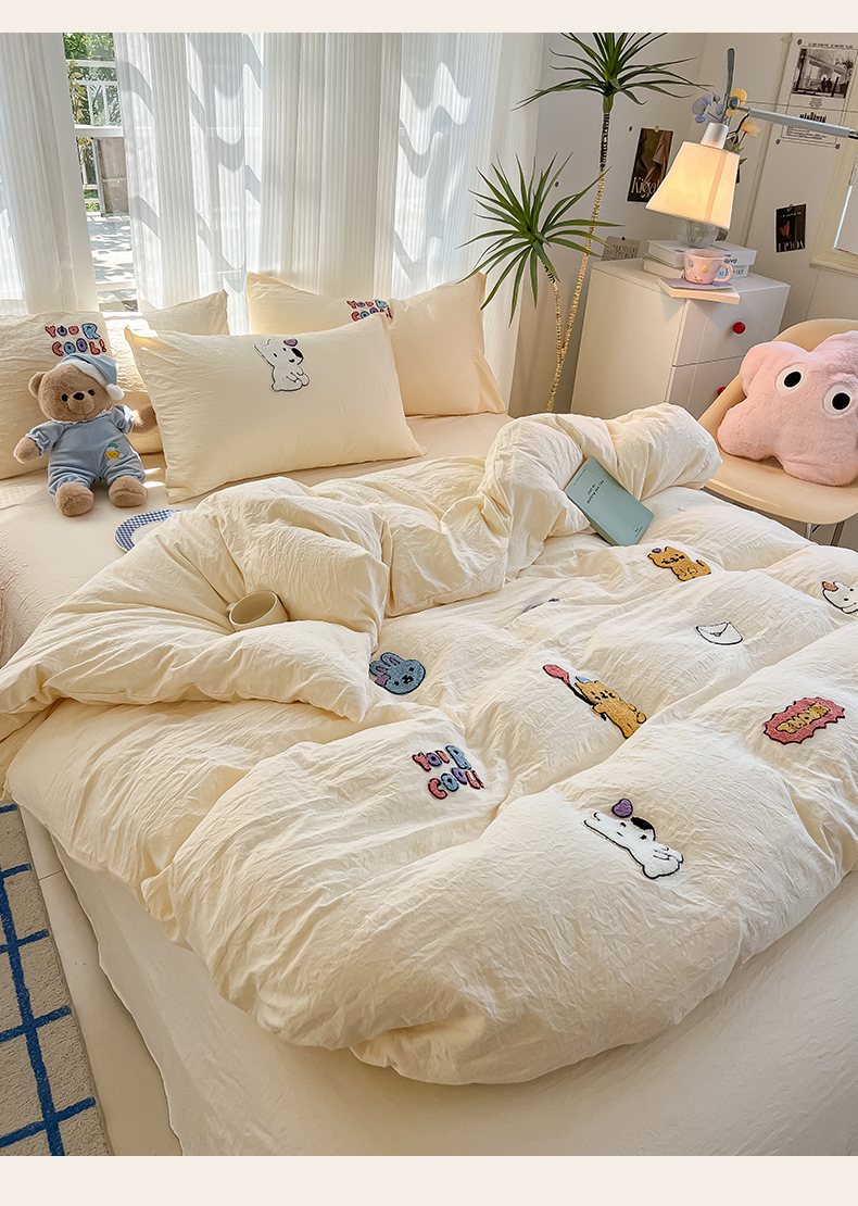 当前位置: 91家纺网 > 商品网购 > 床品套件 > 四件套 > 水洗棉四件套 > 韩巢家纺 2025新款超柔水洗棉毛巾绣四件套 动物乐园-奶黄