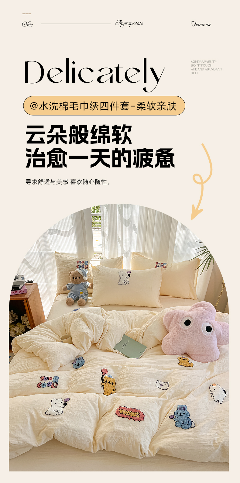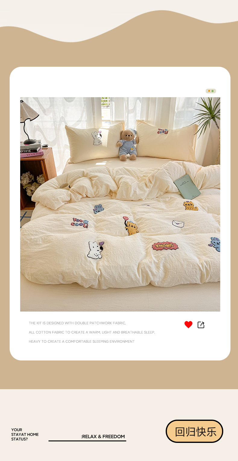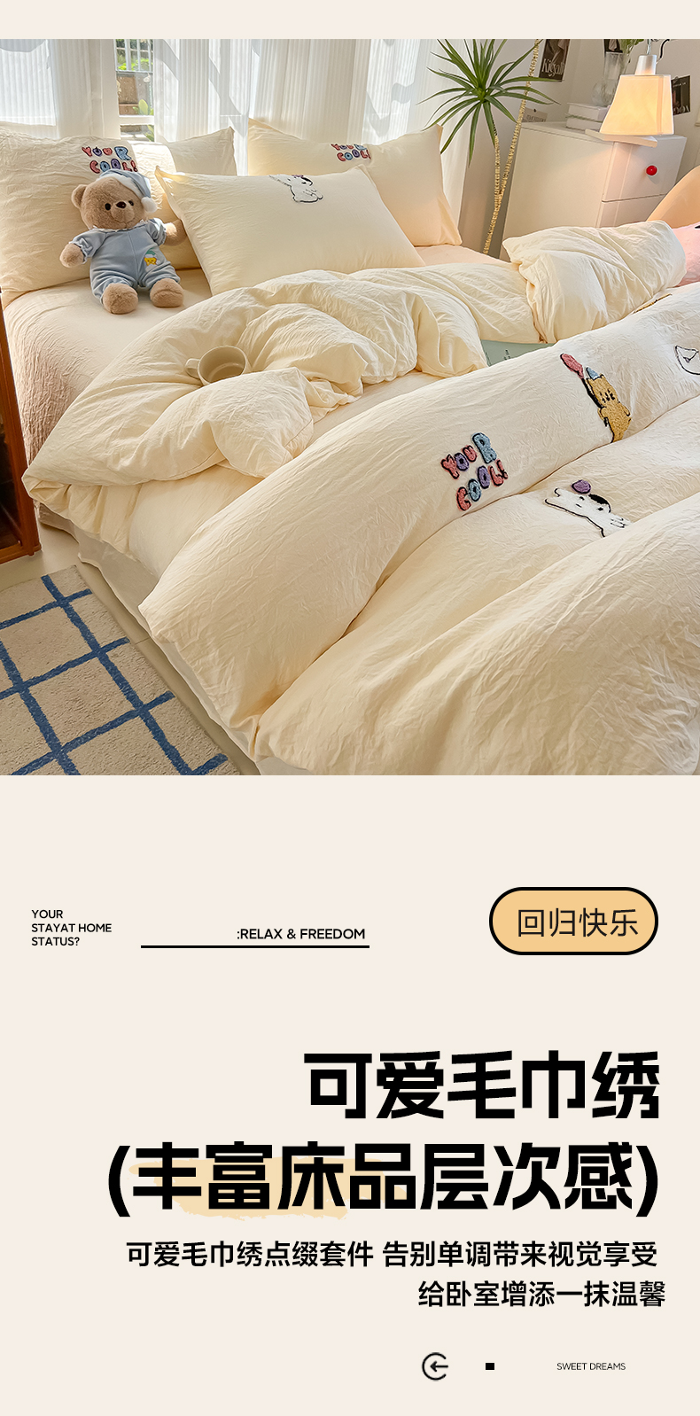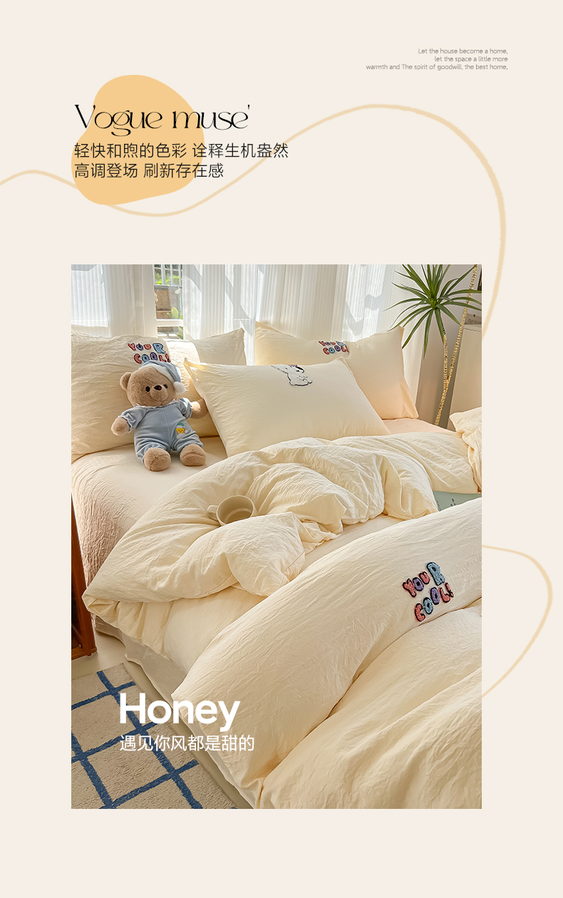 当前位置: 91家纺网 > 商品网购 > 床品套件 > 四件套 > 水洗棉四件套 > 韩巢家纺 2025新款超柔水洗棉毛巾绣四件套 动物乐园-奶黄