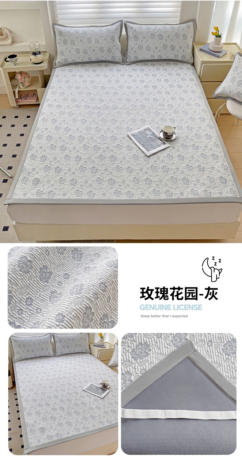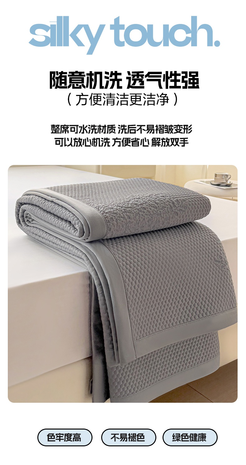 • 91家纺网 家纺一手货源 找家纺 富馨莱 2025新款A类480克PE凉感凉豆豆凉席三件套和单件平铺款 发财树-绿