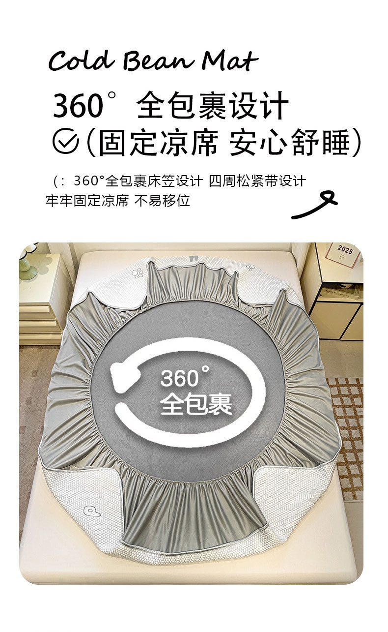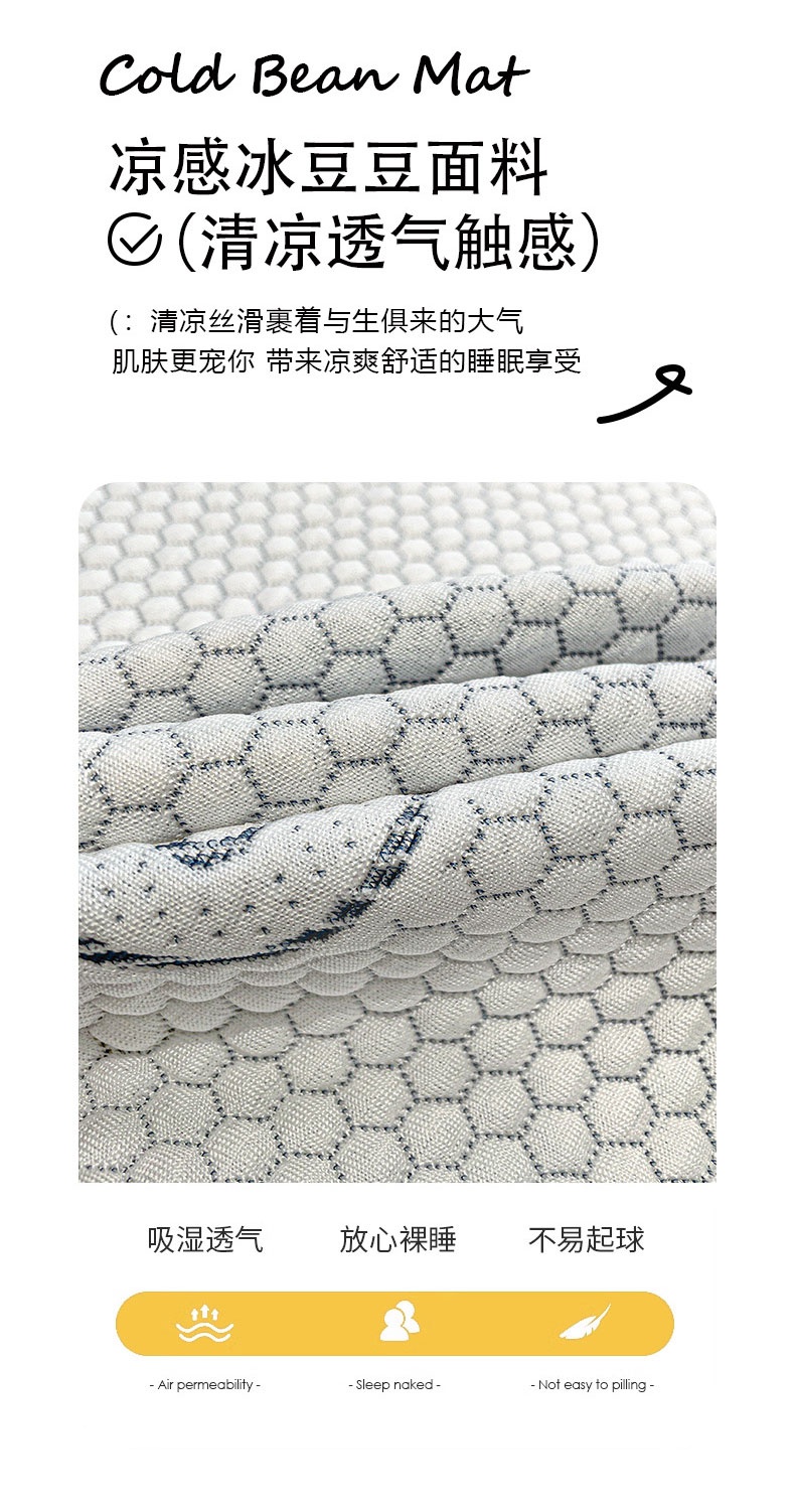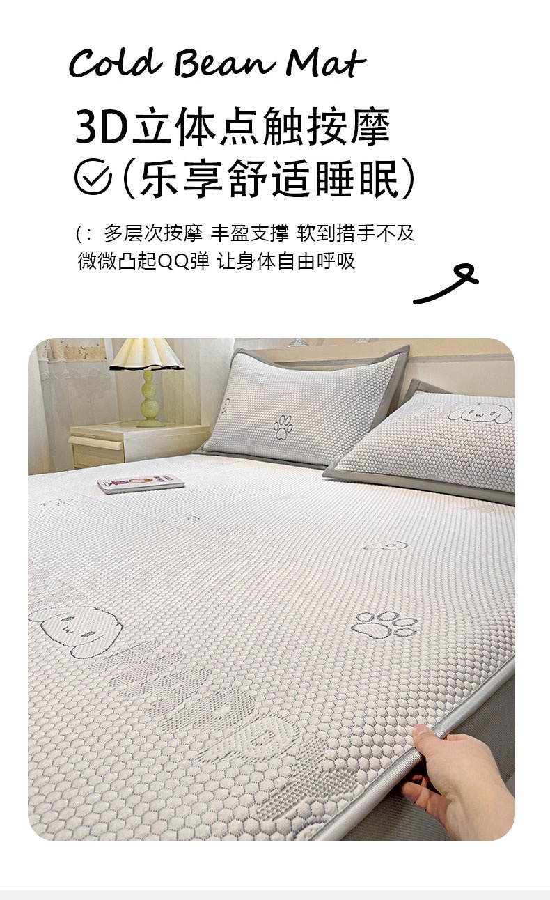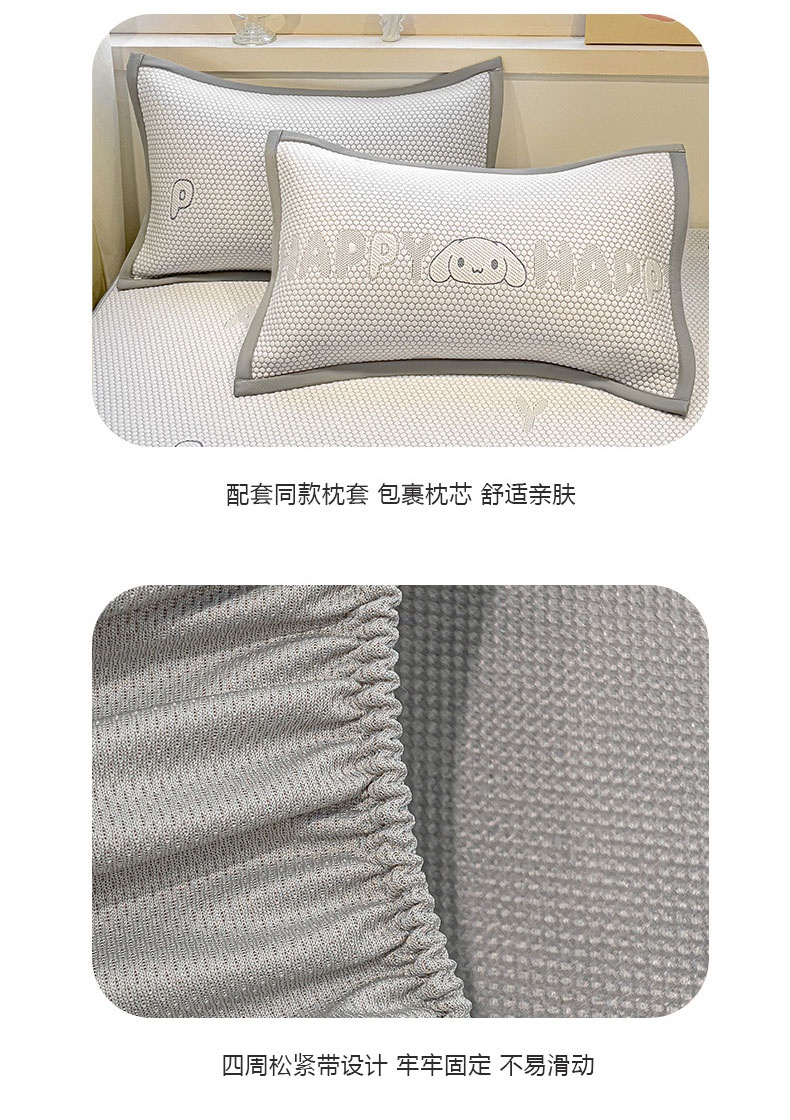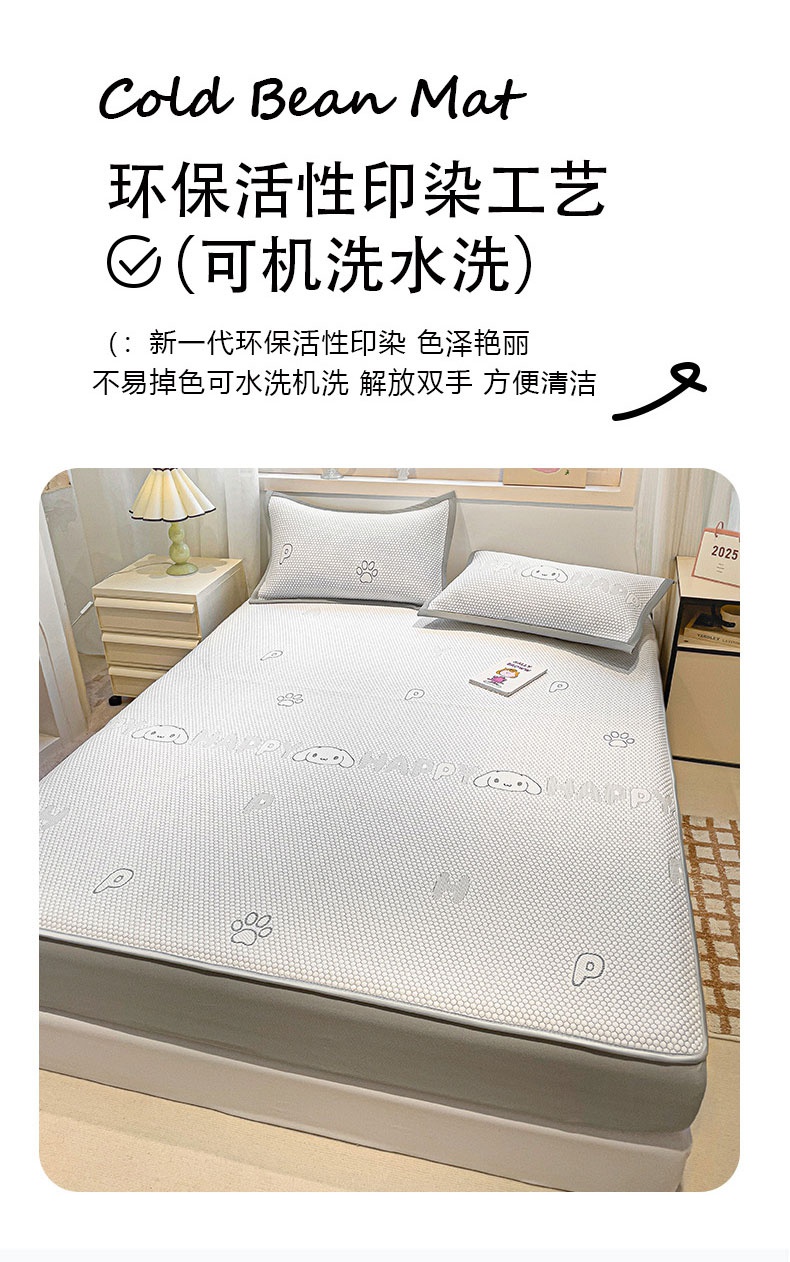 • 91家纺网 家纺一手货源 找家纺 富馨莱 2025新款A类480克PE凉感凉豆豆凉席三件套和单件床笠款 呆呆狗
