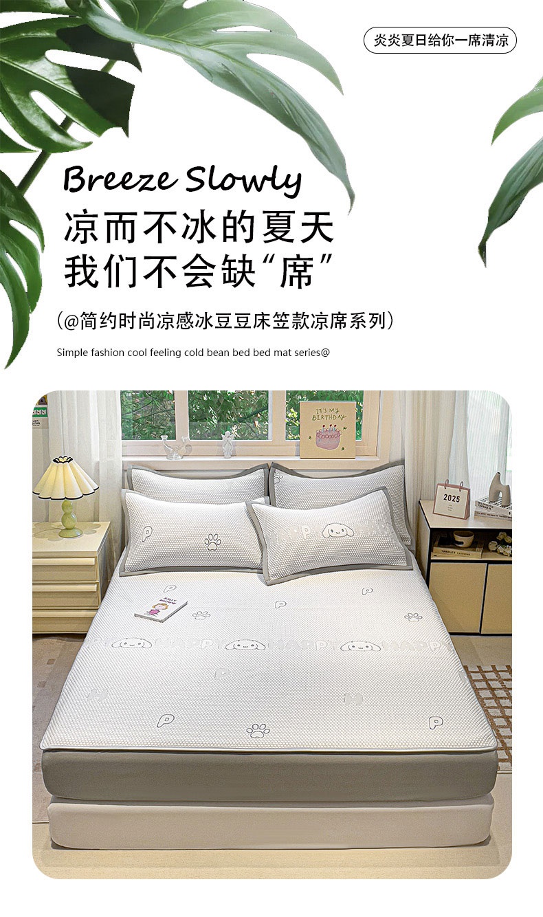富馨莱 2025新款A类480克PE凉感凉豆豆凉席三件套和单件床笠款 呆呆狗