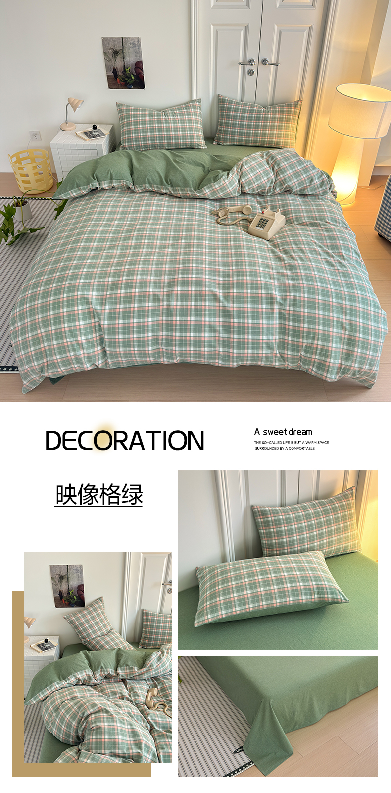 当前位置: 91家纺网 > 商品网购 > 床品套件 > 四件套 > 水洗棉四件套 > 玖弘家居 2025新款水洗棉格子系列四件套 映像格绿