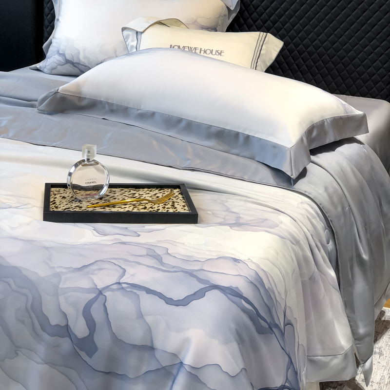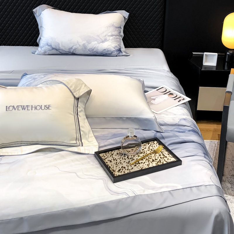 (总)若未家居 LOVEWE HOUSE 2026新款100S数码印花轻奢风四件套-波澜,波澜 爵士灰,波澜 公主粉,波澜 贝拉橘