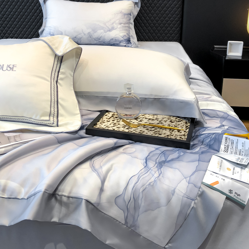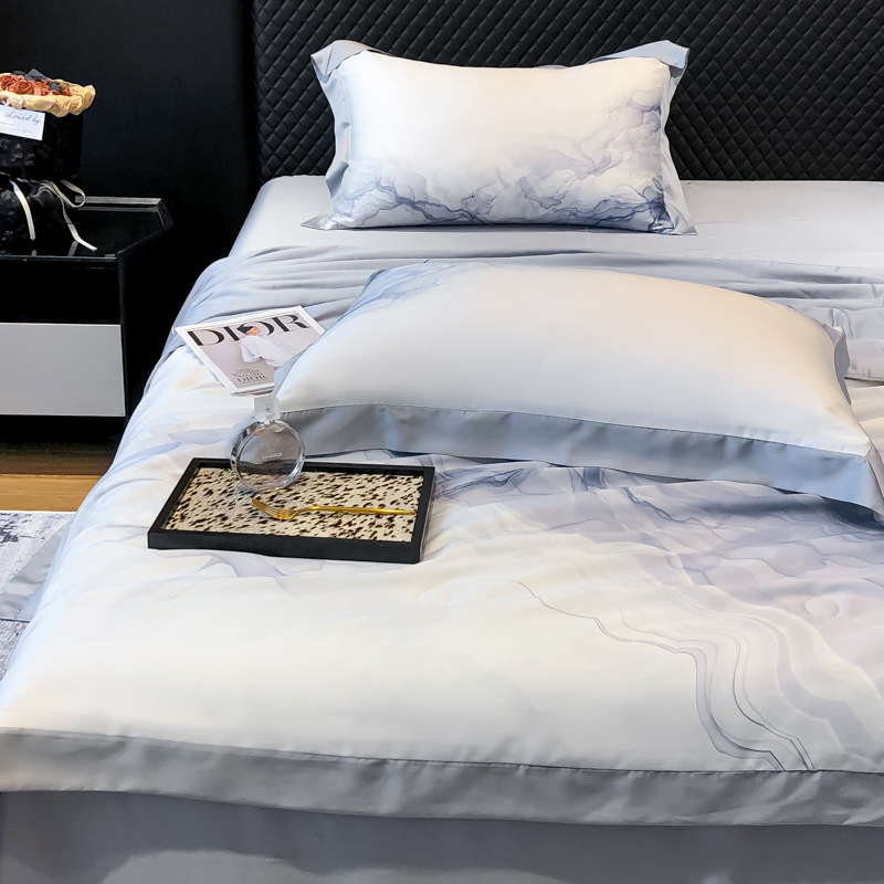 (总)若未家居2023新款轻奢意式50支全棉长绒棉四件套-水墨,贵族白,雾棕,烟蓝