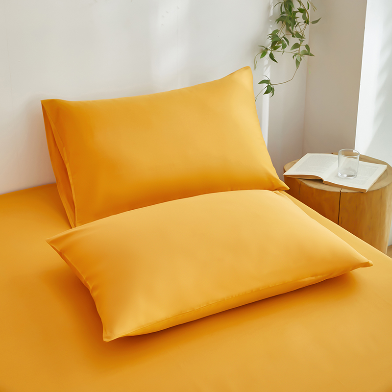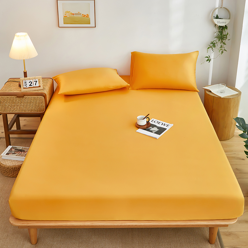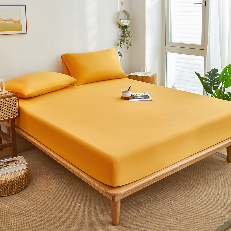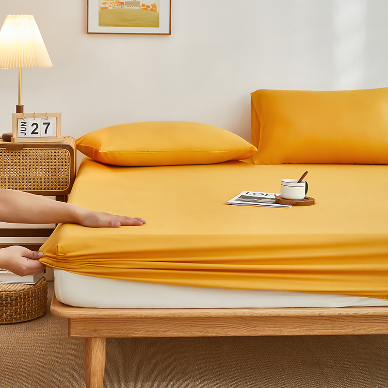 商品名称:艾橙家纺 2025新款正宗133x72喷气织造全棉纯棉纯色床笠三件套 香槟黄