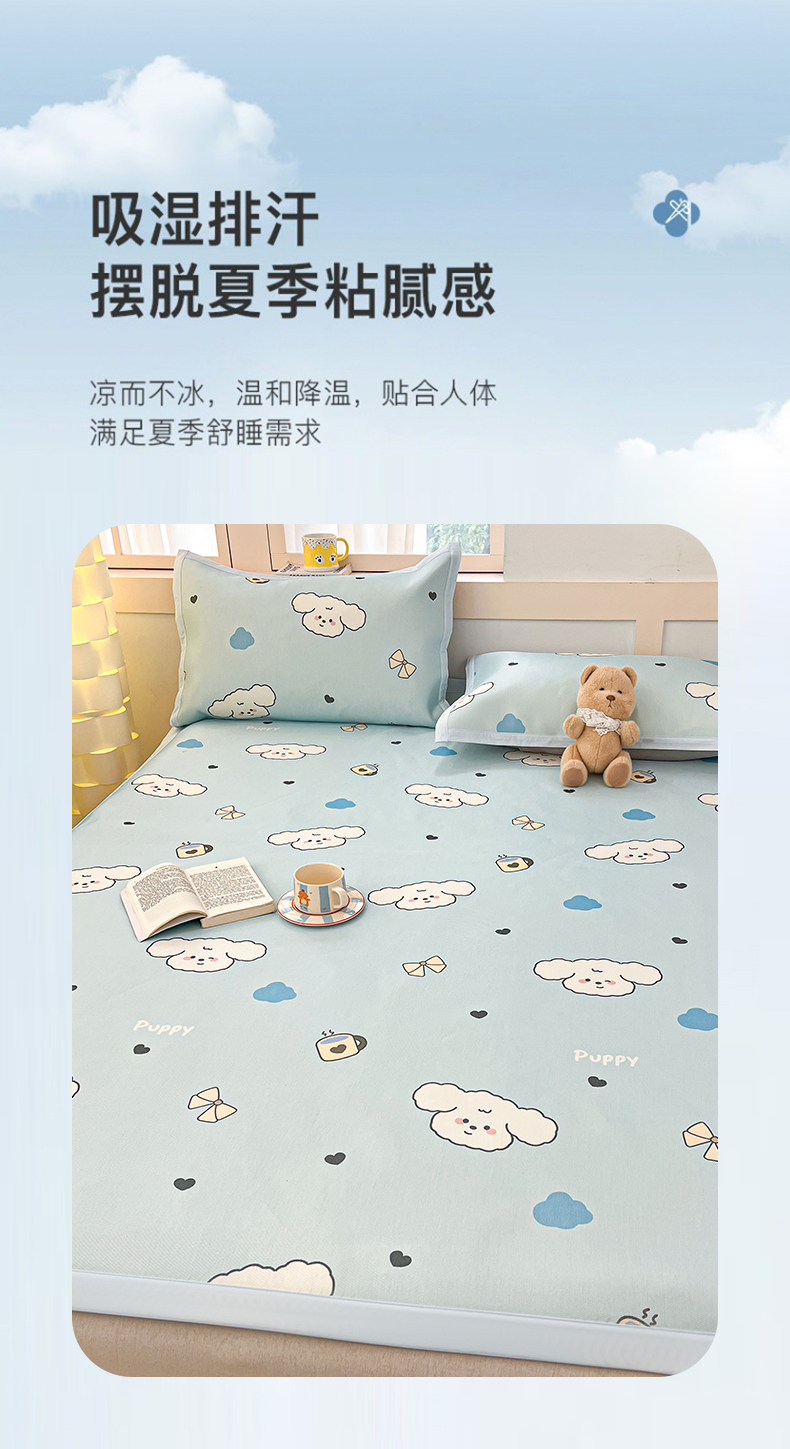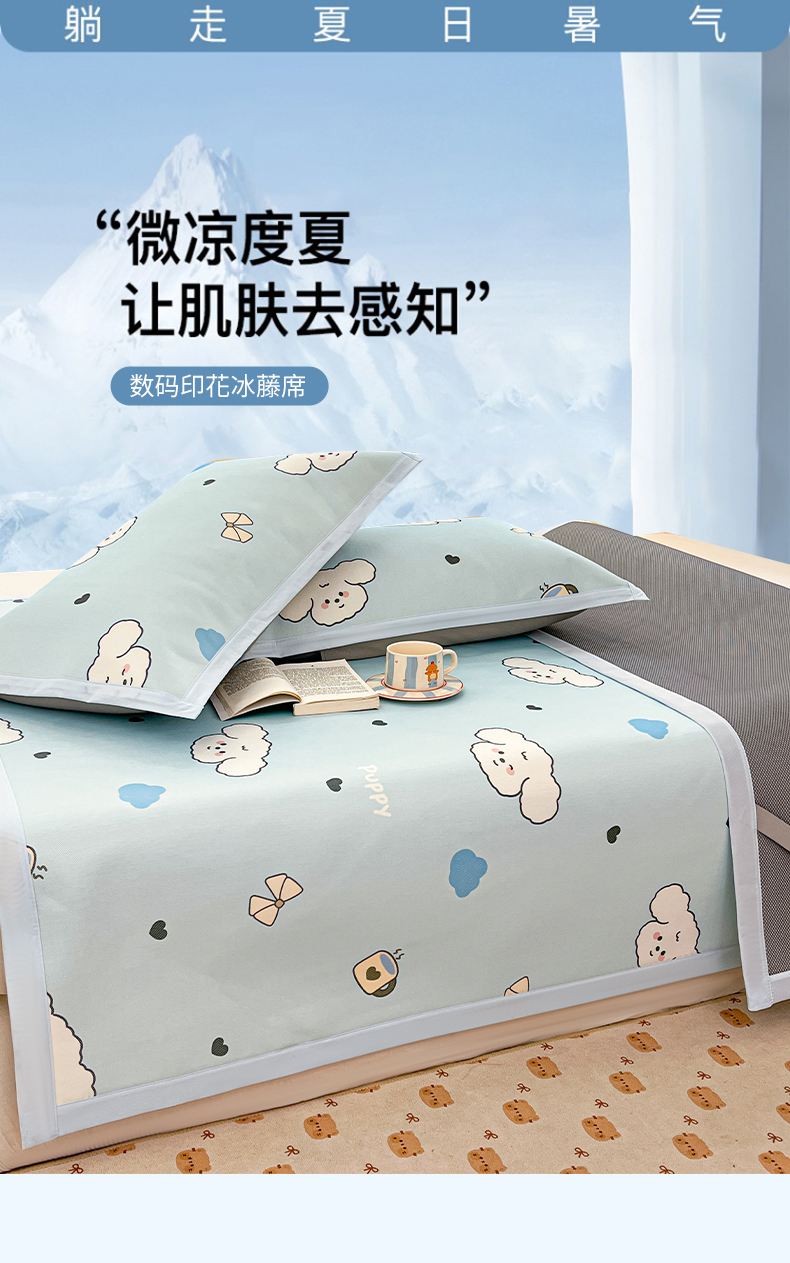 当前位置: 91家纺网 > 商品网购 > 床上用品 > 凉席 > 藤席 > 绒艺席业 2025新款600D冰丝印花数码印花冰藤席卡通小清新系列 云朵狗
