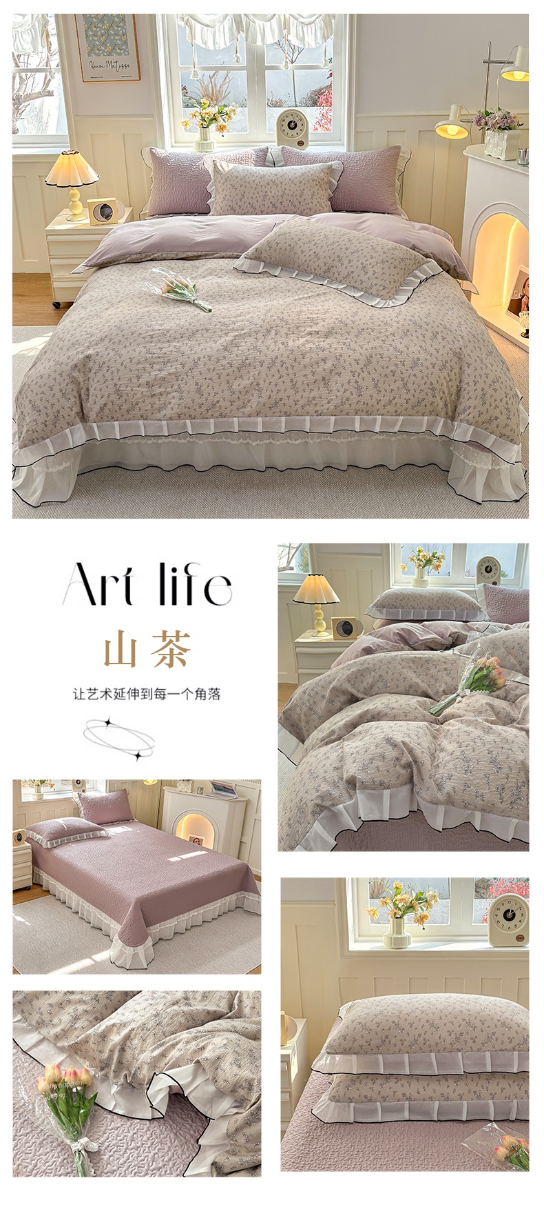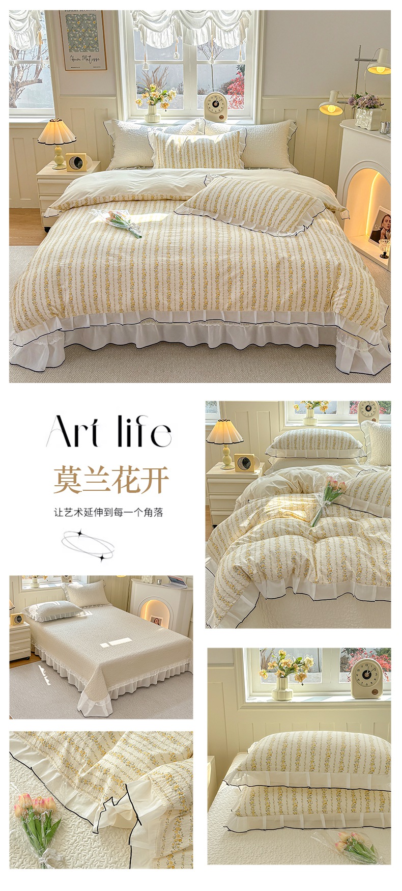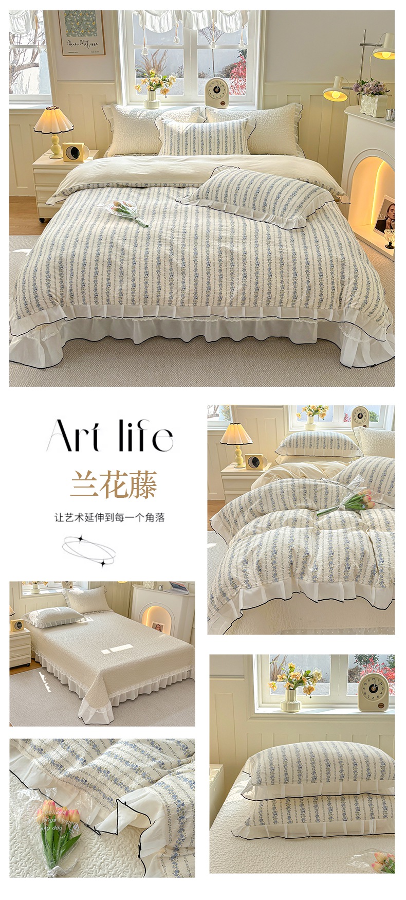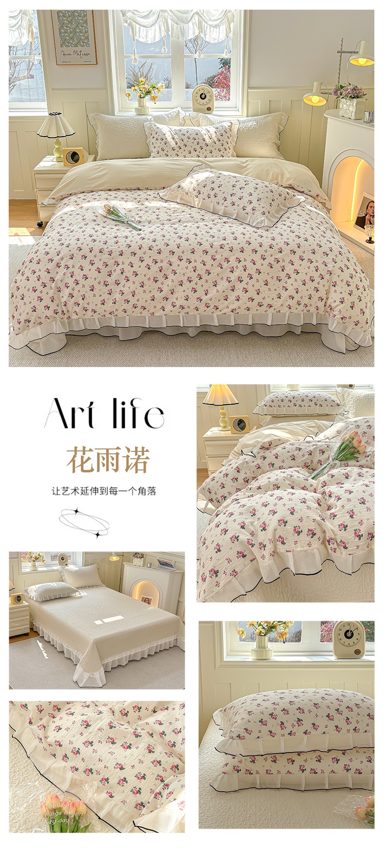 商品名称:(总)金艾草2026新款针织棉印花花边床盖款四件套