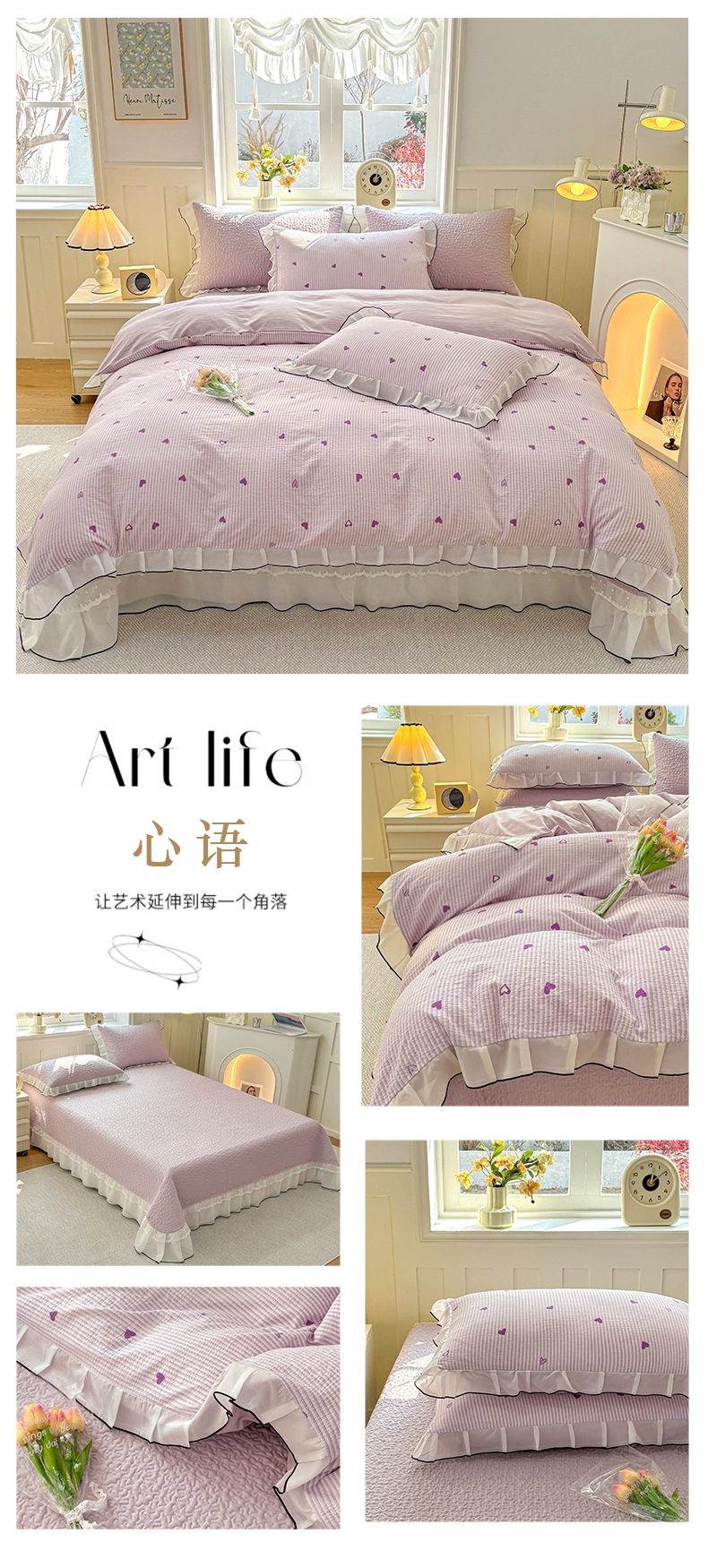 (总)金艾草 2026新款欧式风雕花全棉纯棉花边床盖四件套,欧花-粉,欧花-灰,欧花-浅绿,欧花-紫