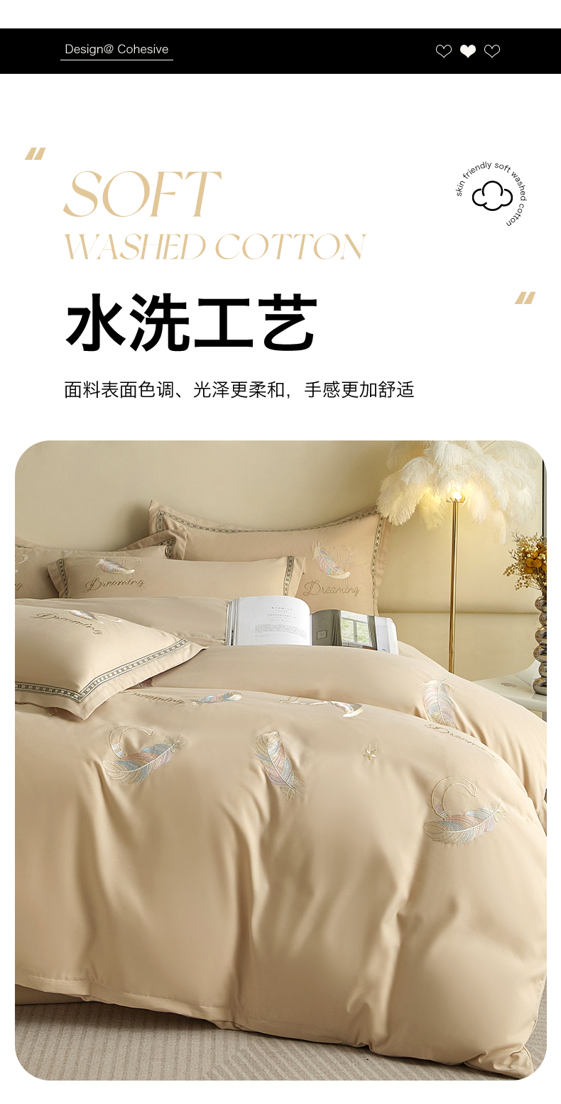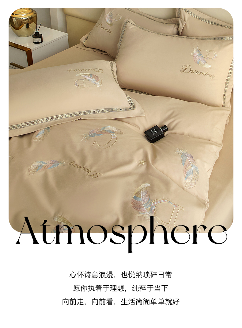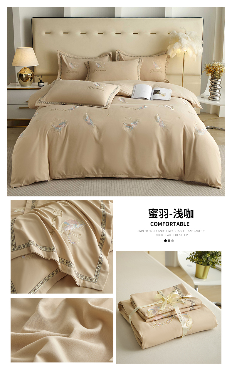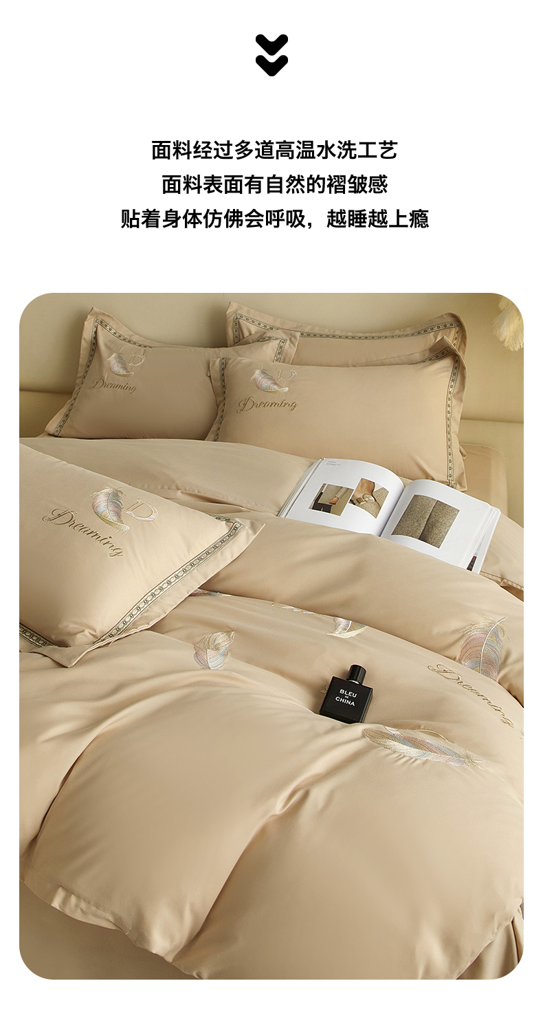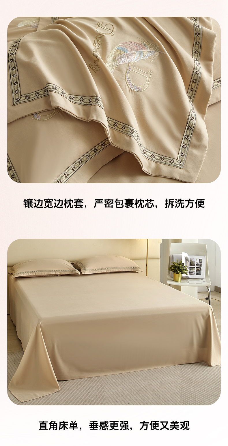 当前位置: 91家纺网 > 商品网购 > 床品套件 > 四件套 > 水洗棉四件套 > 佳宇轩 2025爆款水洗棉五彩刺绣四件套简约轻奢织带绣花床单床笠被罩4件套-蜜羽 蜜羽-浅咖