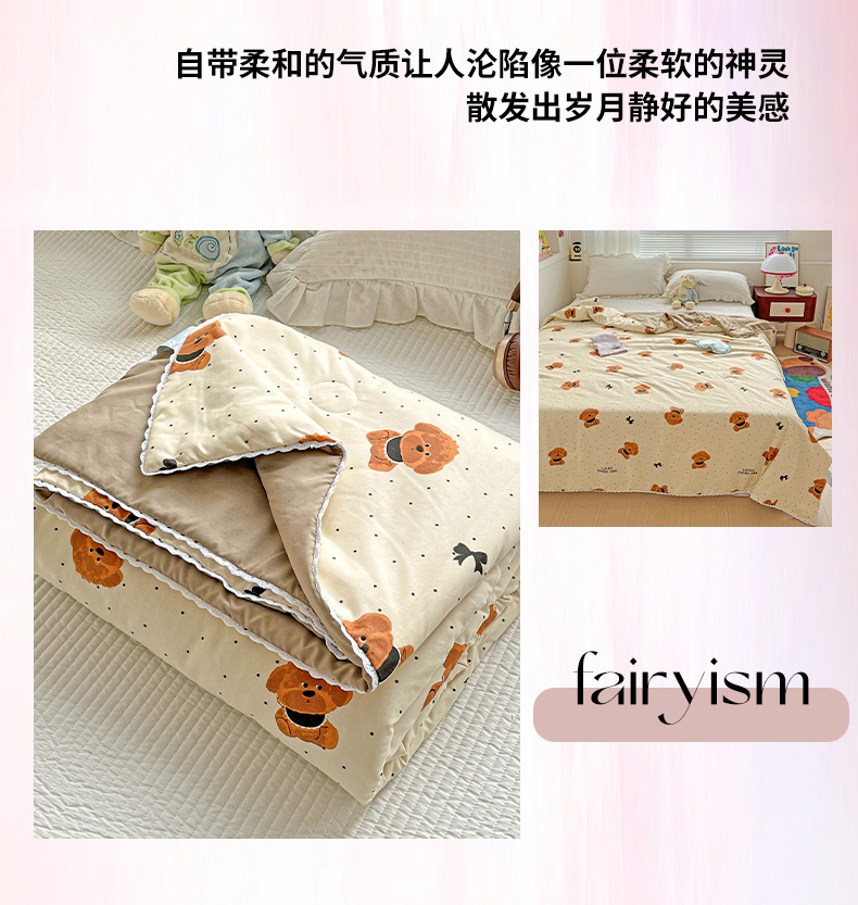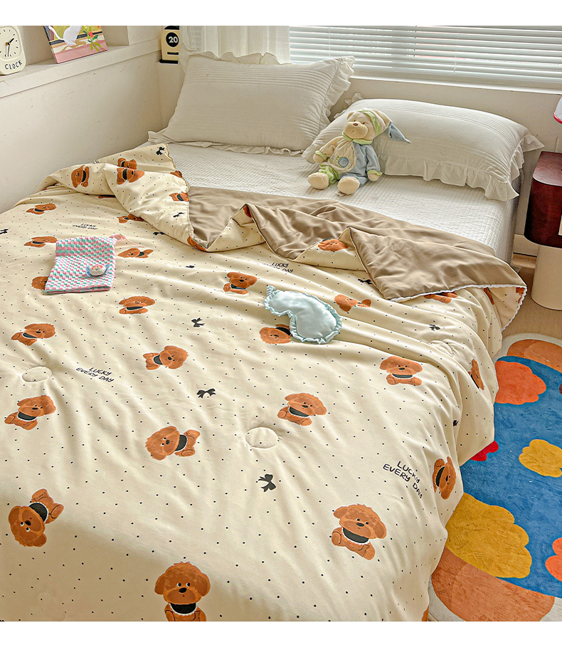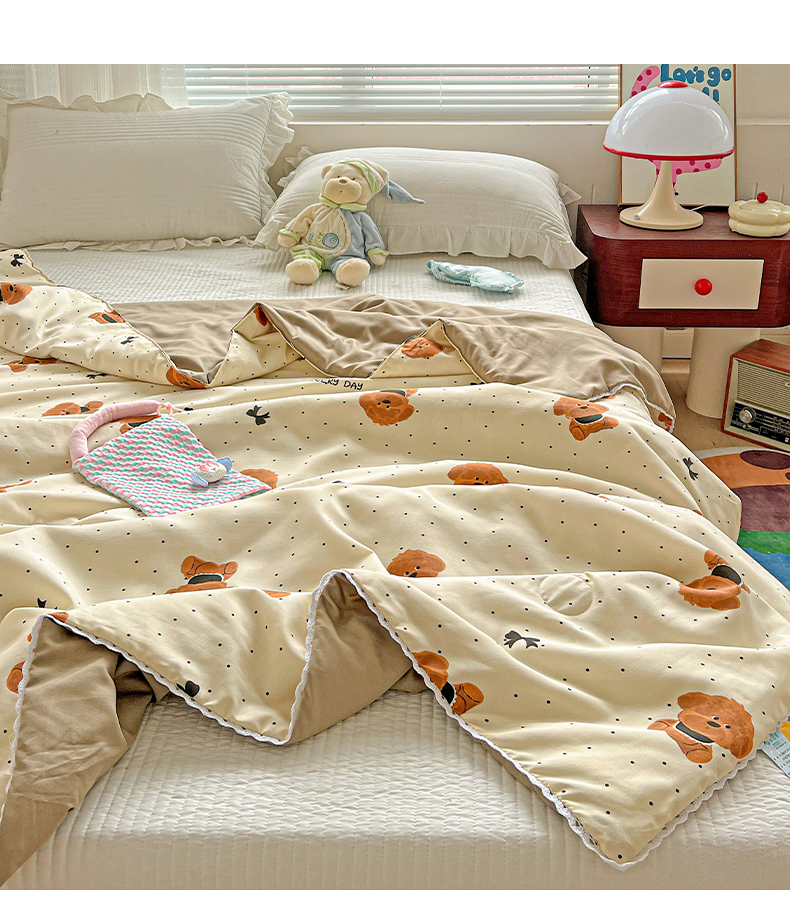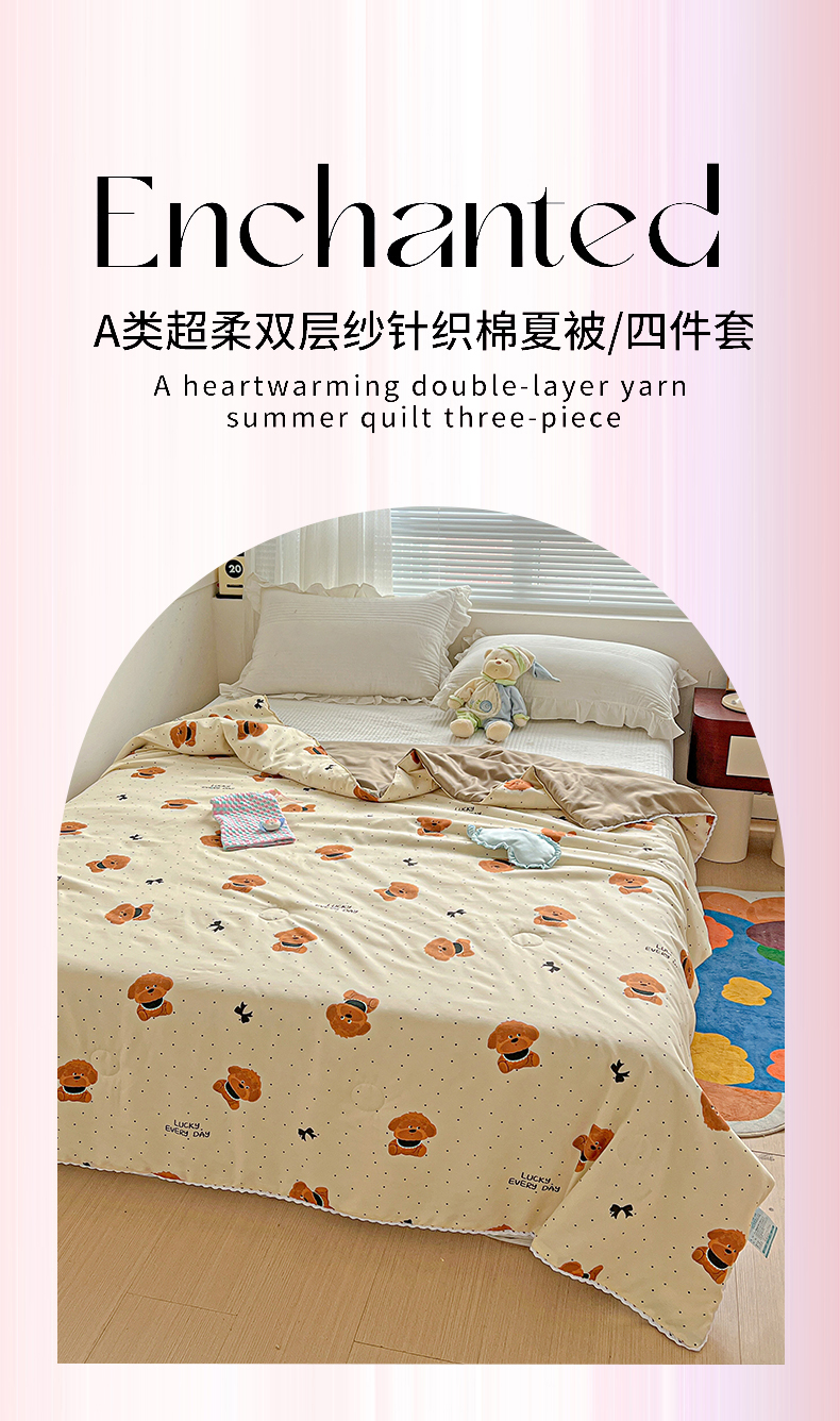 商品名称:妖妖家纺 2025新款超柔双层纱糯糯针织棉夏凉被 呆萌泰迪