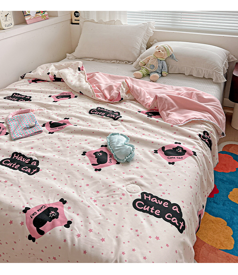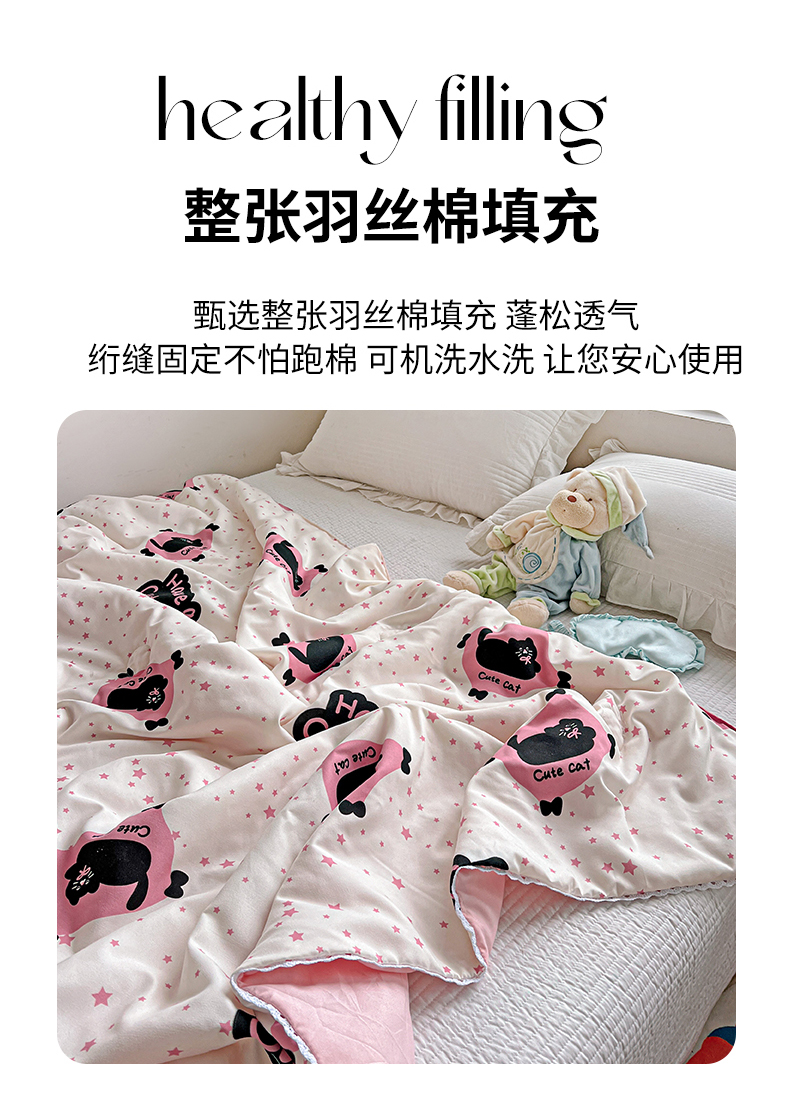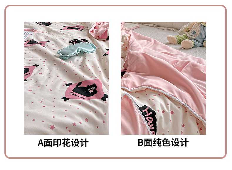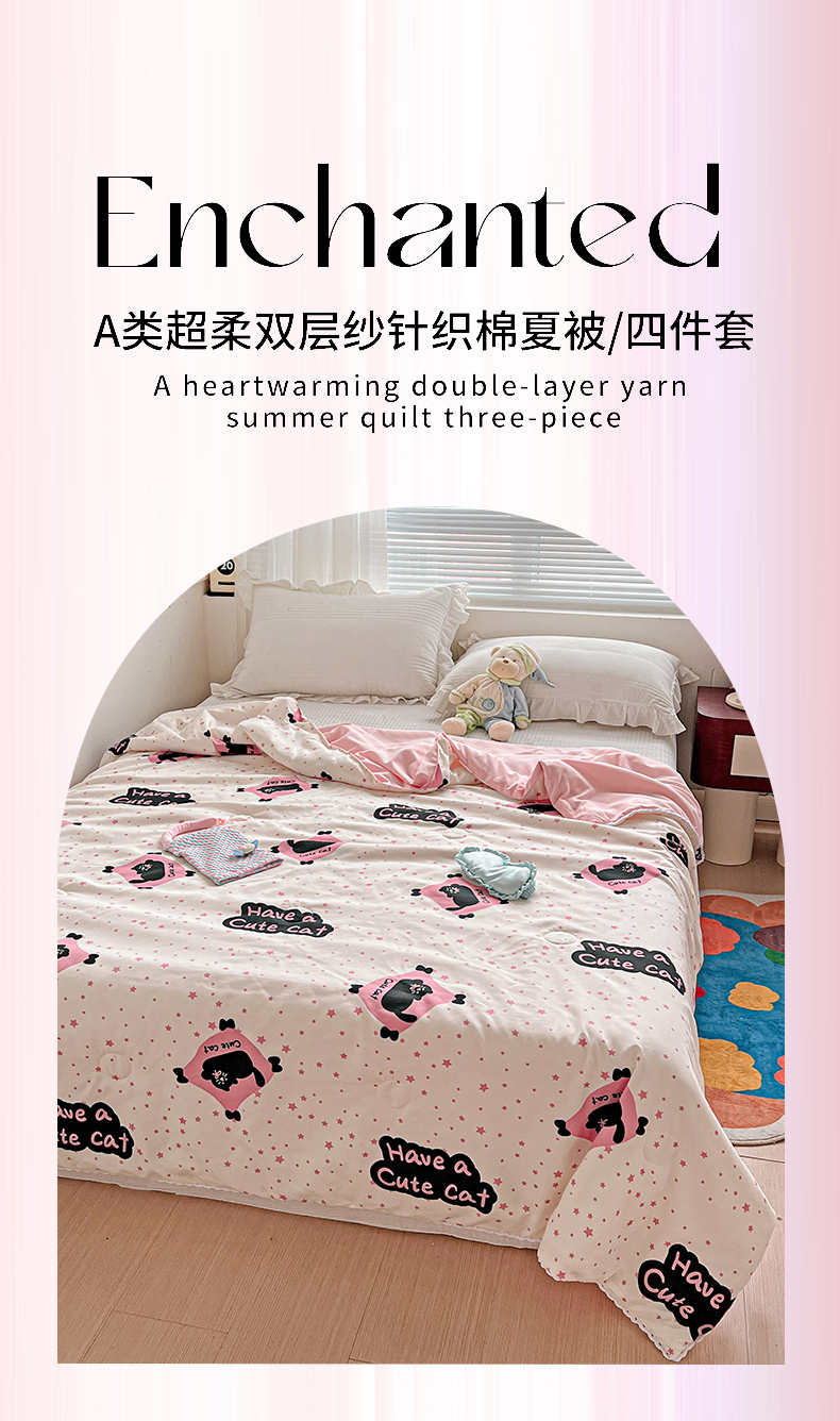 商品名称:妖妖家纺 2025新款超柔双层纱糯糯针织棉夏凉被 慵懒小猫