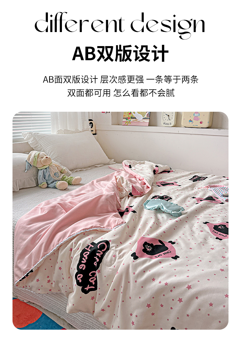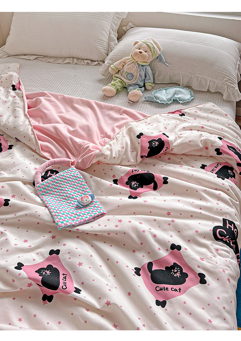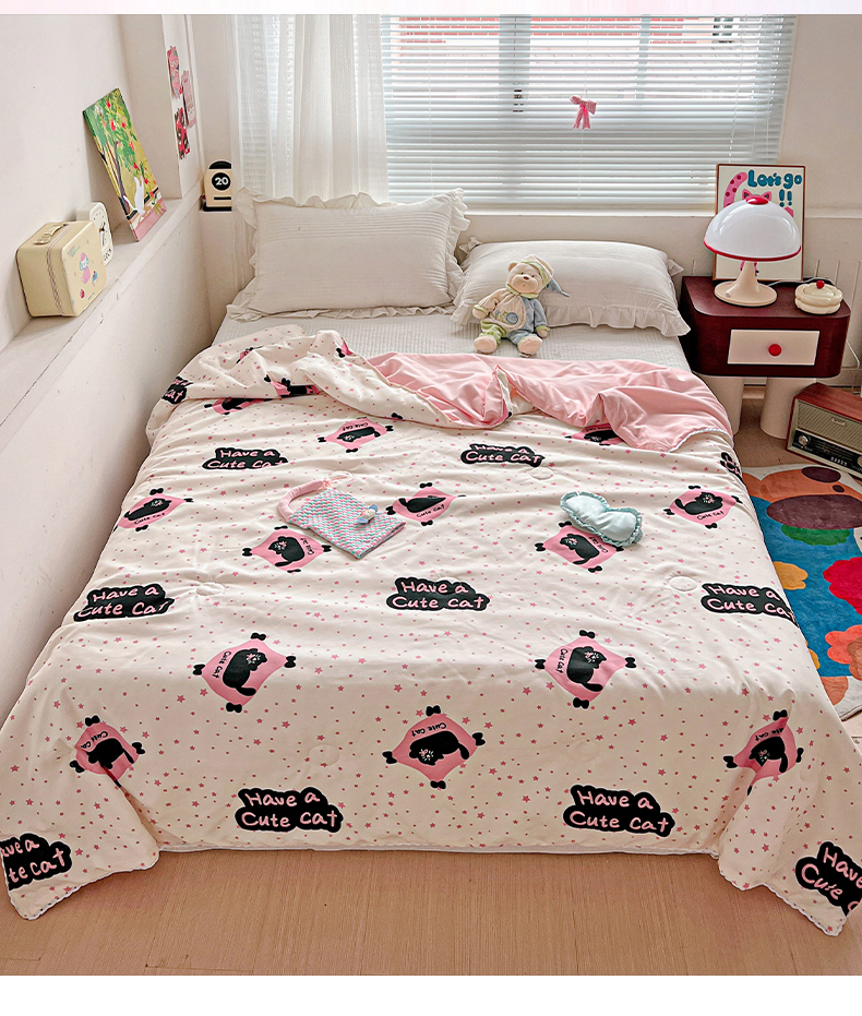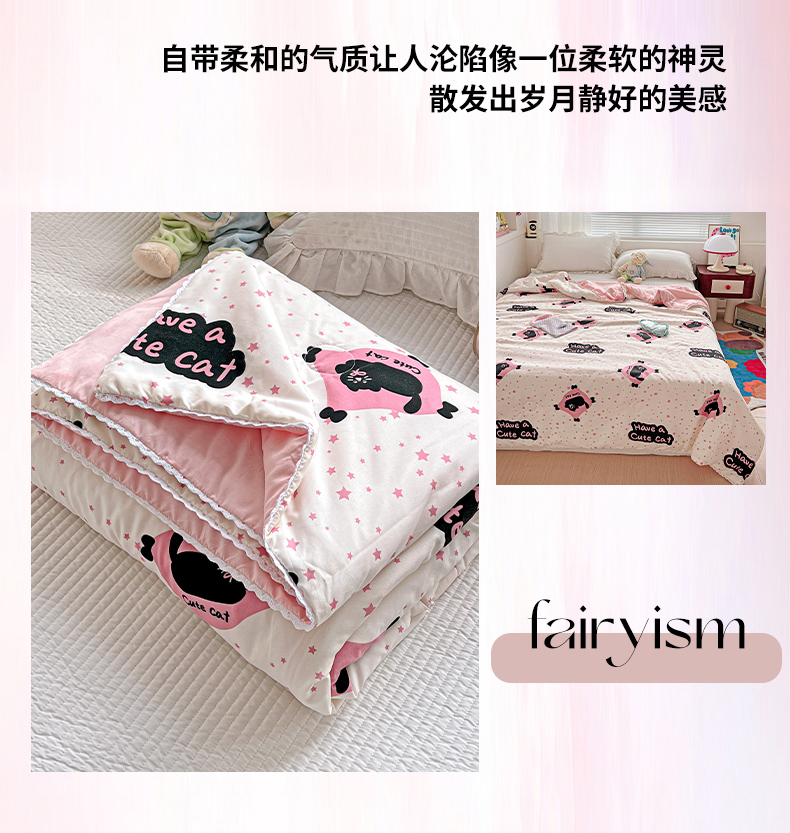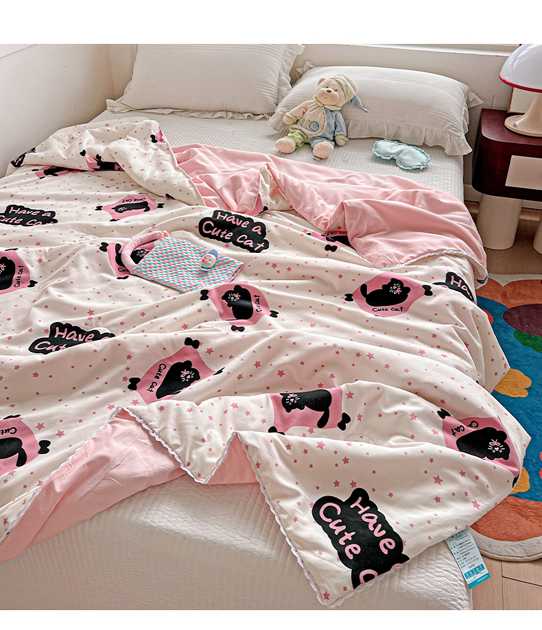 妖妖家纺 2025新款超柔双层纱糯糯针织棉夏凉被 慵懒小猫
