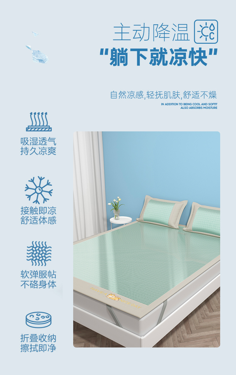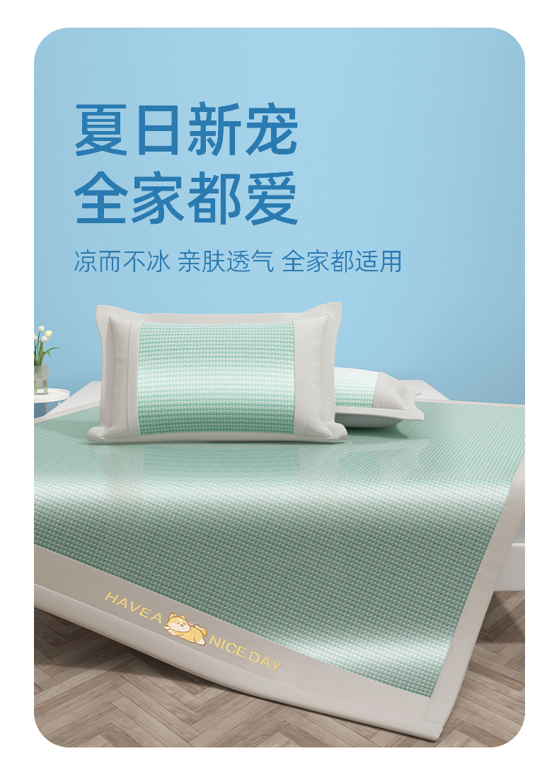 当前位置: 91家纺网 > 商品网购 > 床上用品 > 凉席 > 冰丝席 > 绒艺席业 2025新款A类抗菌冰丝凉席系列-柯基款 绿色