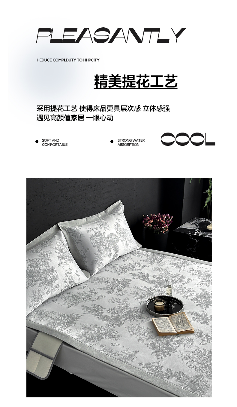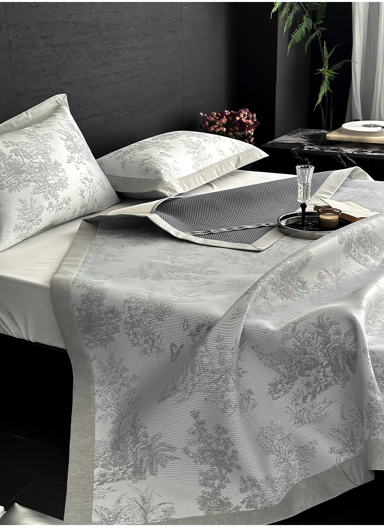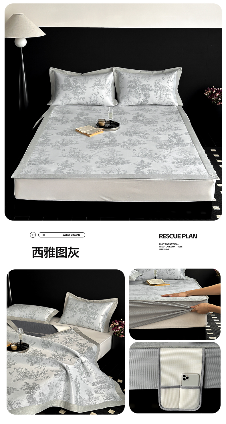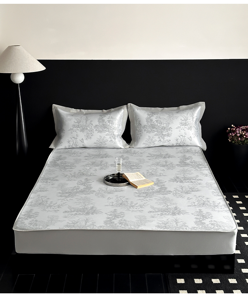 商品名称:三味舒屋 2025新款抗菌防螨凉感提花冰丝凉席席子-西雅图 西雅图灰床席