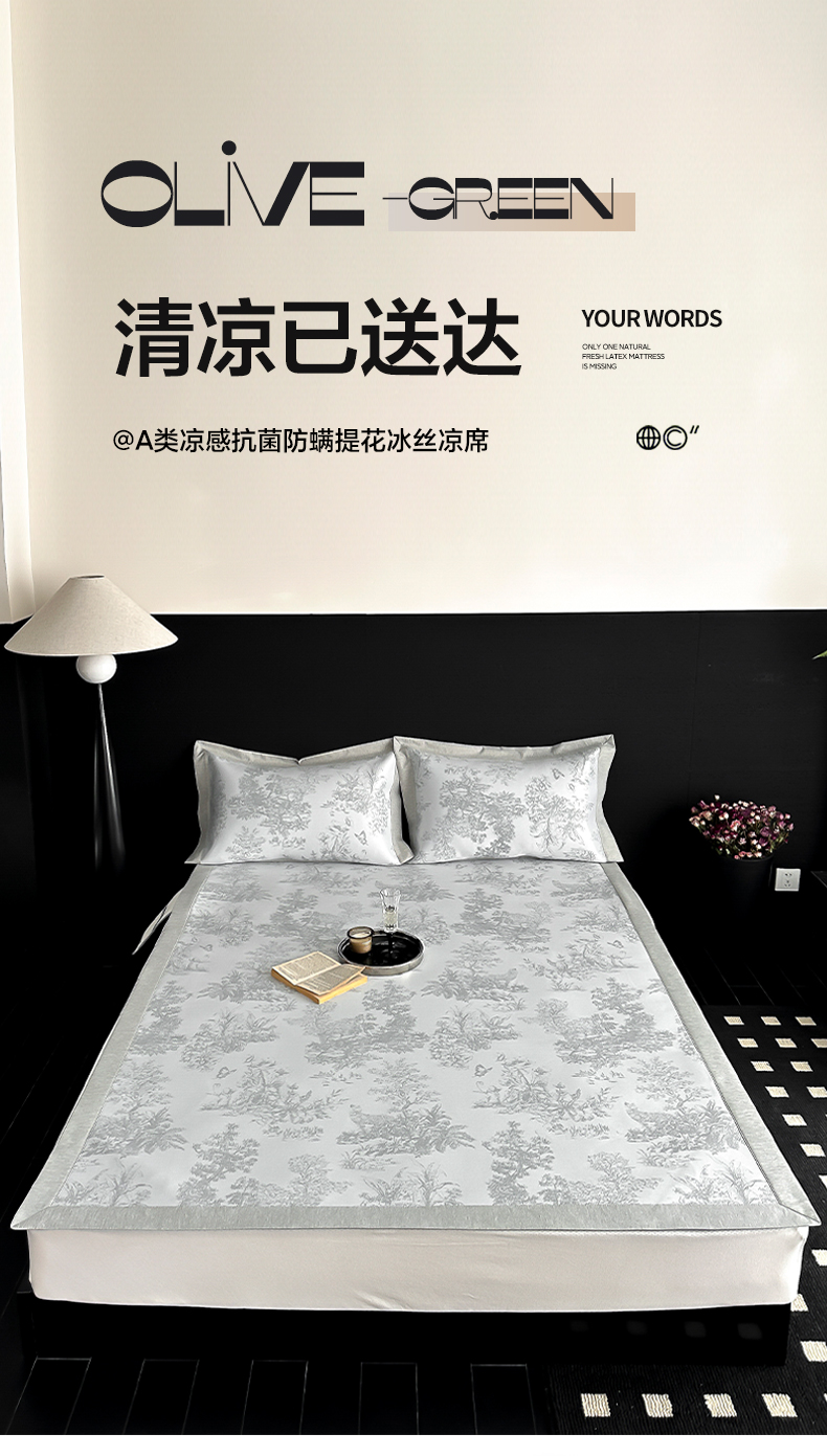 (总)三味舒屋 2025新款 凉感抗菌防螨印花冰丝养生席(新升级7A抗菌),花非花 床席,花非花 床笠,雾非雾 床席,雾非雾 床笠