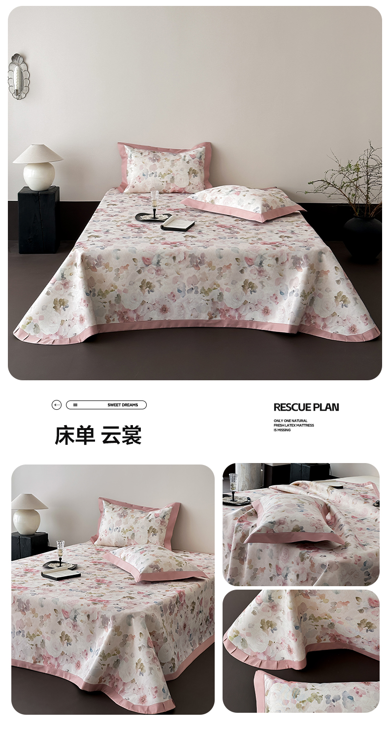 商品名称:三味舒屋 2025新款雅奢系列数码印花冰丝床单凉席三件套 床单 云裳