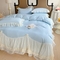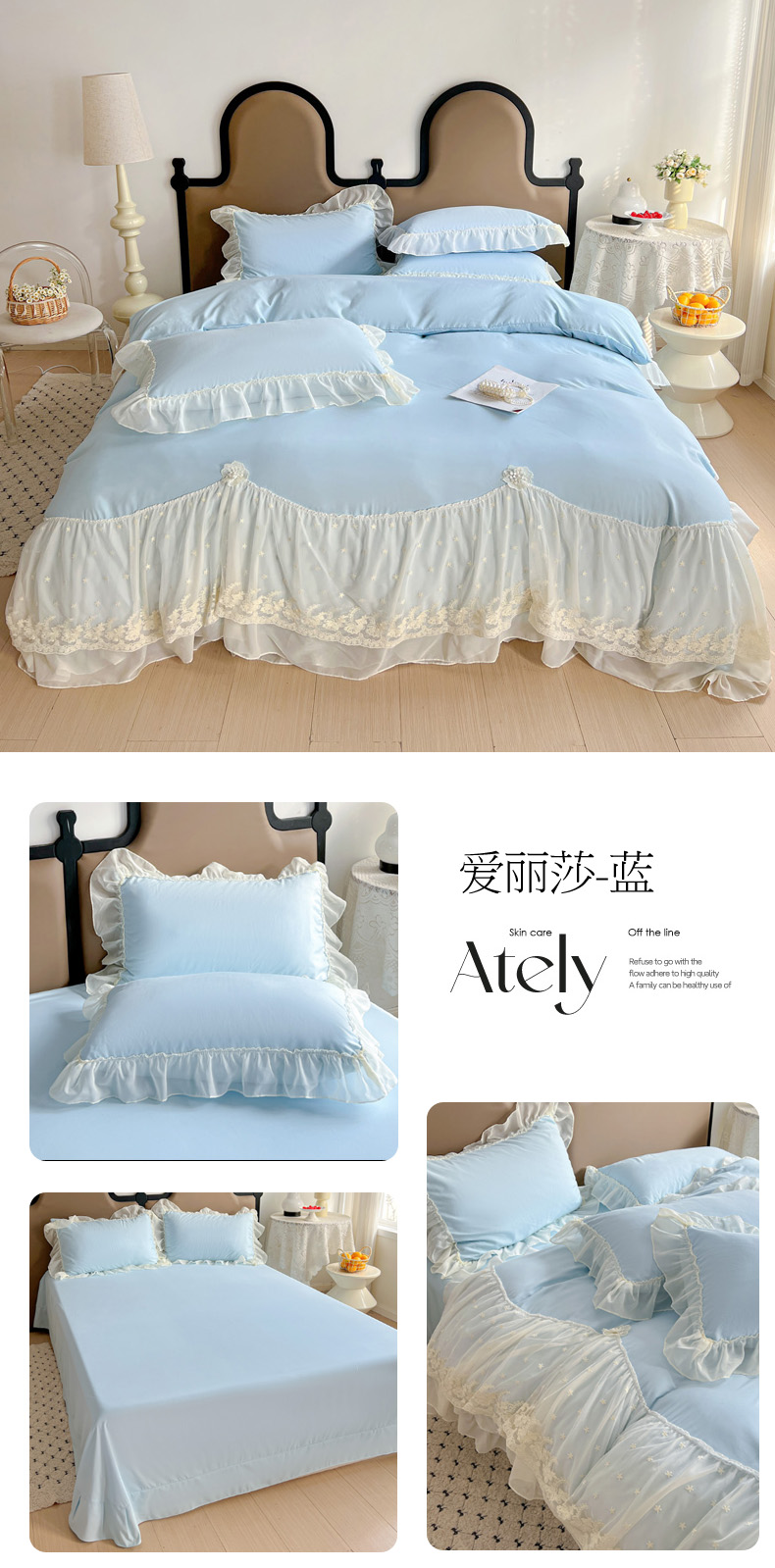 商品名称:艺玲家纺 2025新款糯小棉爱丽莎雪纺花边四件套 爱丽莎-蓝