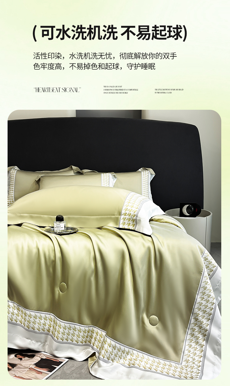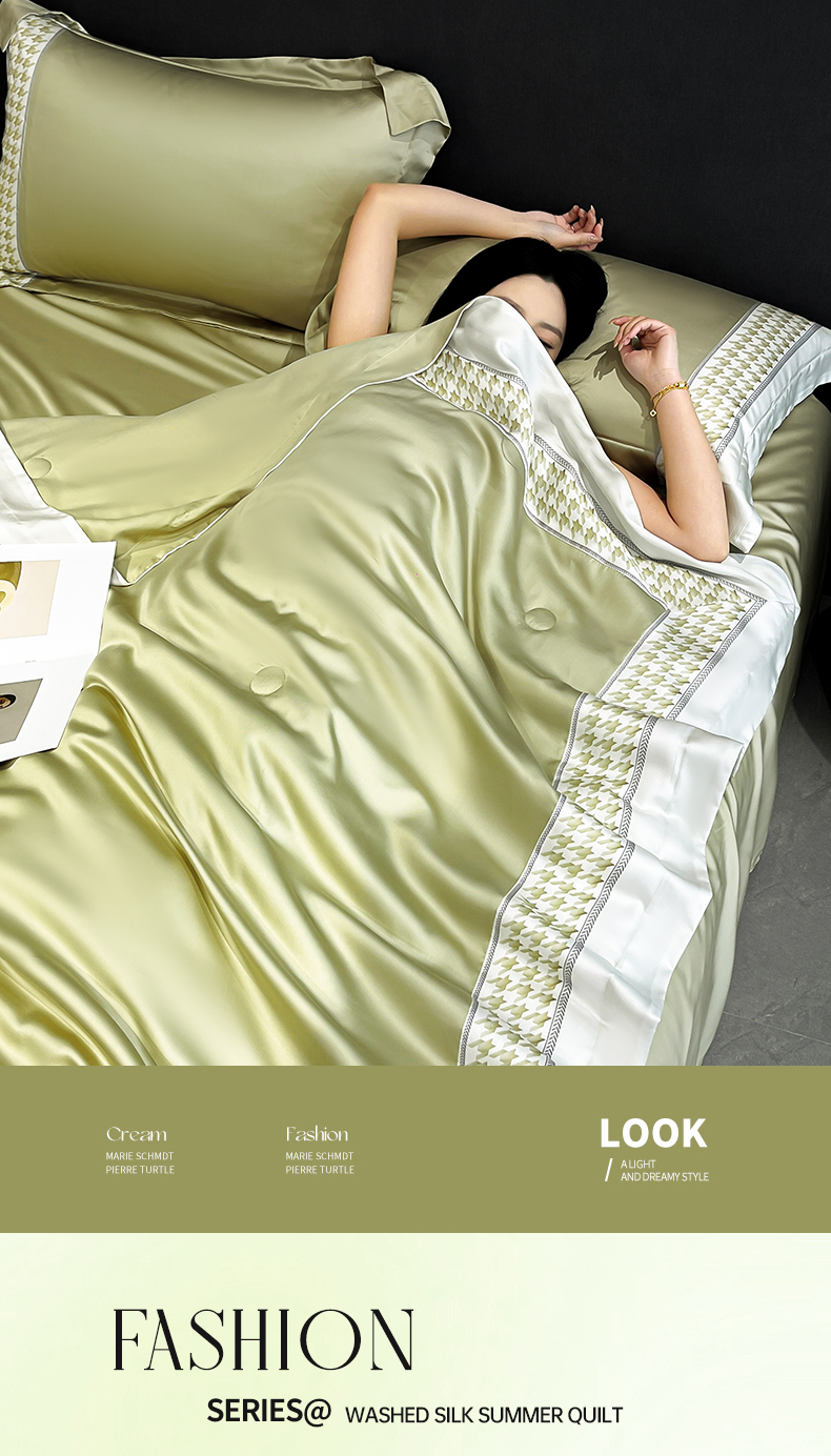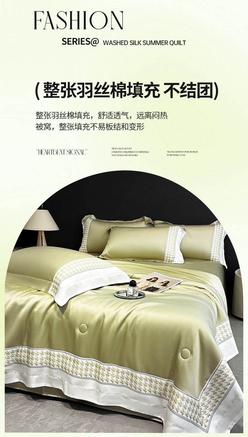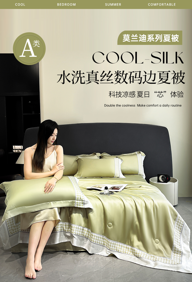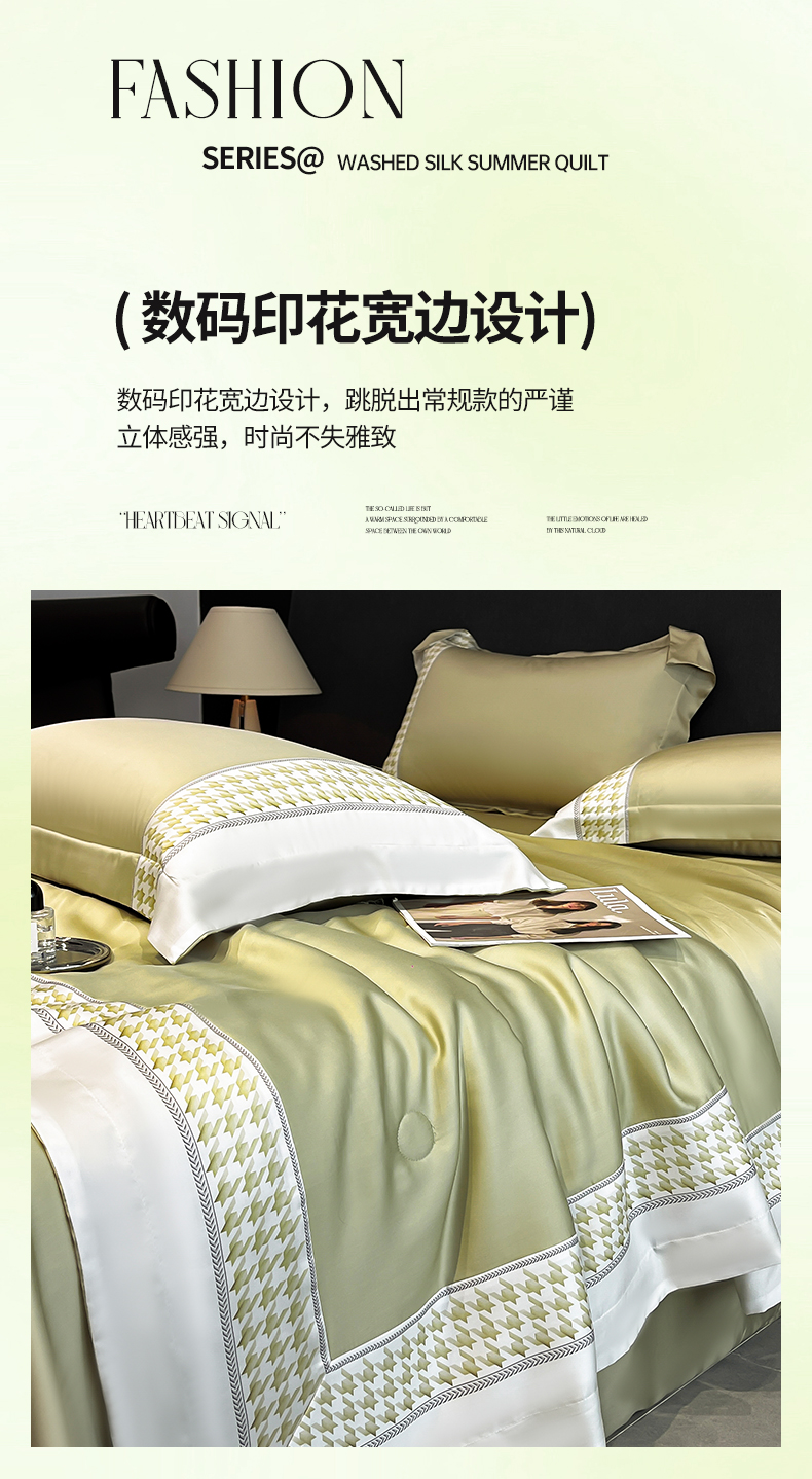 • 91家纺网 家纺一手货源 找家纺 露梦家纺 2025新款A类水洗真丝数码边莫兰迪系列夏被子被芯 莫兰迪-香草绿
