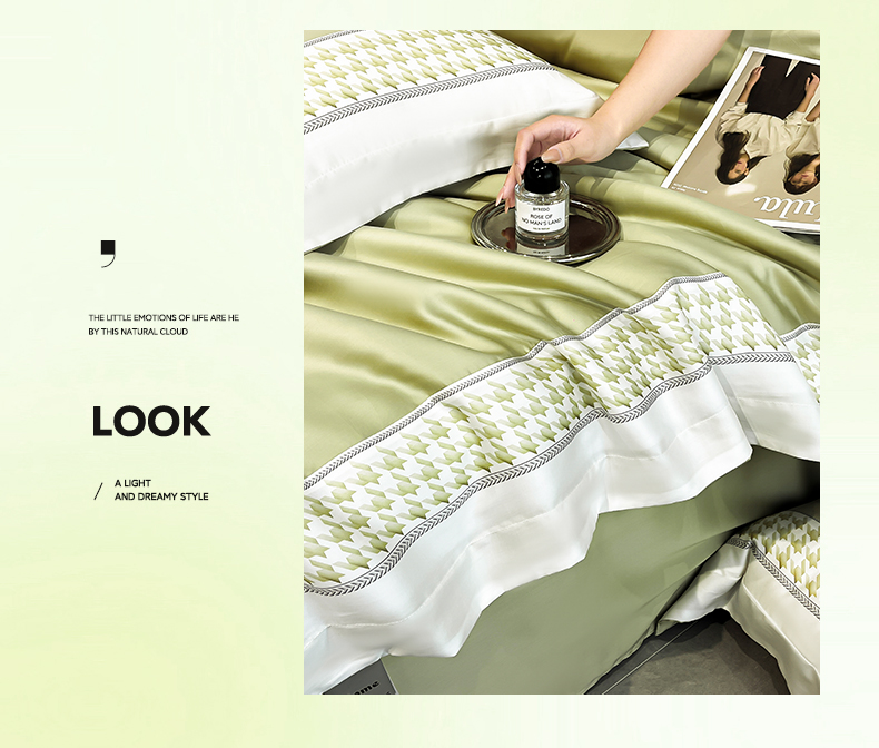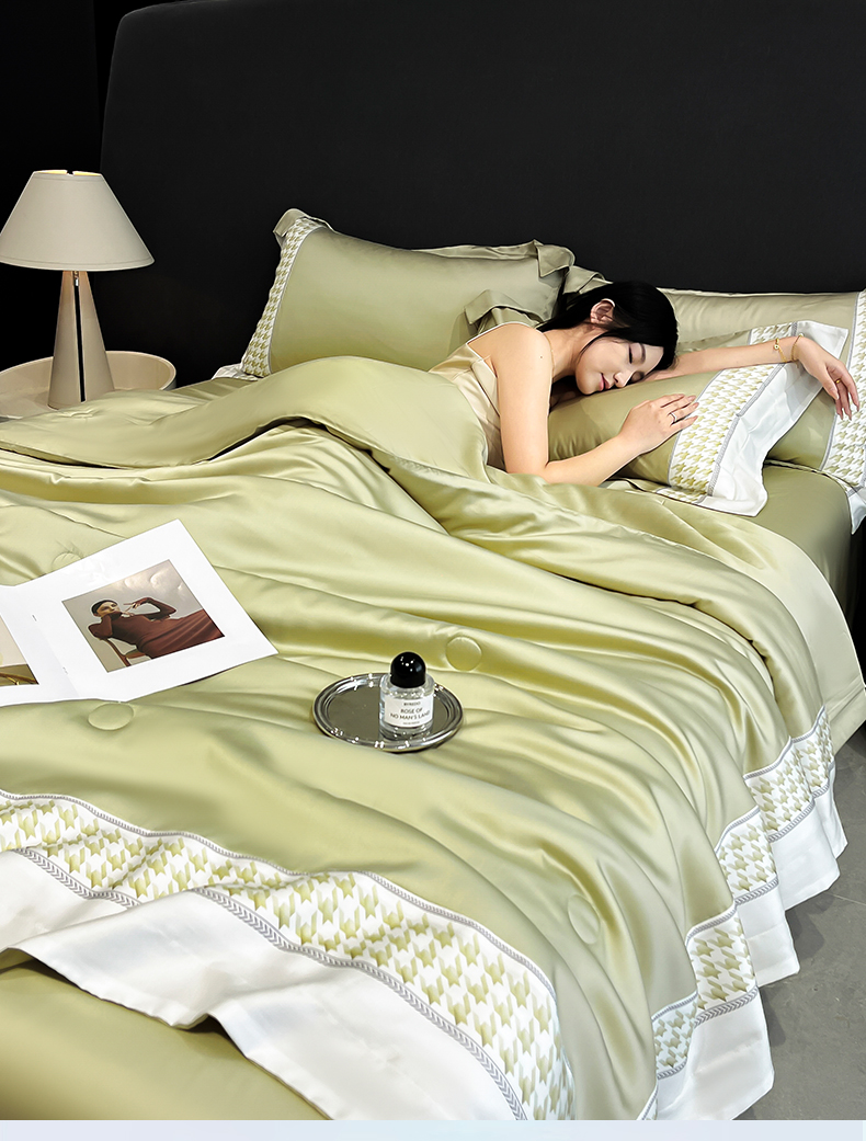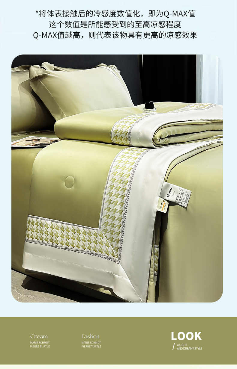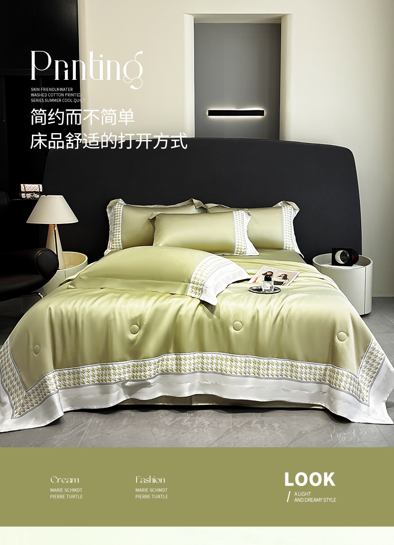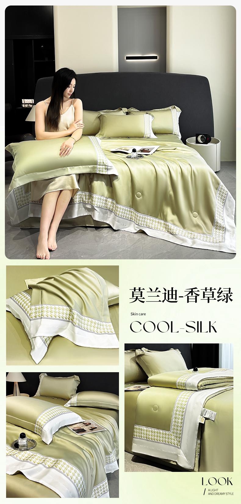 • 91家纺网 家纺一手货源 找家纺 露梦家纺 2025新款A类水洗真丝数码边莫兰迪系列夏被子被芯 莫兰迪-香草绿