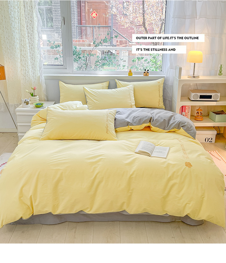 当前位置: 91家纺网 > 商品网购 > 床品套件 > 四件套 > 全棉普通四件套 > 禧澜庭 2025新款纯棉全棉斜纹四件套刺绣绣花款春小清新三件套-幸运花 幸运花-芝士黄+中灰