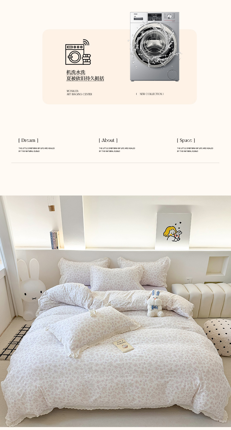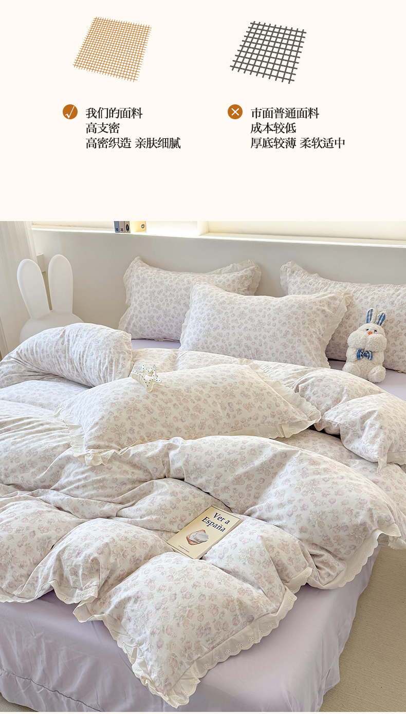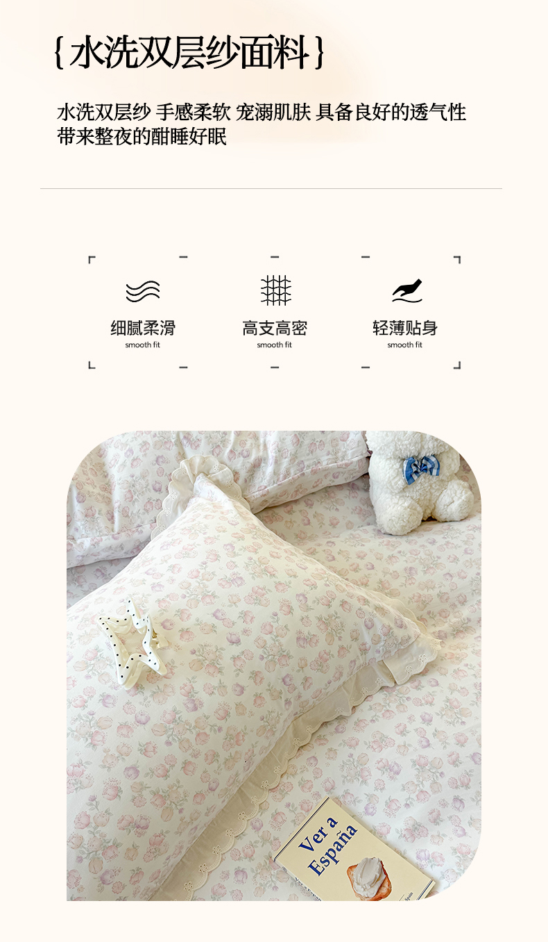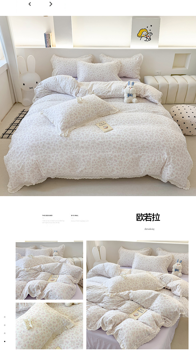 商品名称:吾欢心 2025新款韩版花边水洗双层纱四件套夏被四件套(棚拍图) 欧若拉
