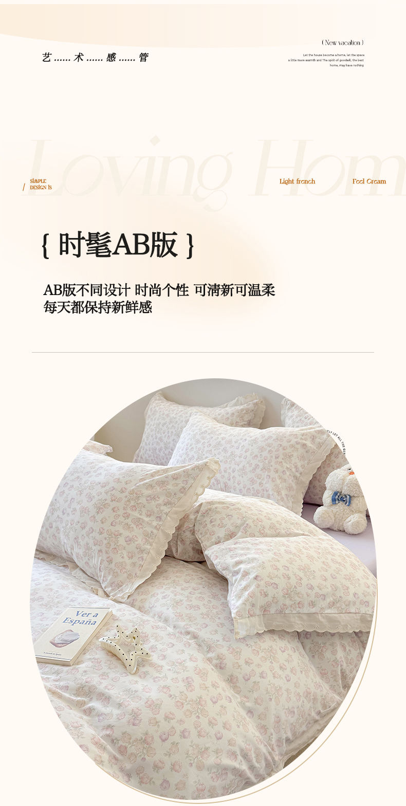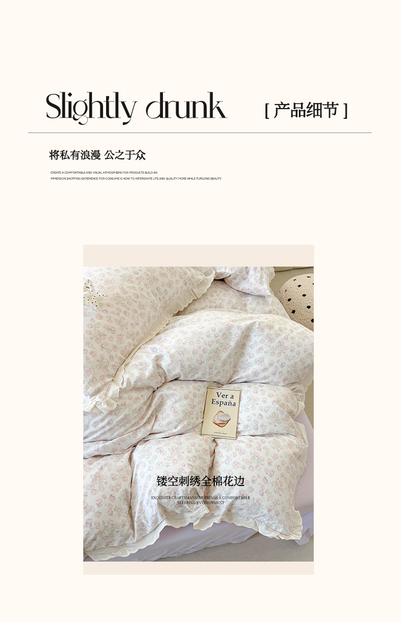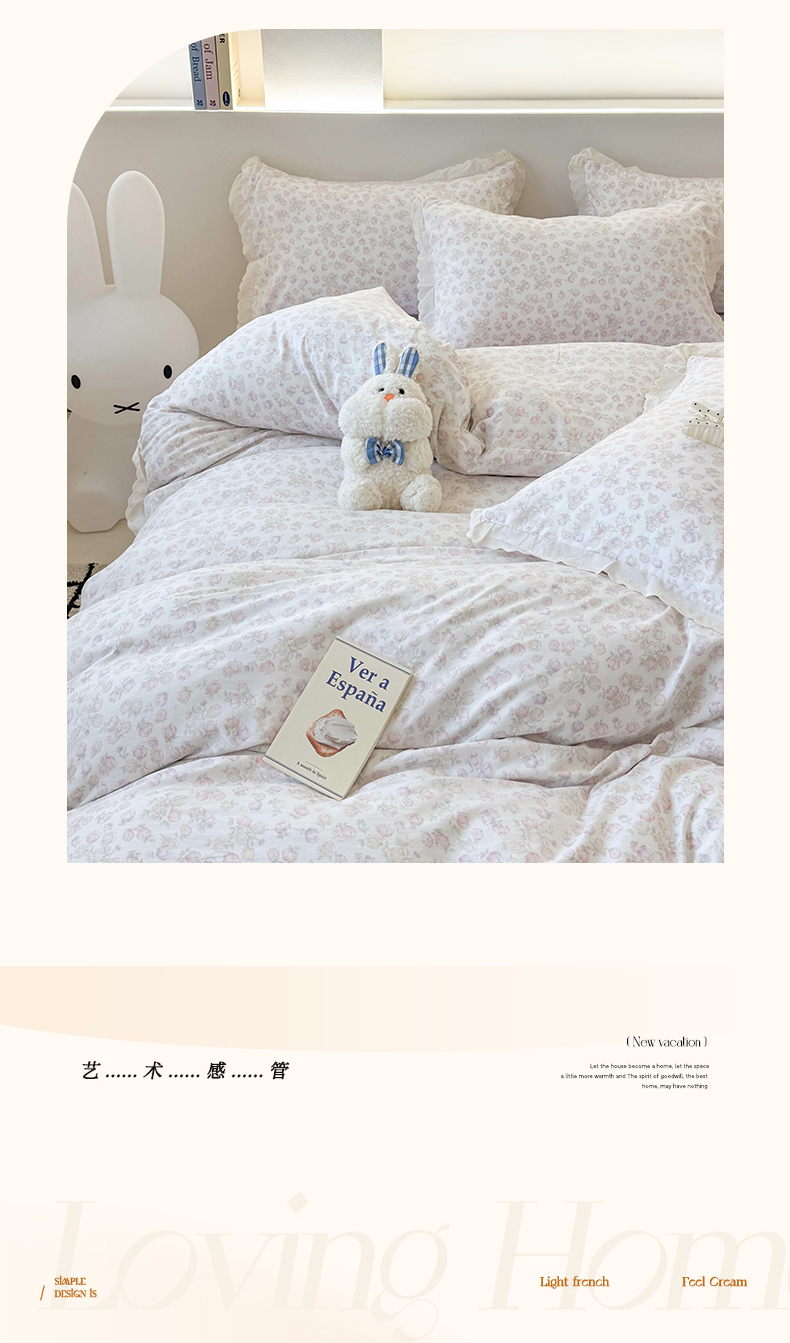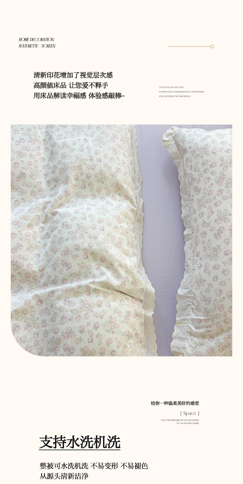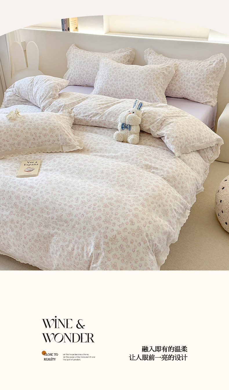 商品名称:吾欢心 2025新款韩版花边水洗双层纱四件套夏被四件套(棚拍图) 欧若拉