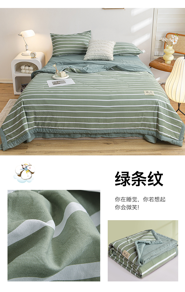 小鱼儿家纺 2025新款水洗夏凉被 绿条纹