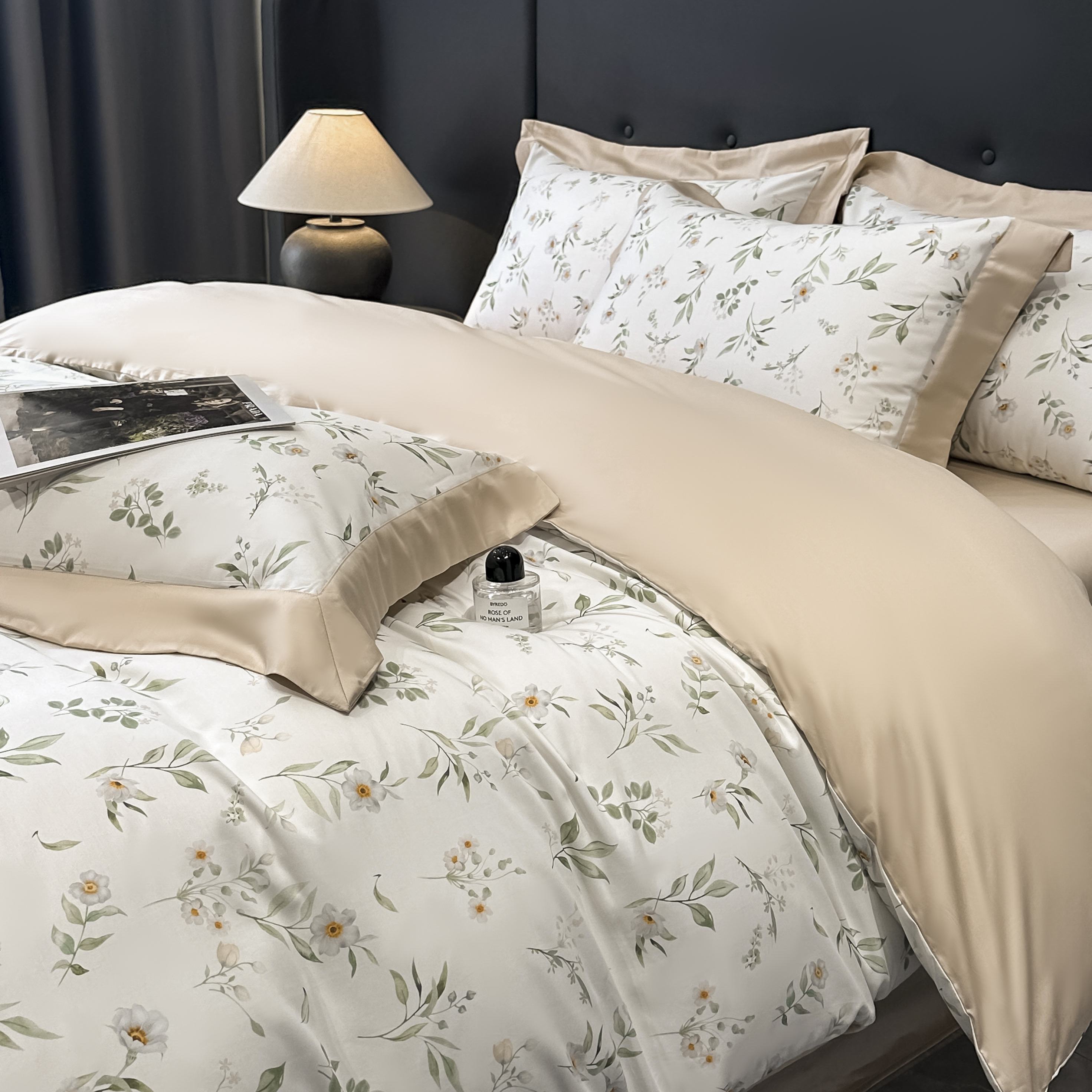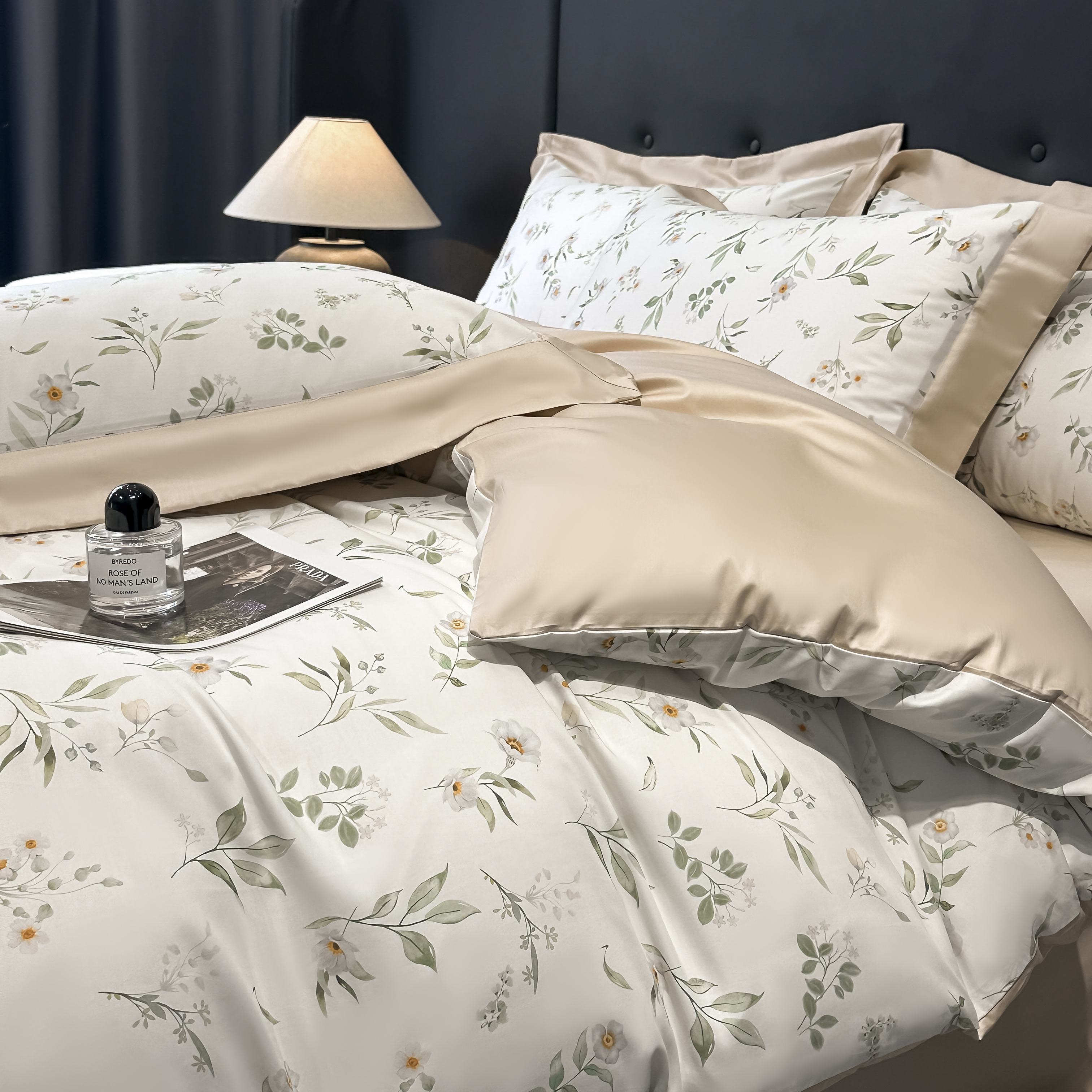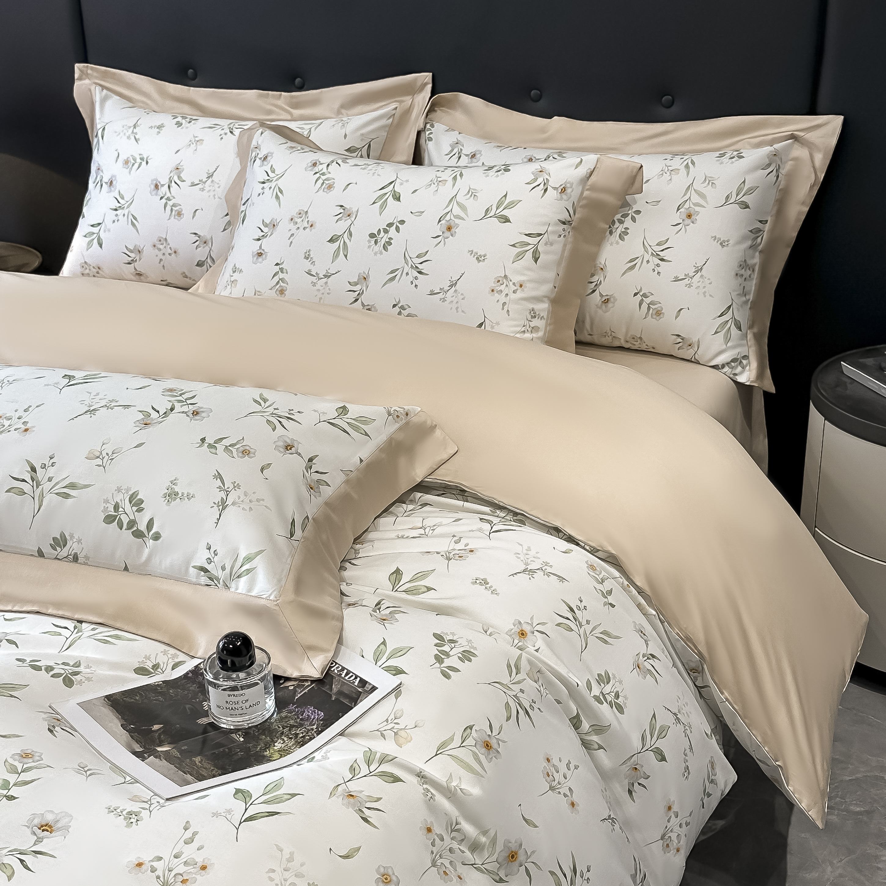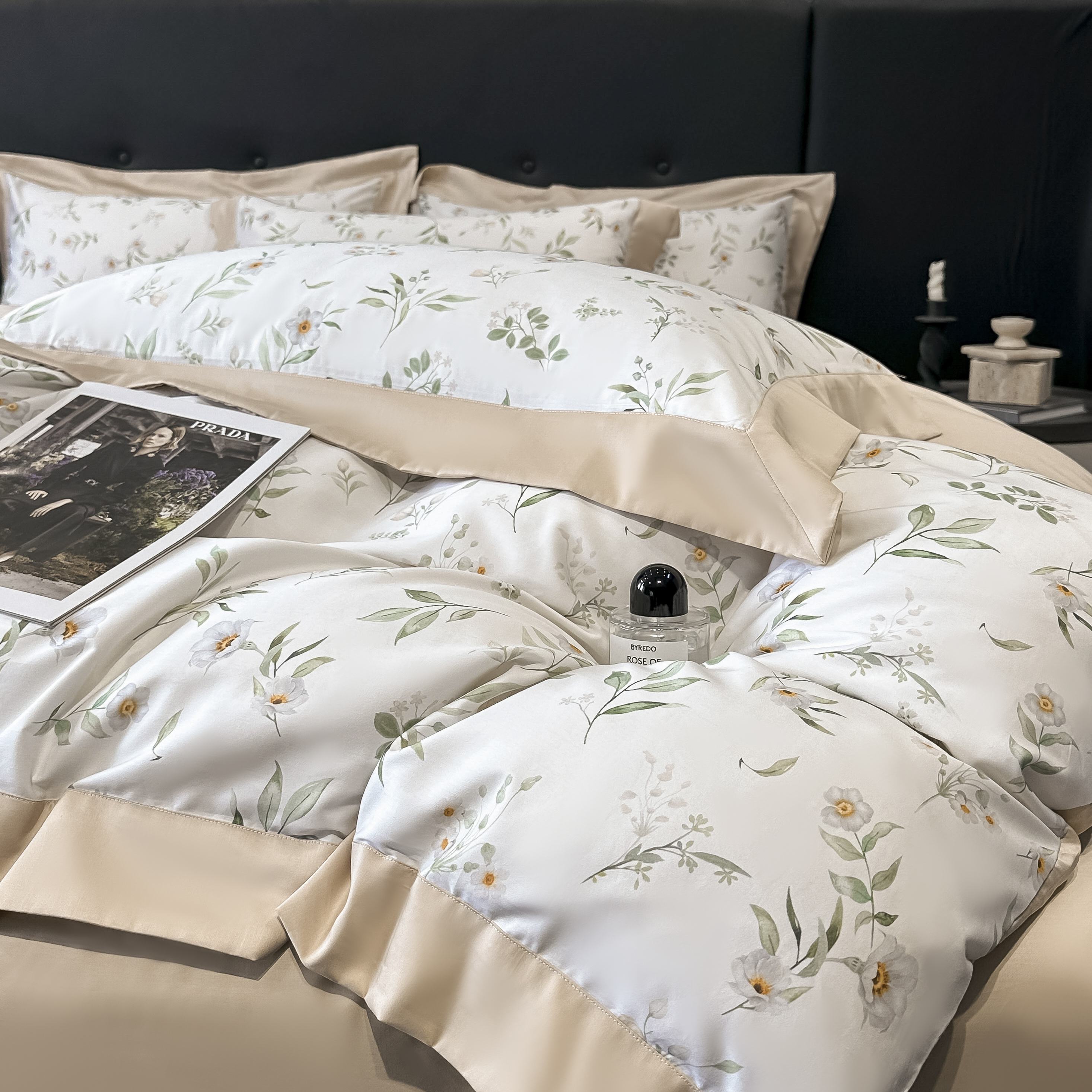 (总)博纳家纺 2026新款正宗60支纯棉 活性数码印花 宽边高级简奢 撞色拼角 纯棉四件套,查尔斯,清沙月贝,睡美人,玉树临风