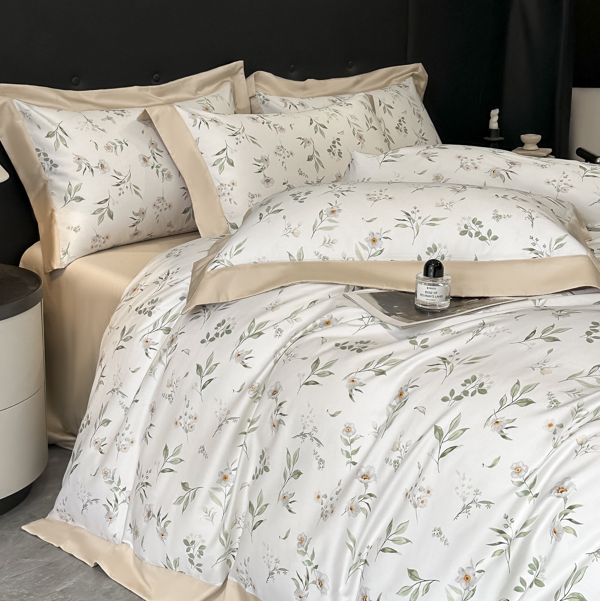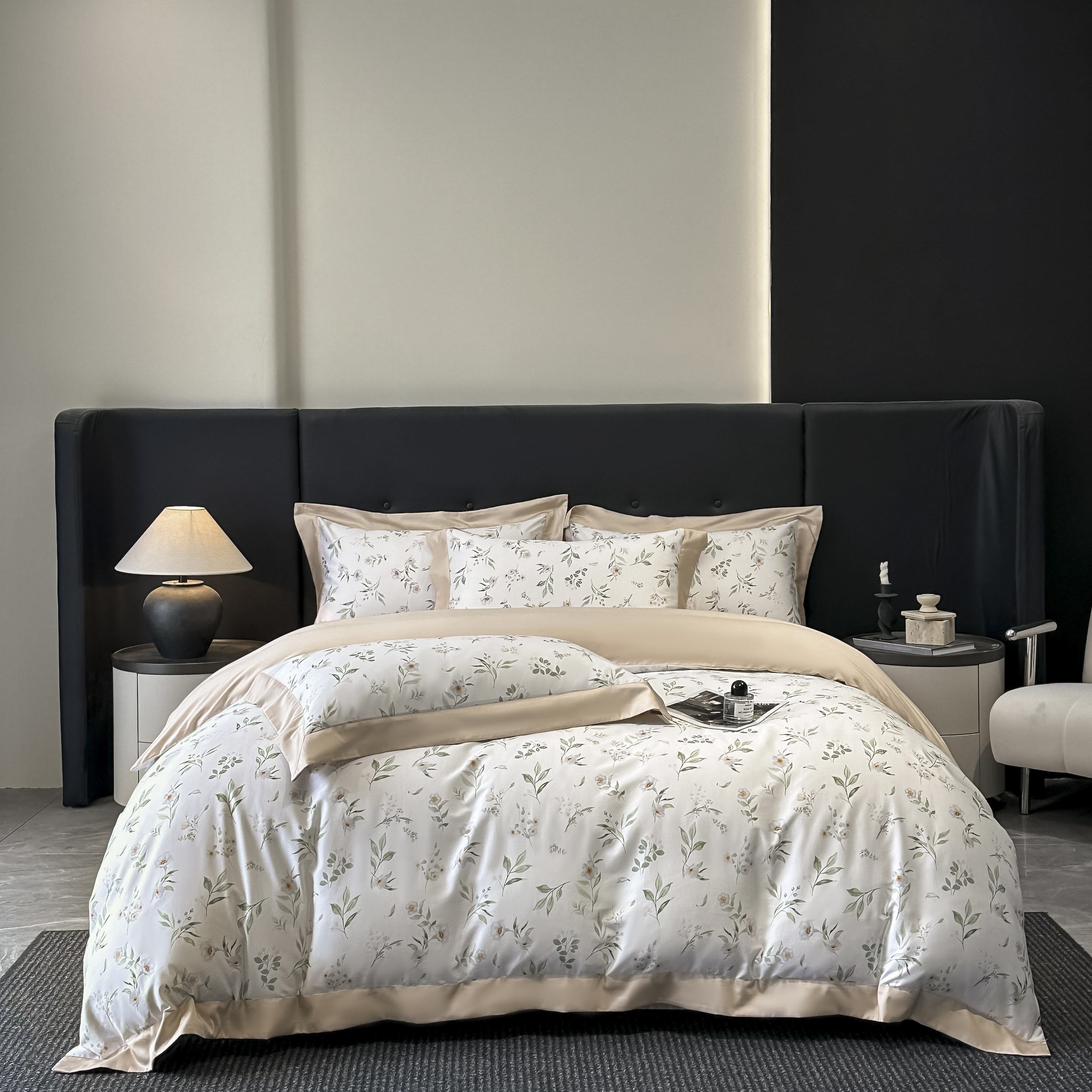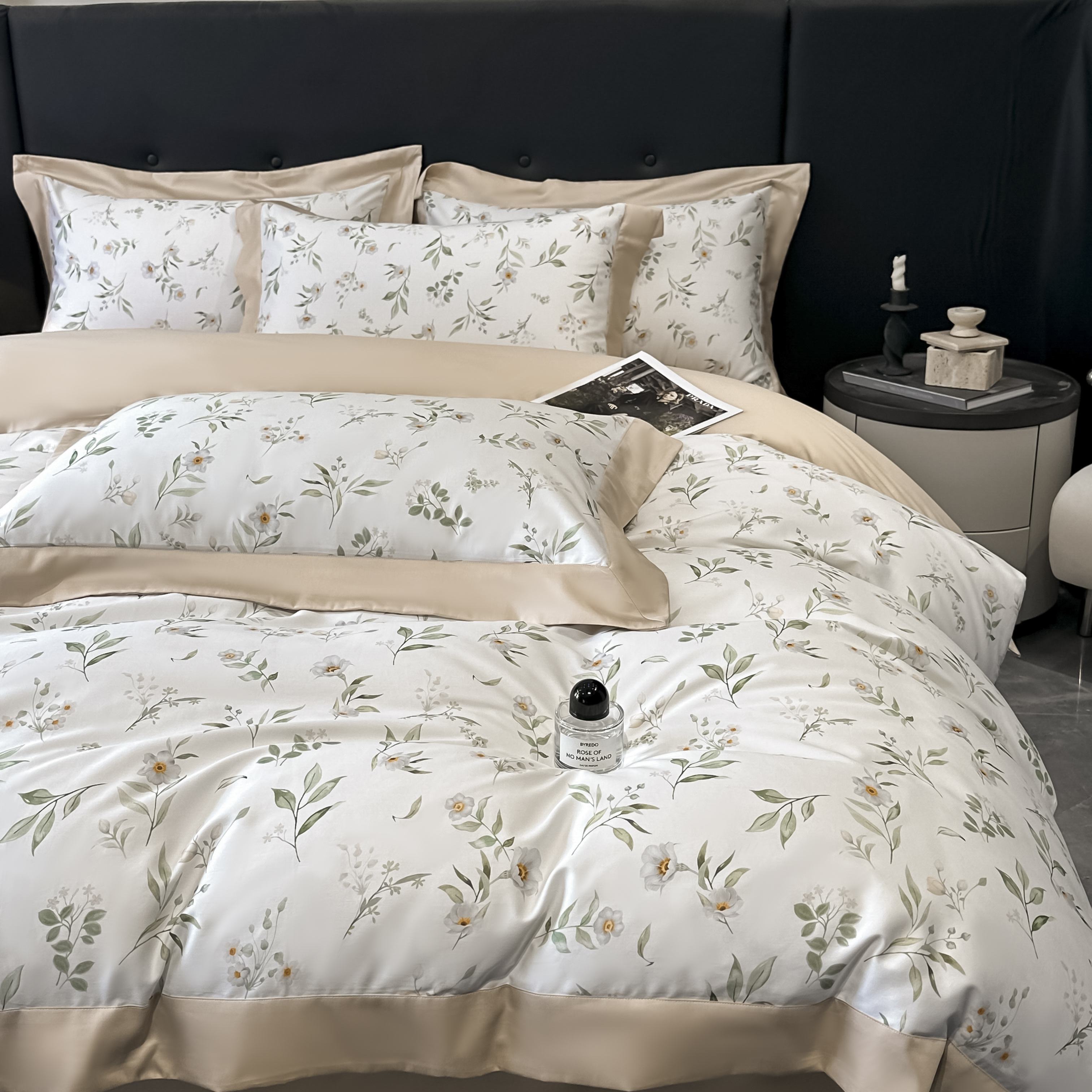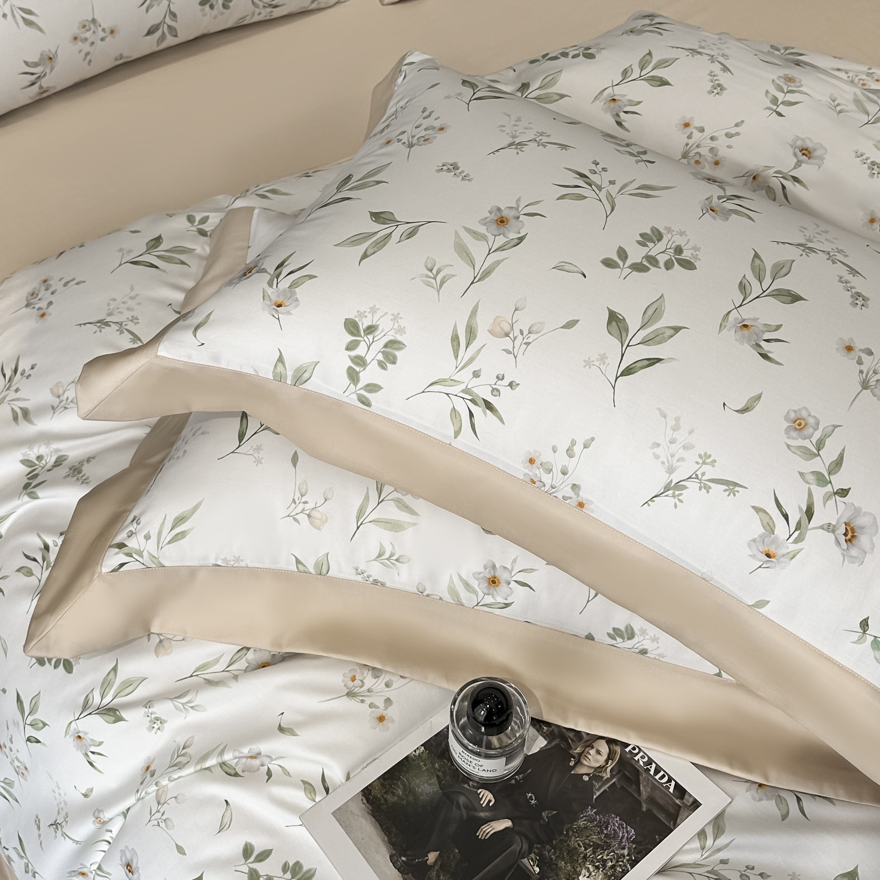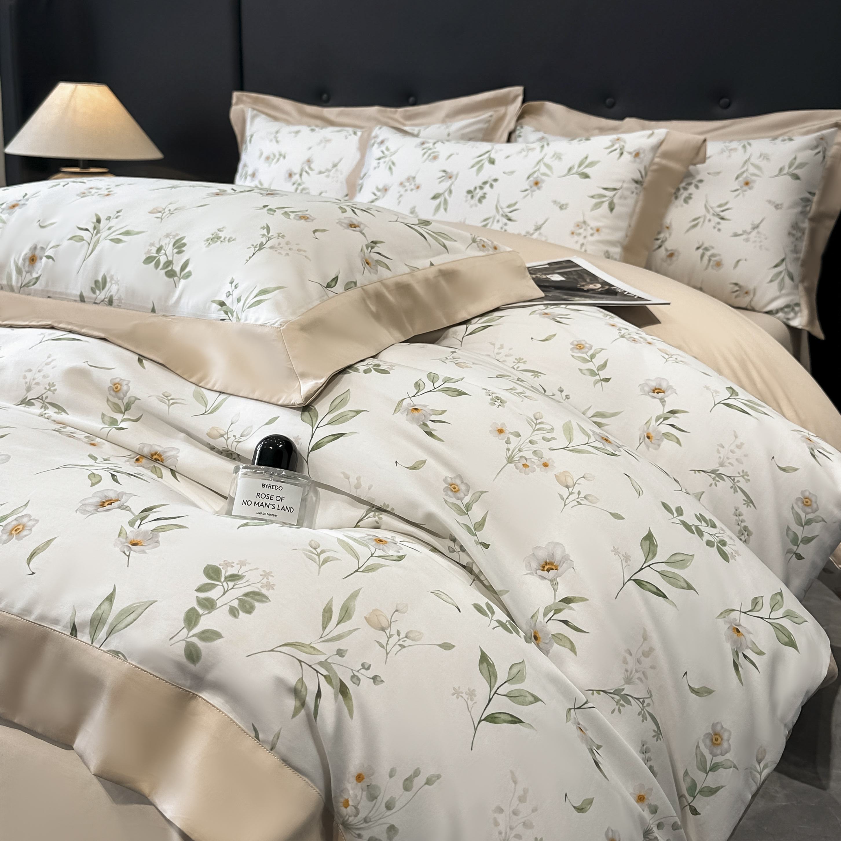 (总)博纳家纺 2026新款正宗60支纯棉 活性数码印花 宽边高级简奢 撞色拼角 纯棉四件套,查尔斯,清沙月贝,睡美人,玉树临风