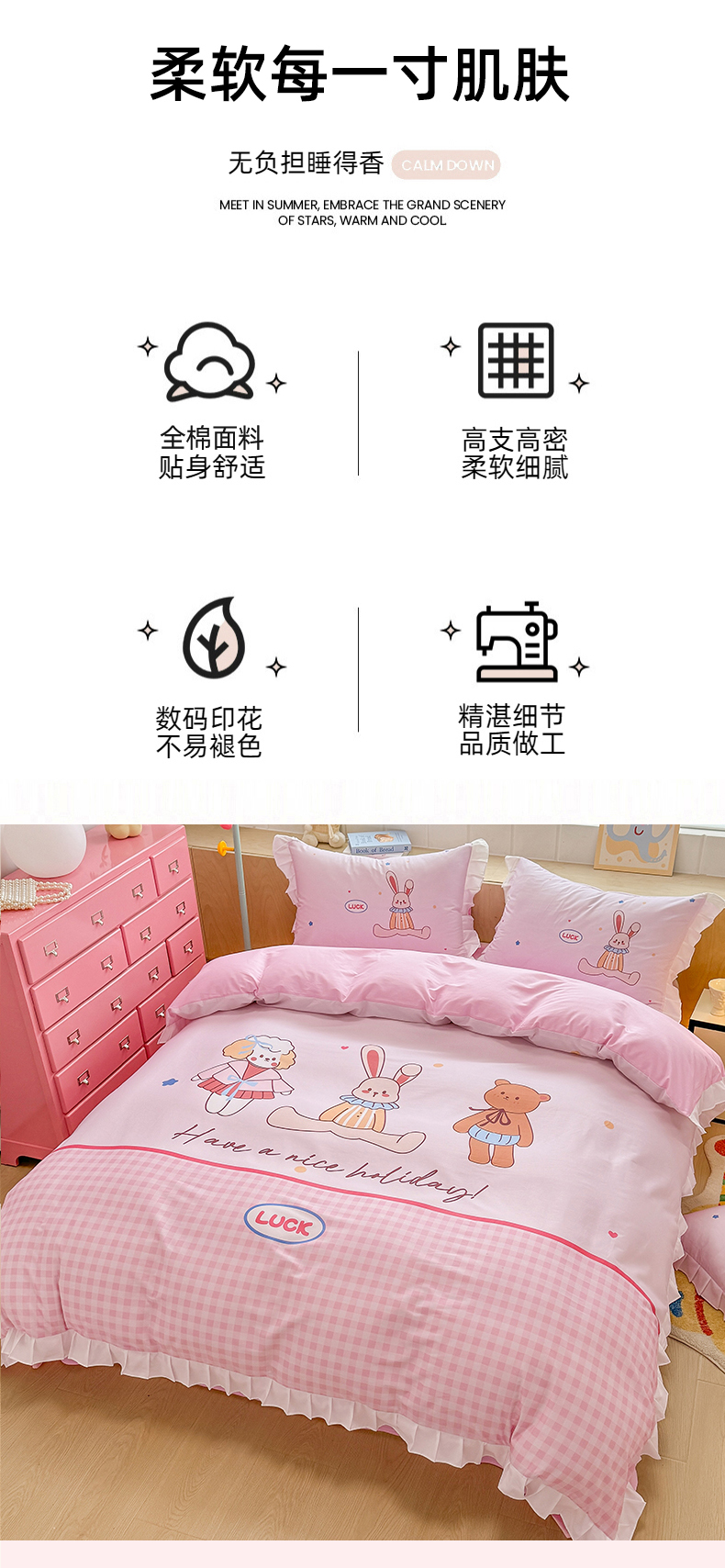 当前位置: 91家纺网 > 商品网购 > 床品套件 > 四件套 > 全棉普通四件套 > 玉元坊 2025新款全棉纯棉数码印花四件套 小熊伙伴
