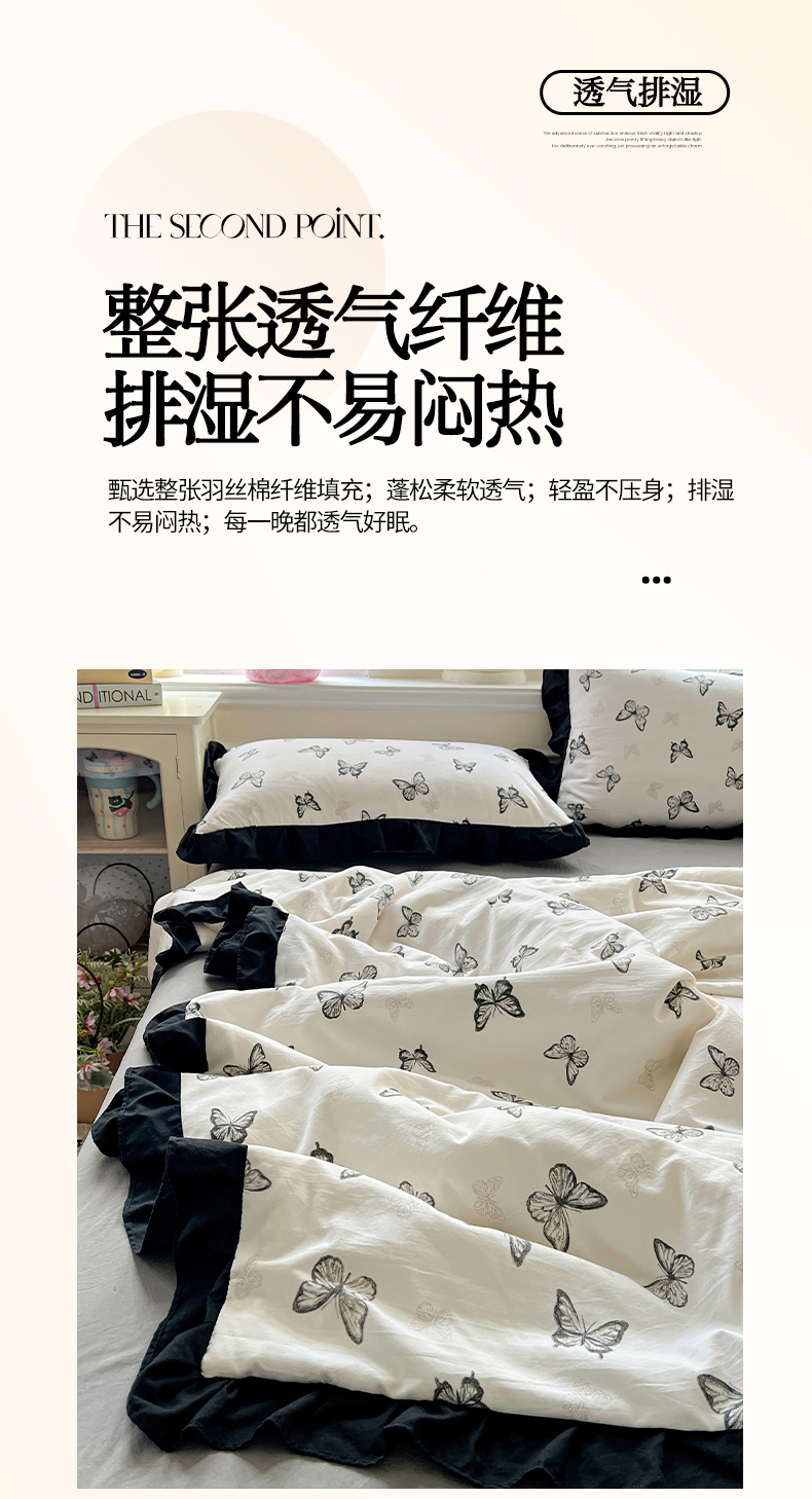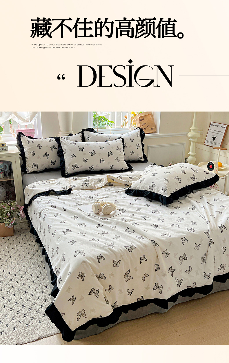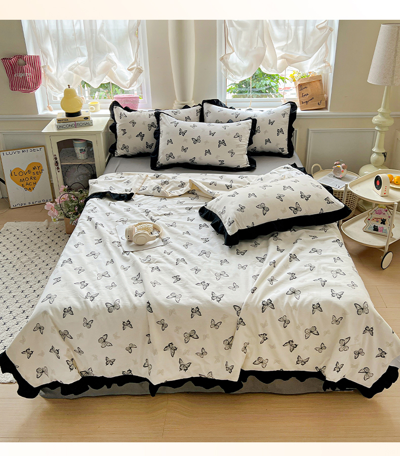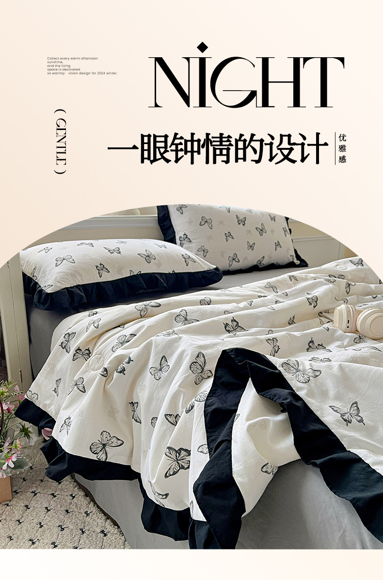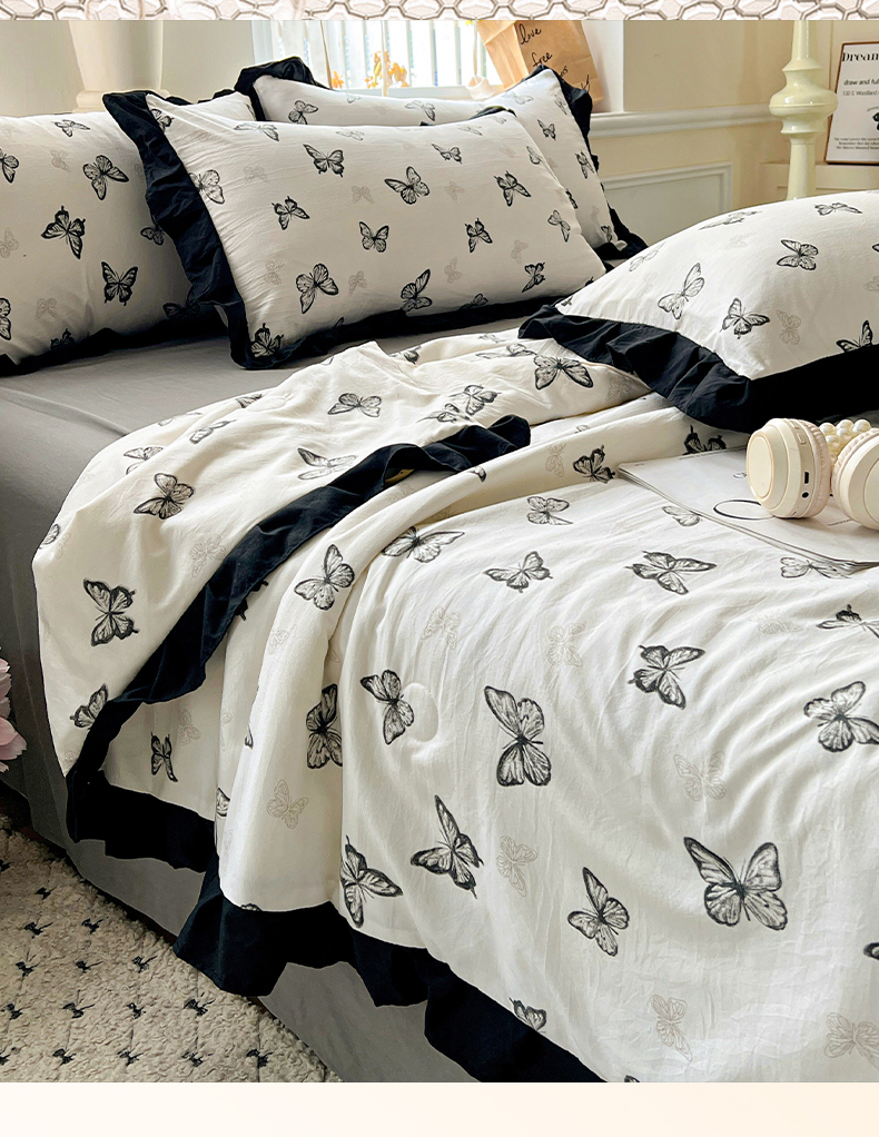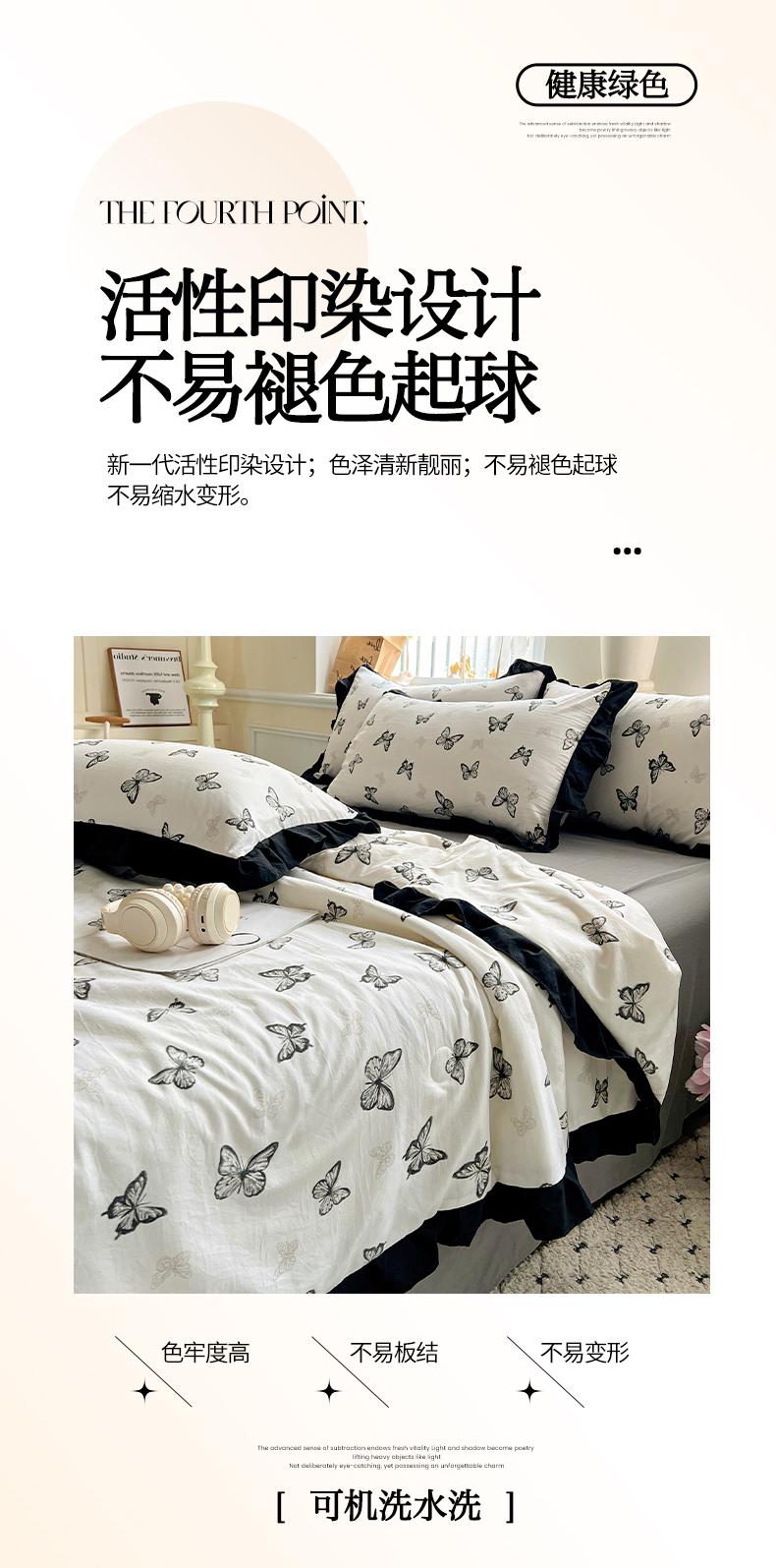 当前位置: 91家纺网 > 商品网购 > 床品套件 > 四件套 > 全棉普通四件套 > 鑫利来家纺 2025爆款法式赫本风水洗棉韩版荷叶花边云朵棉夏被夏凉被空调被四件套直播爆款 蝴蝶