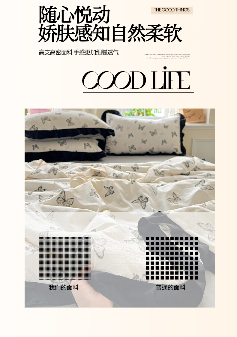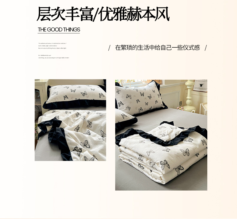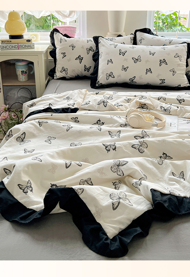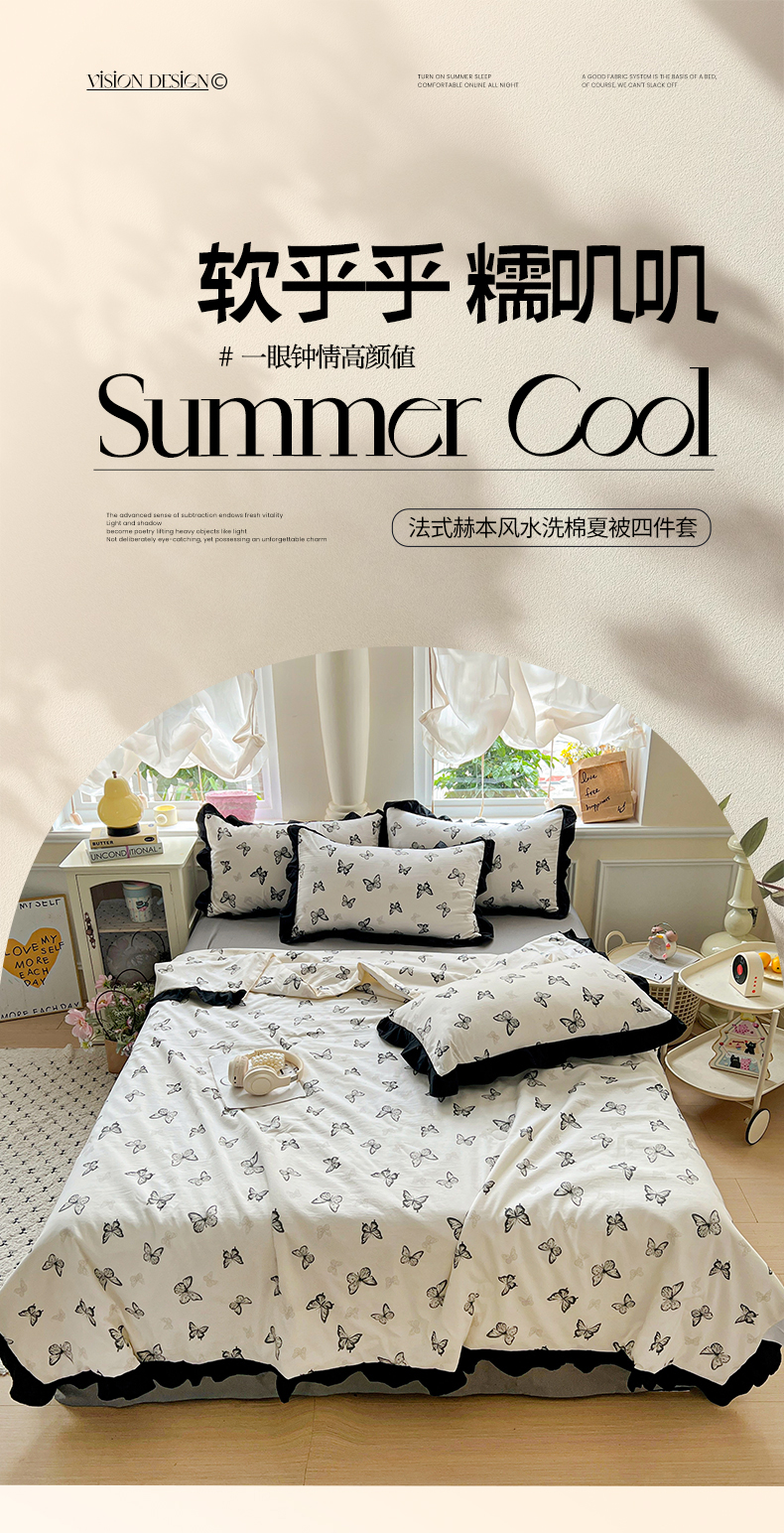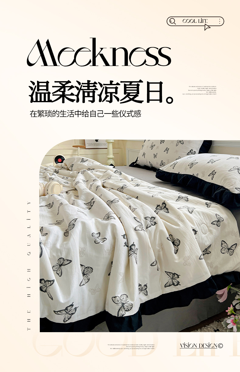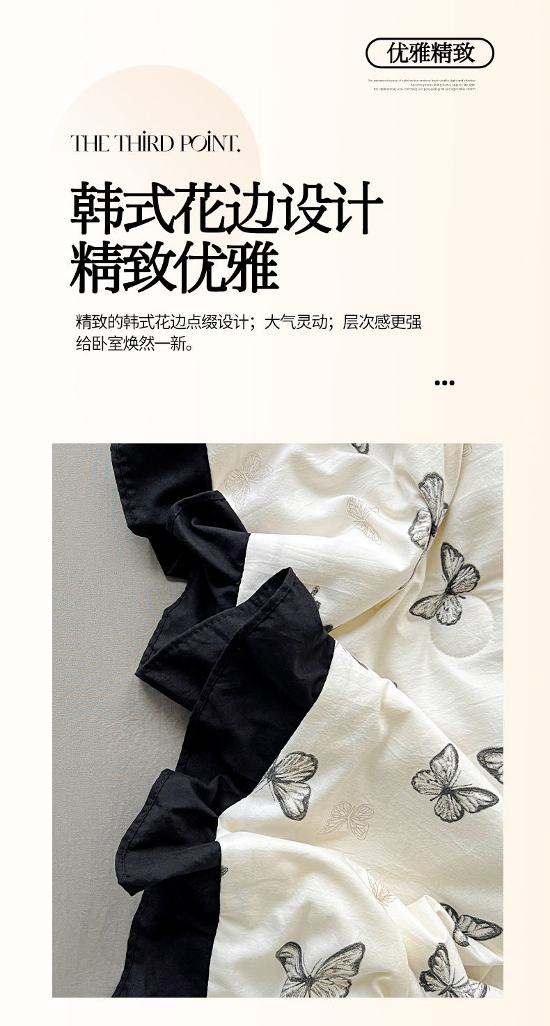 当前位置: 91家纺网 > 商品网购 > 床品套件 > 四件套 > 全棉普通四件套 > 鑫利来家纺 2025爆款法式赫本风水洗棉韩版荷叶花边云朵棉夏被夏凉被空调被四件套直播爆款 蝴蝶