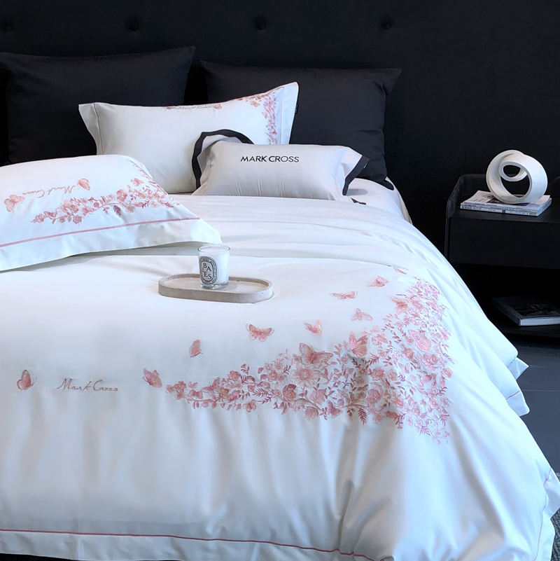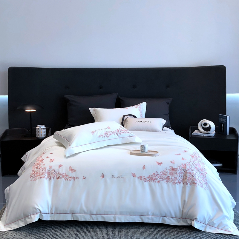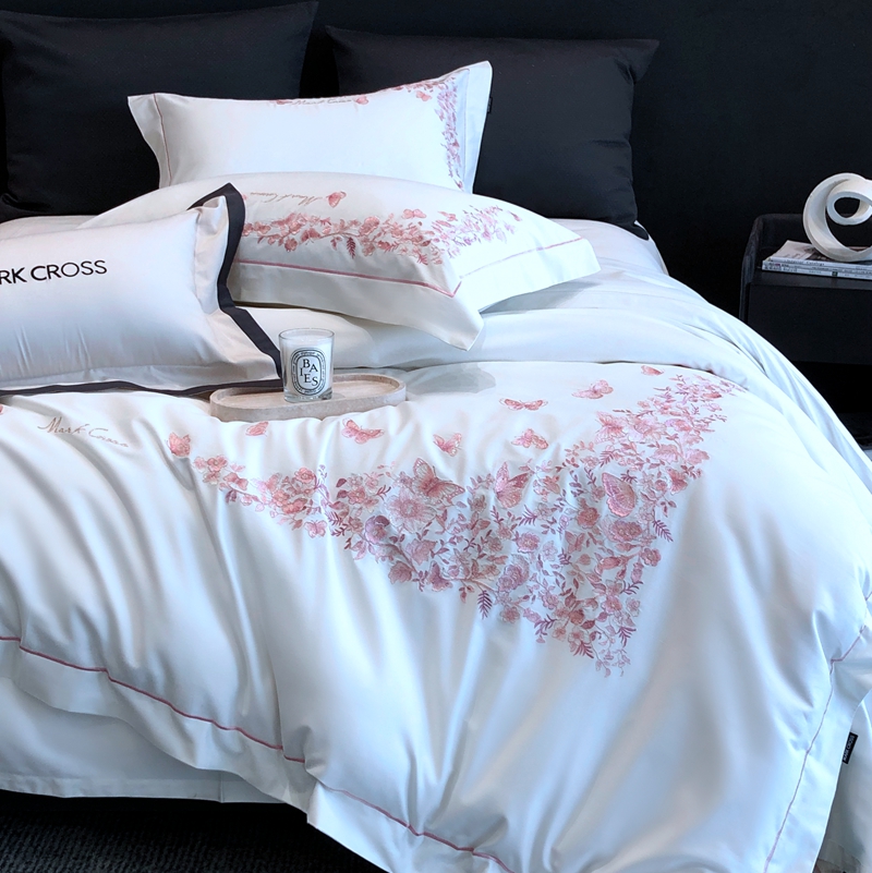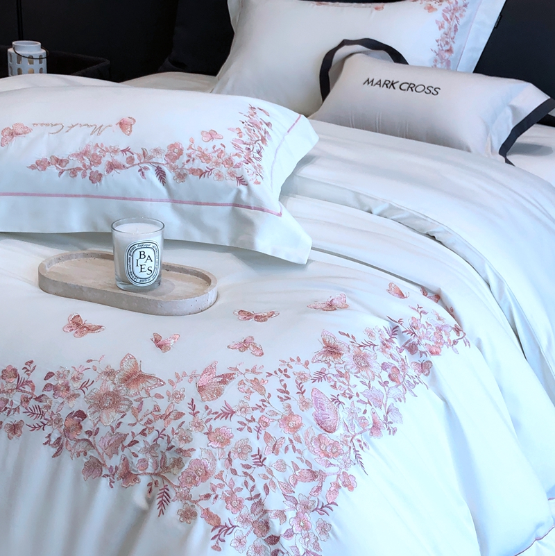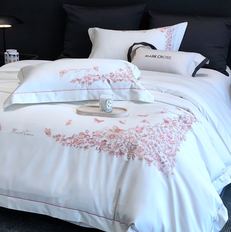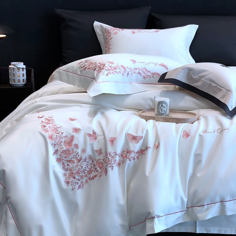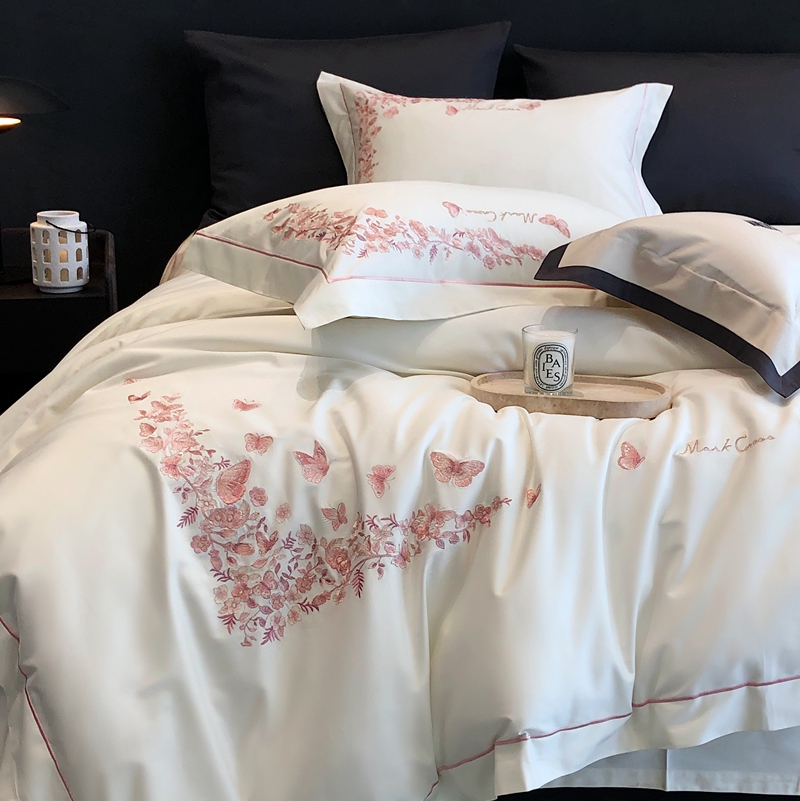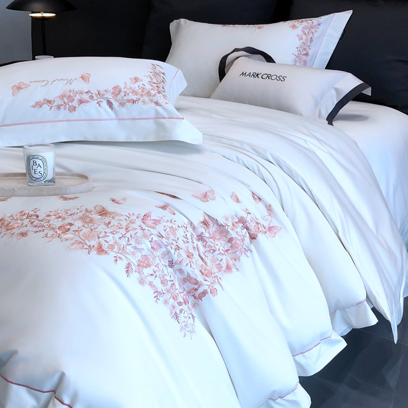 (总)佳汐蓝家纺 2025新款100支贡缎提花全棉刺绣婚庆四件套-繁花佩影,繁花佩影