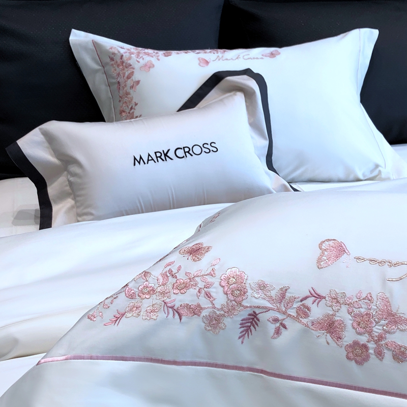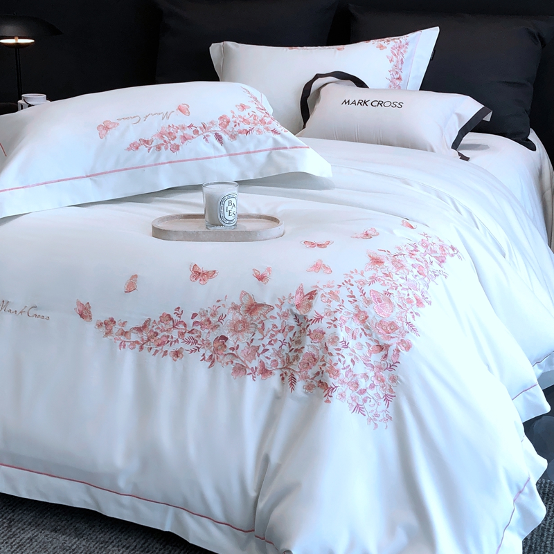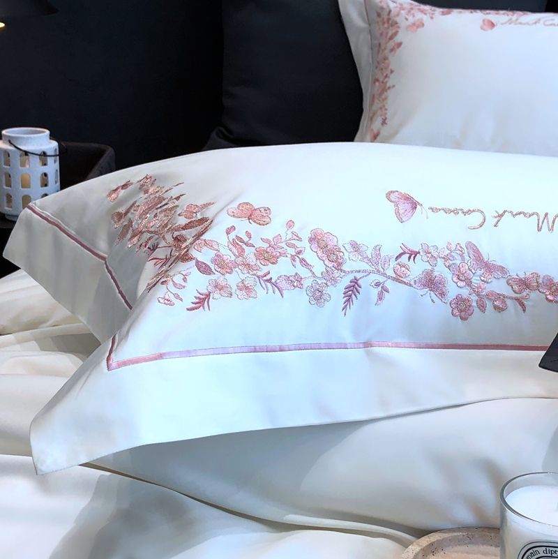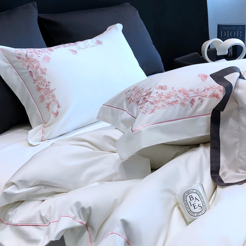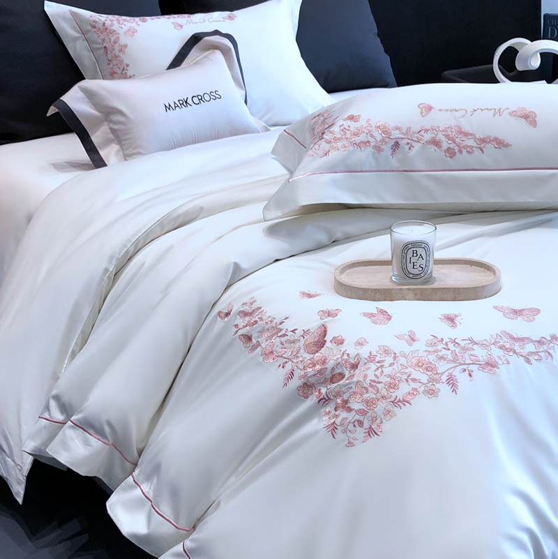 商品名称:佳汐蓝2025新款清雅自然刺绣黄金棉系列四件套价格表券后不低于498/518元 苏莉春天-羽缎白