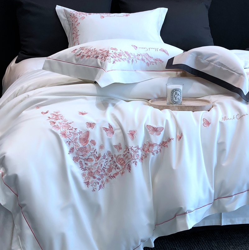 (总)佳汐蓝家纺 2025春夏新款天丝棉蝶舞繁花绣花天丝四件套,蝶舞繁花·粉,蝶舞繁花·蓝