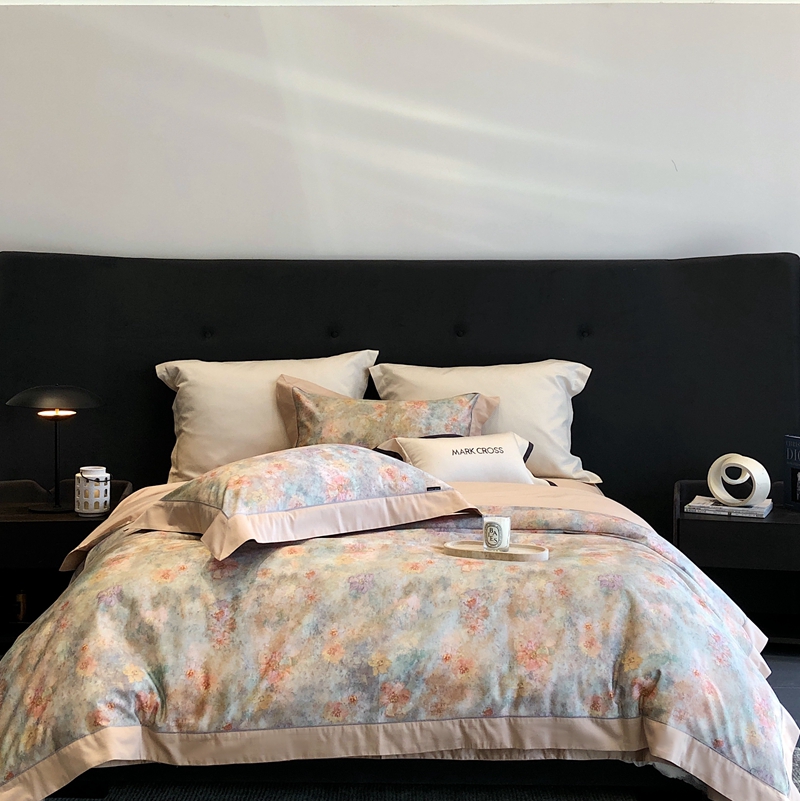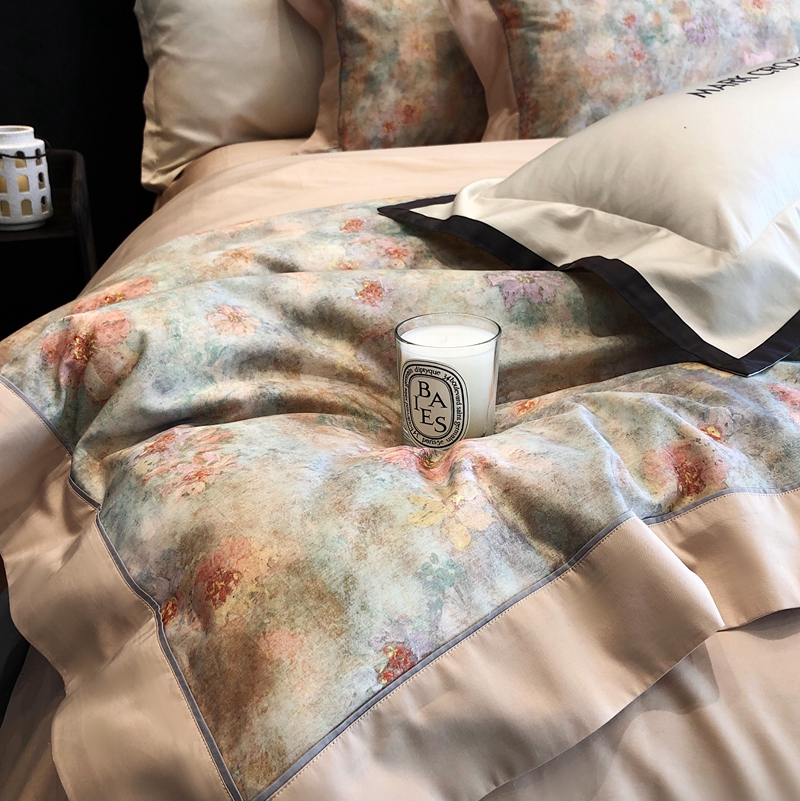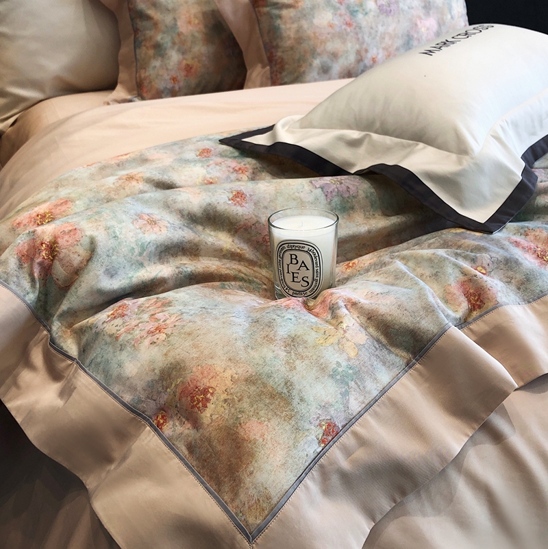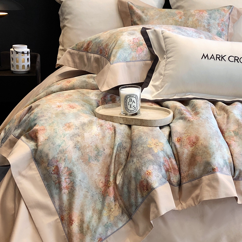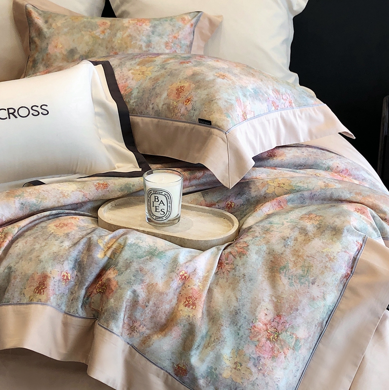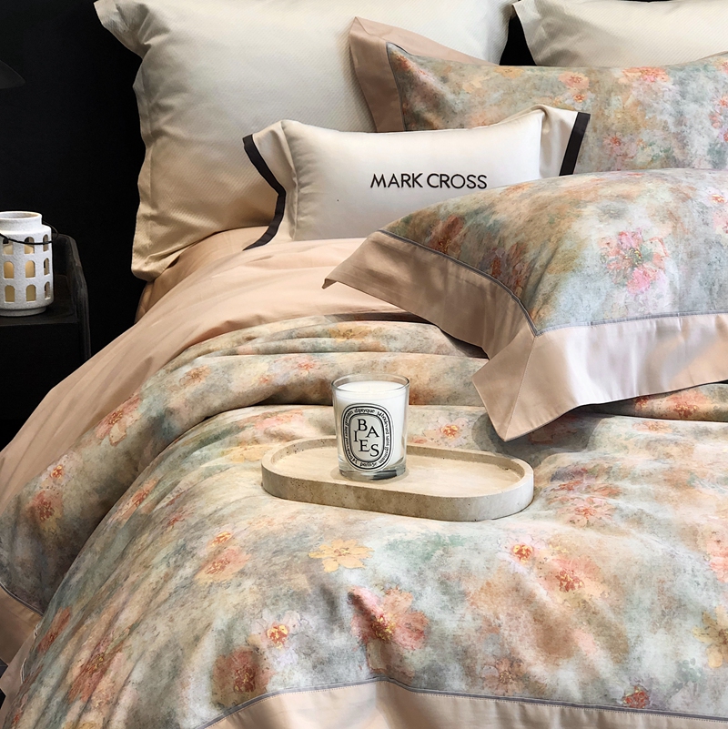佳汐蓝2025新款典雅诗意花卉全棉印花四件套券后不低于438/458元 时光之恋-杏黄桔