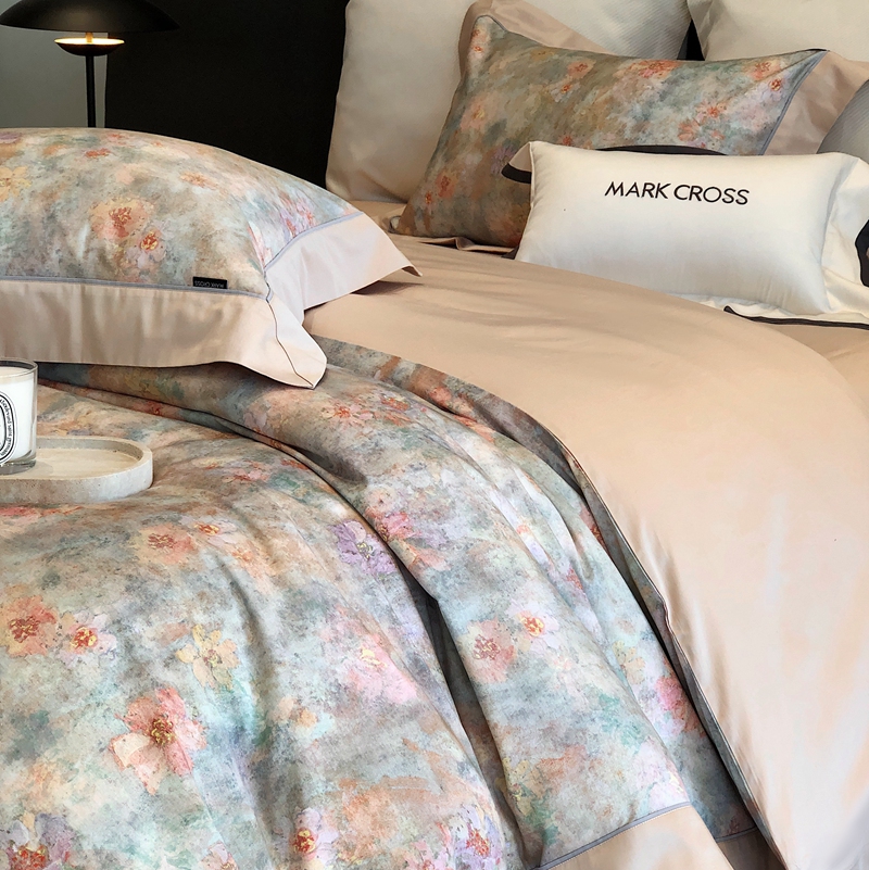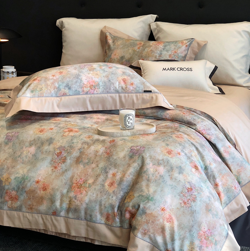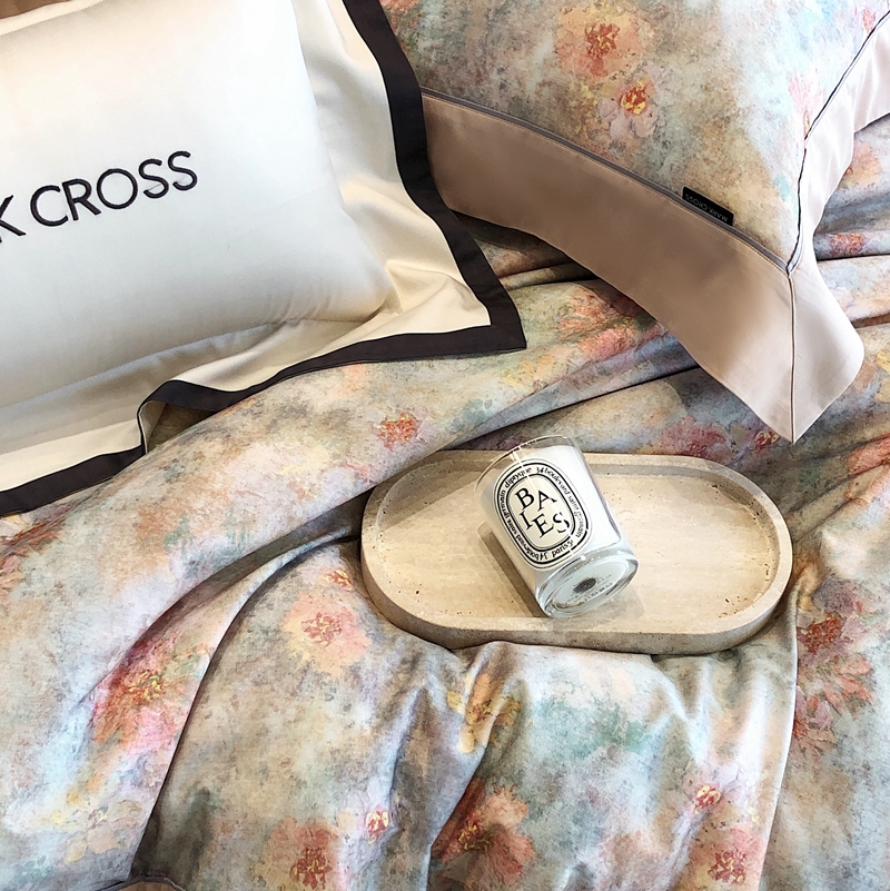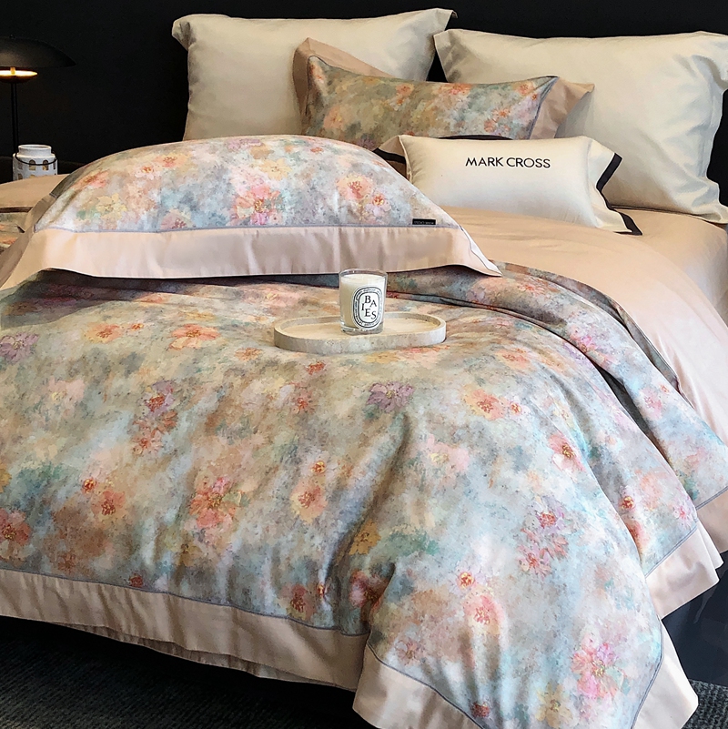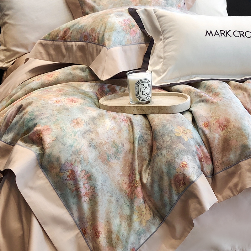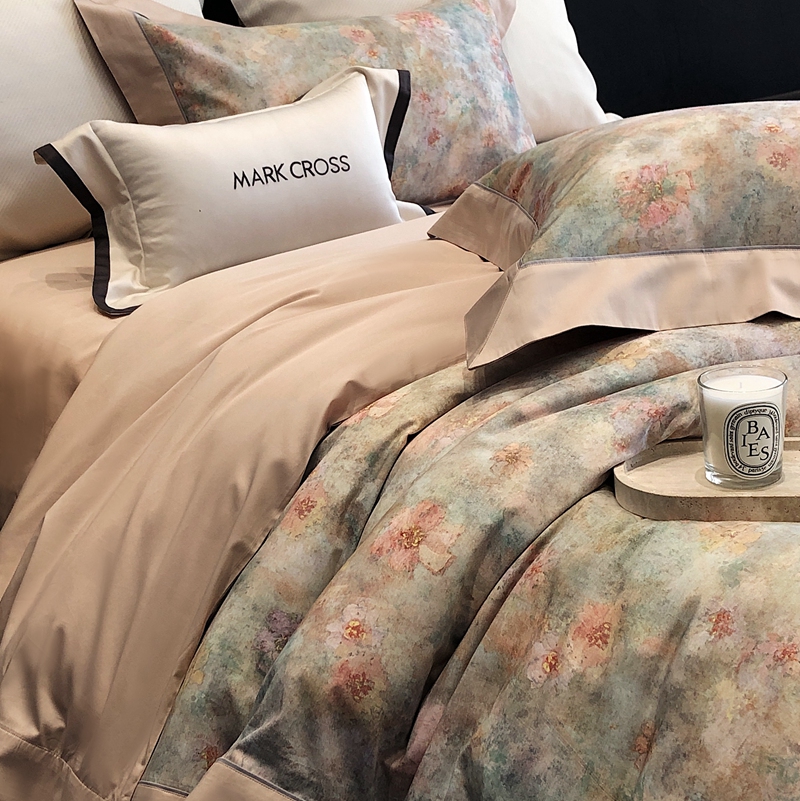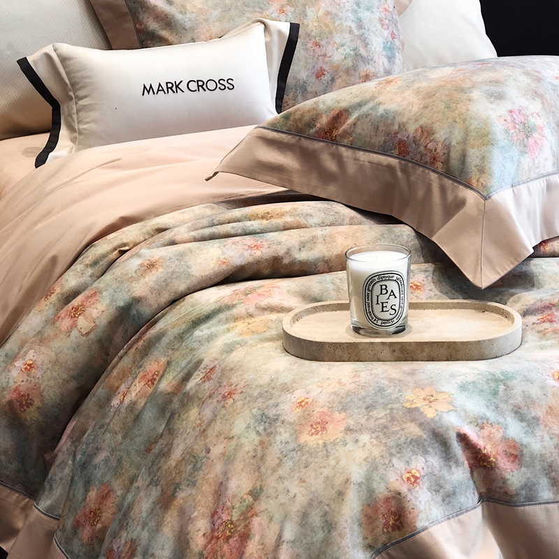 佳汐蓝2025新款典雅诗意花卉全棉印花四件套券后不低于438/458元 时光之恋-杏黄桔