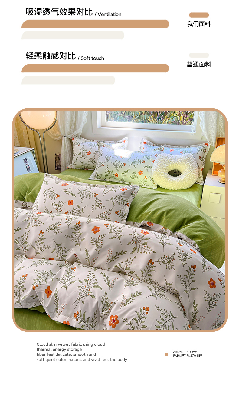 (总)曼璐家纺 2025新款小清新芦荟棉印花四件套,朝花夕拾,初夏,可可西里,喵星人,叶雨,初夏
