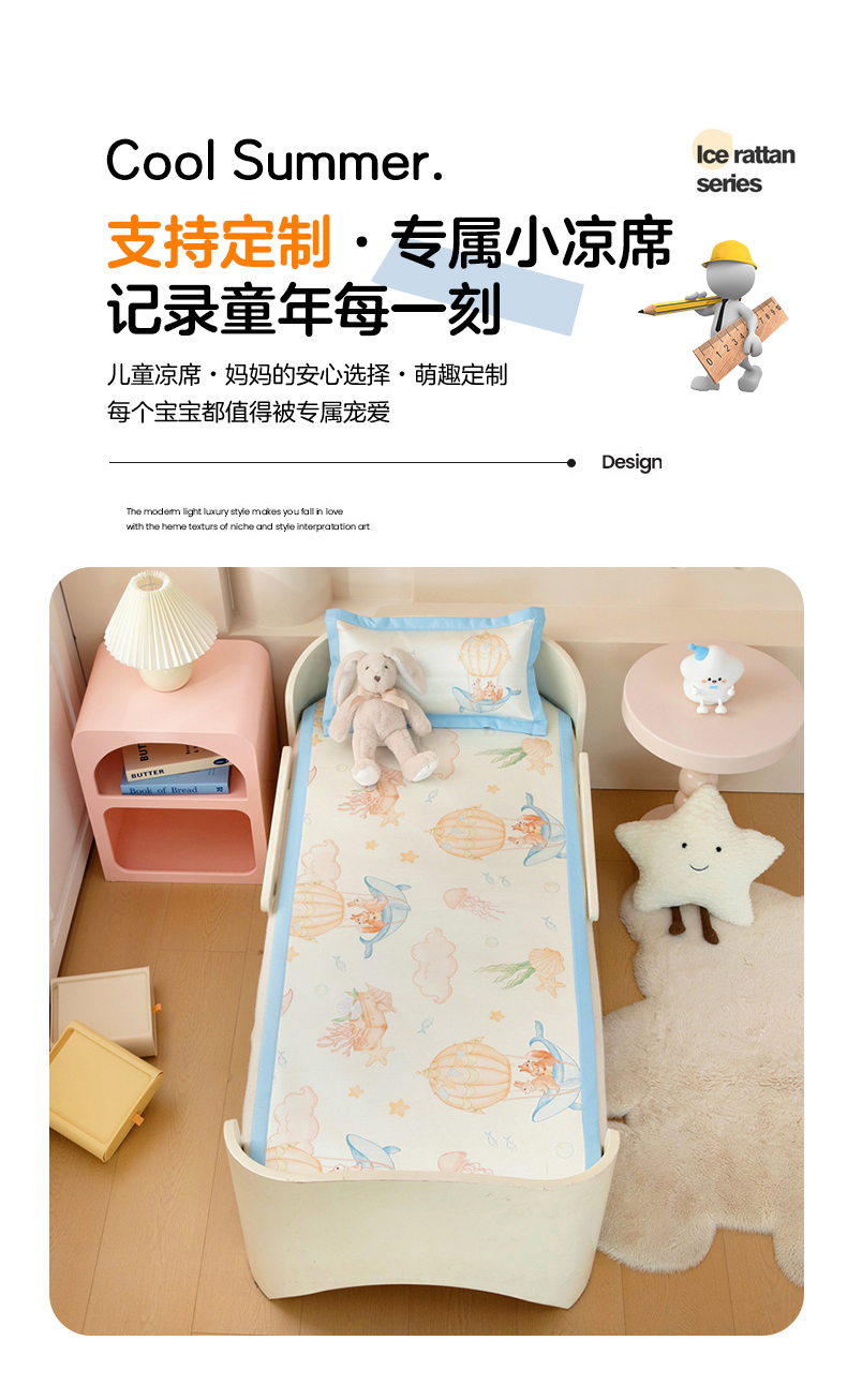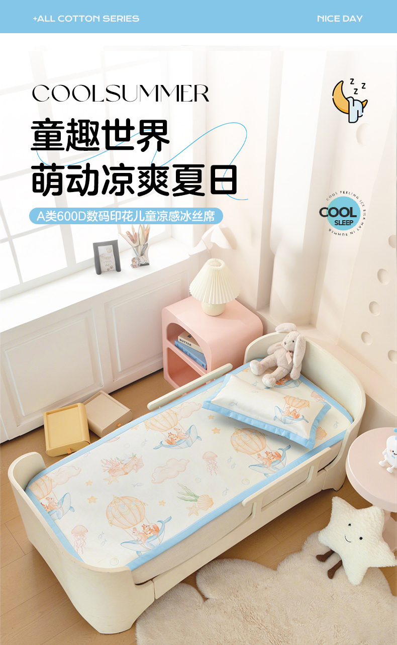 御棉坊 2025新款A类600D数码印花儿童凉席 海洋秘境