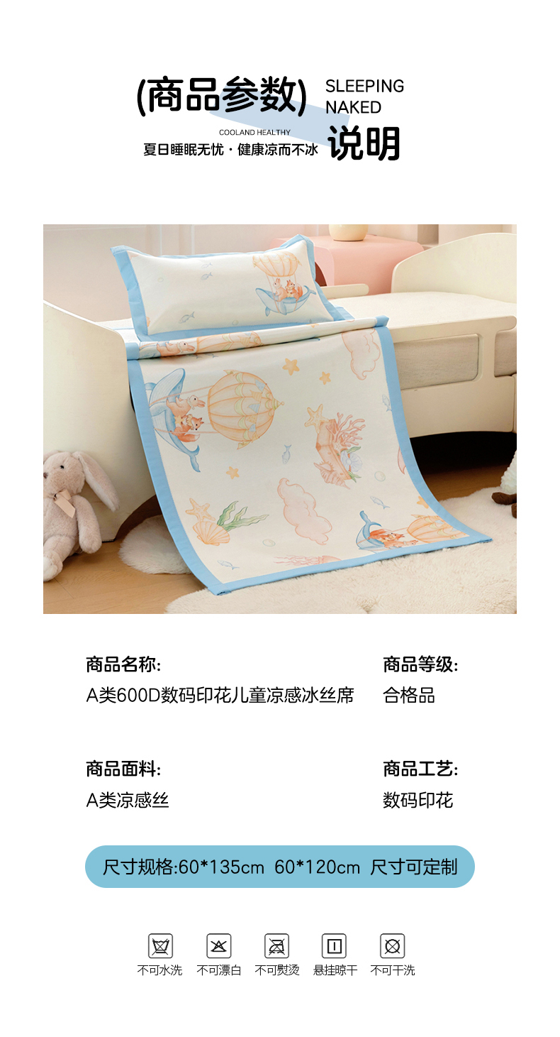 商品名称:御棉坊 2025新款A类600D数码印花儿童凉席 海洋秘境