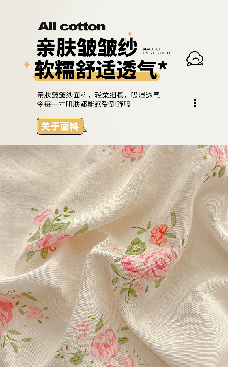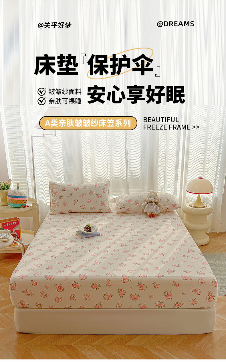 (总)眠帛家居 2025新款A类水洗皱皱纱印花床笠,乖巧猫咪,蝴蝶偏偏,花蔓,可爱小狸,浪漫,蔓蔓